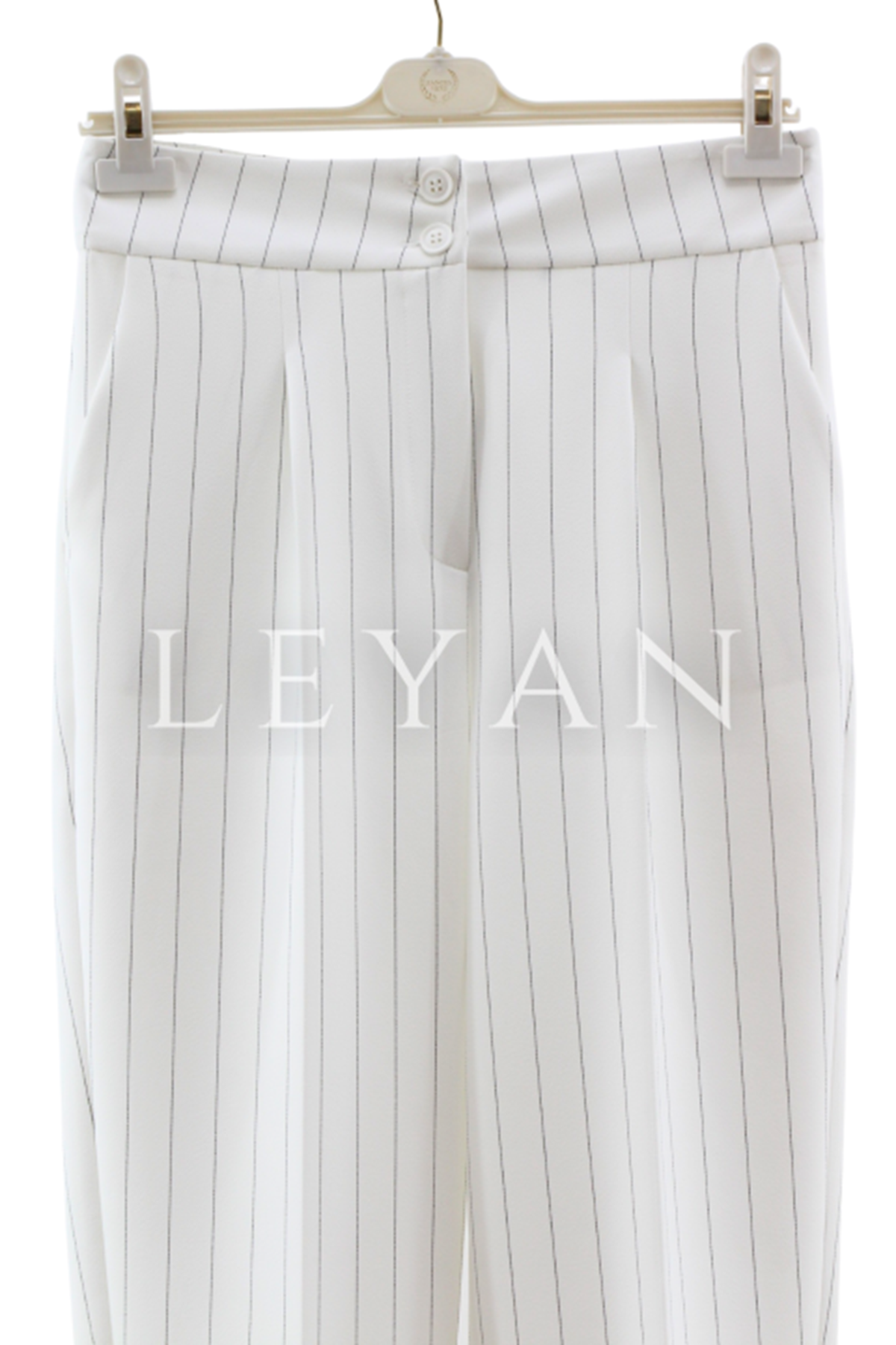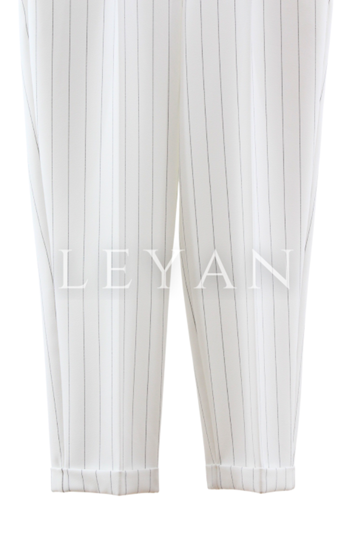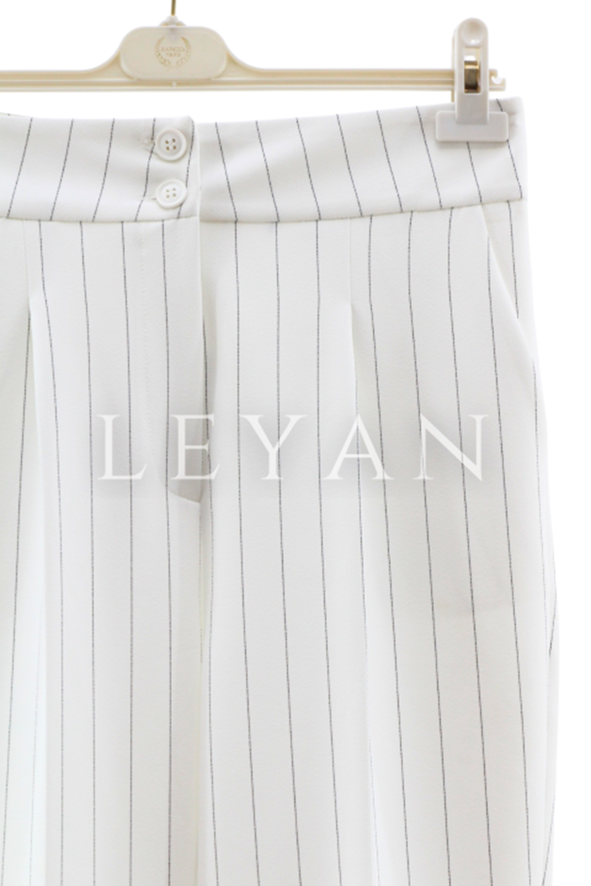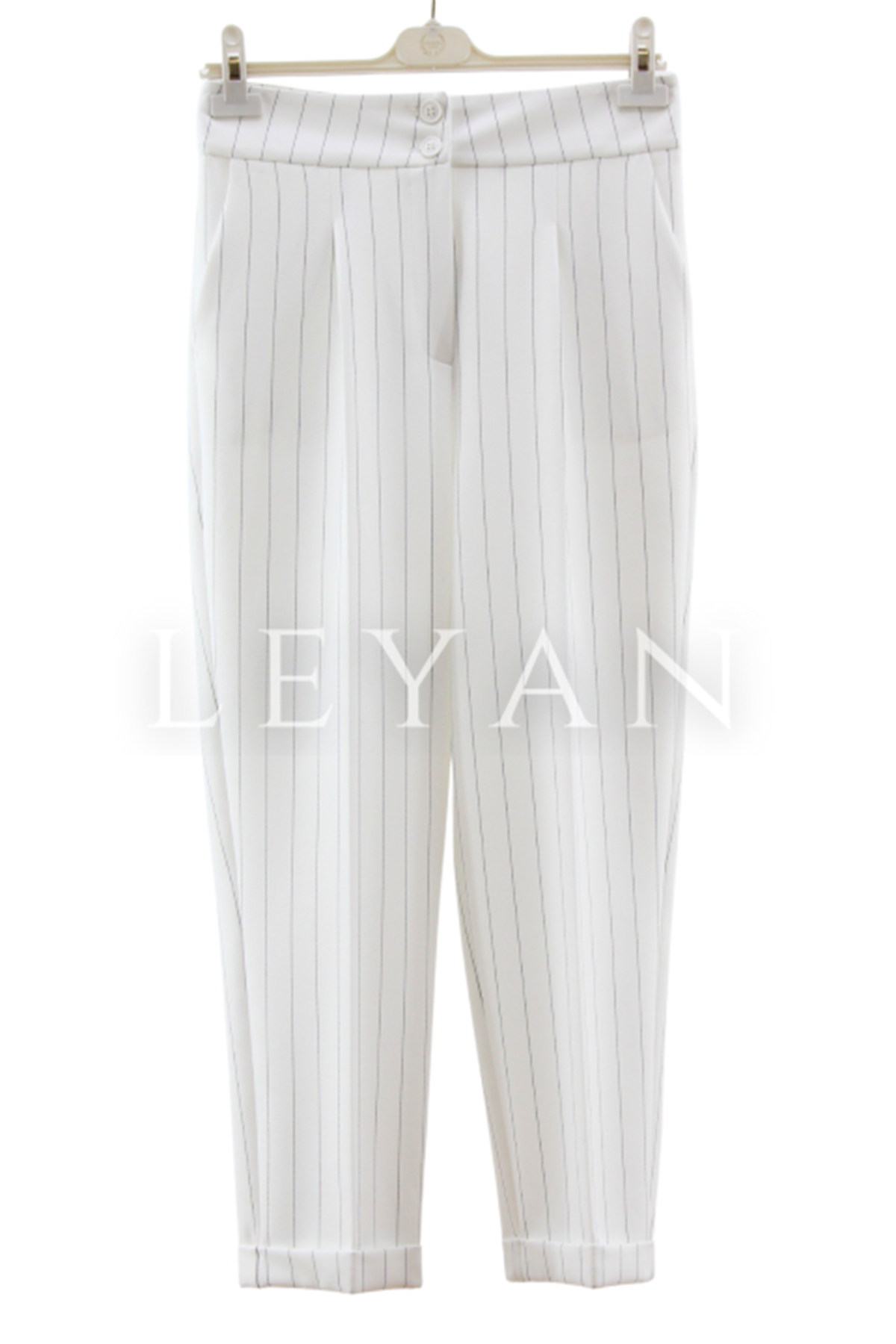 Sentez Çizgili Duble Paça Pantolon- LYN04022 Ekru