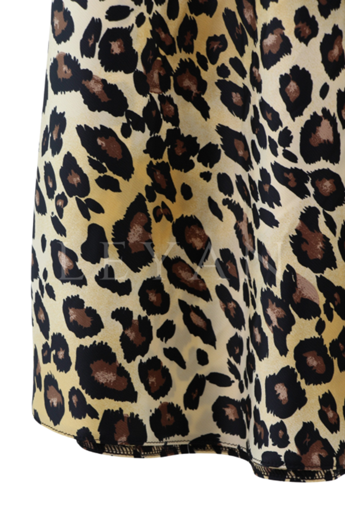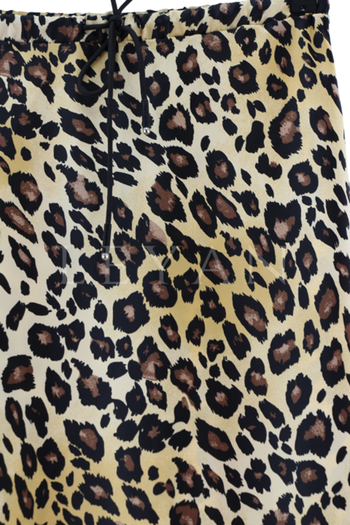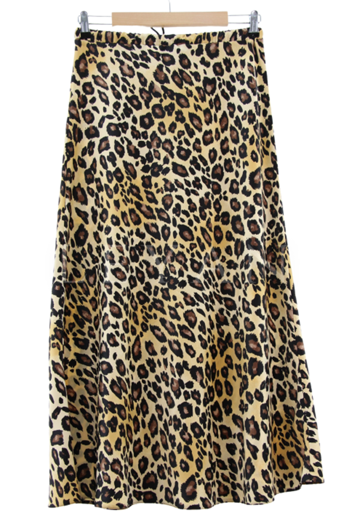 Sentez Leopar Saten Kloş Etek- LYN03113 Vizon