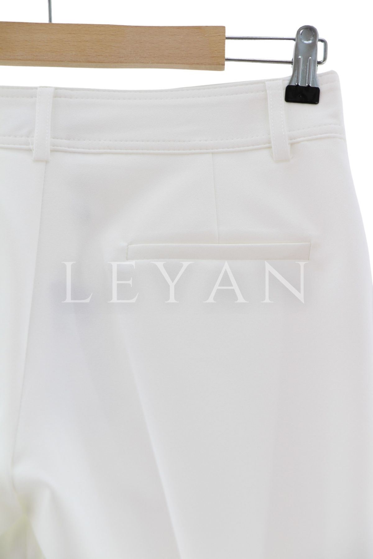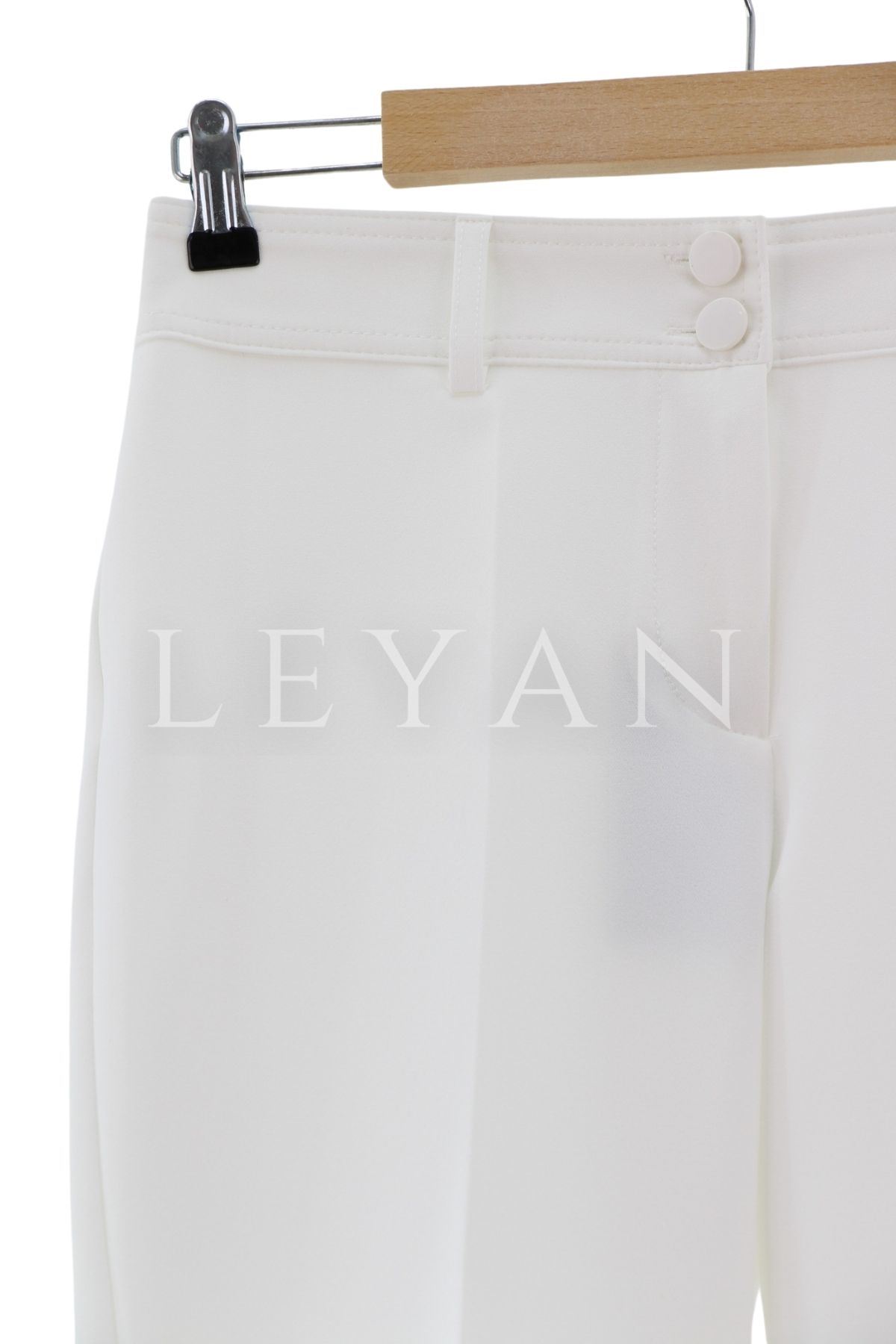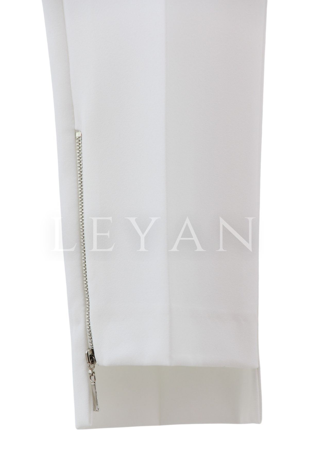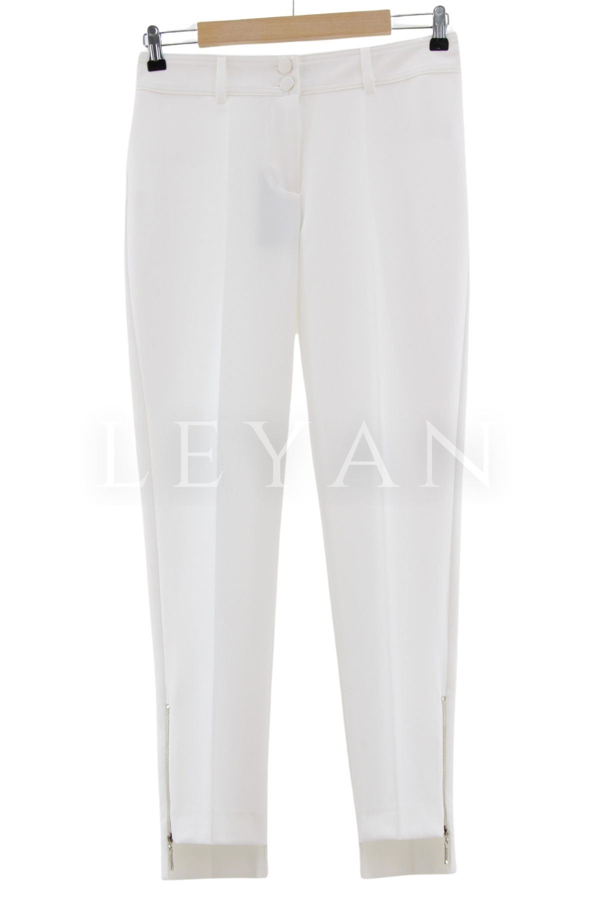 Sentez Paçası Fermuarlı Pantolon-LYN02639 Beyaz