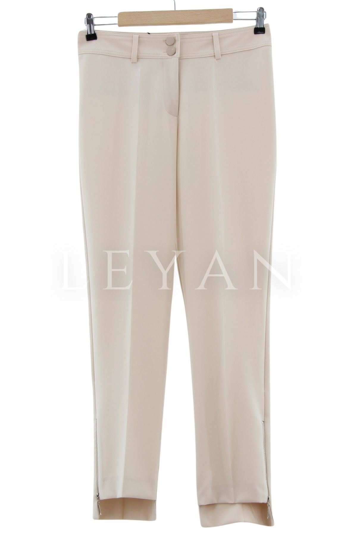 Sentez Paçası Fermuarlı Pantolon-LYN02639 Taş