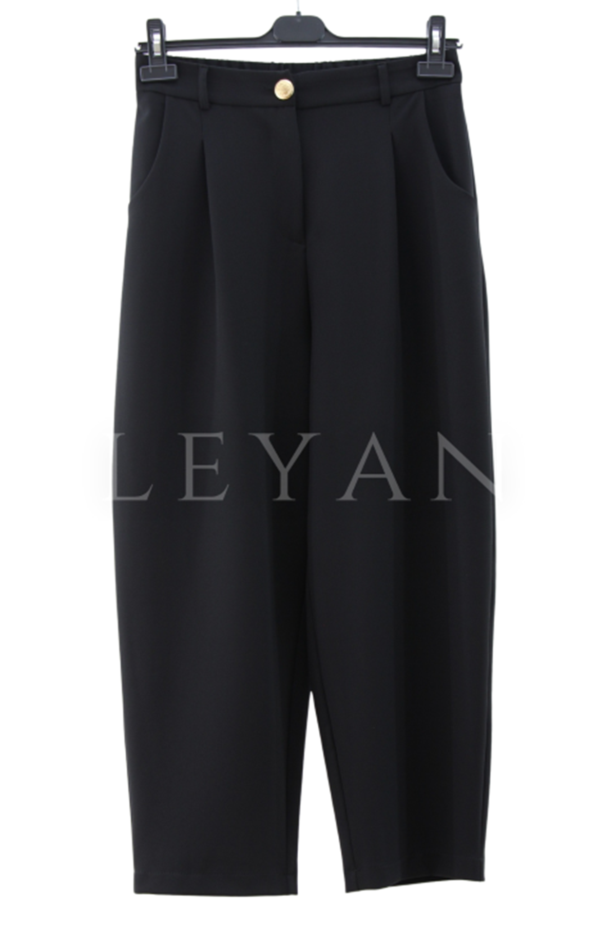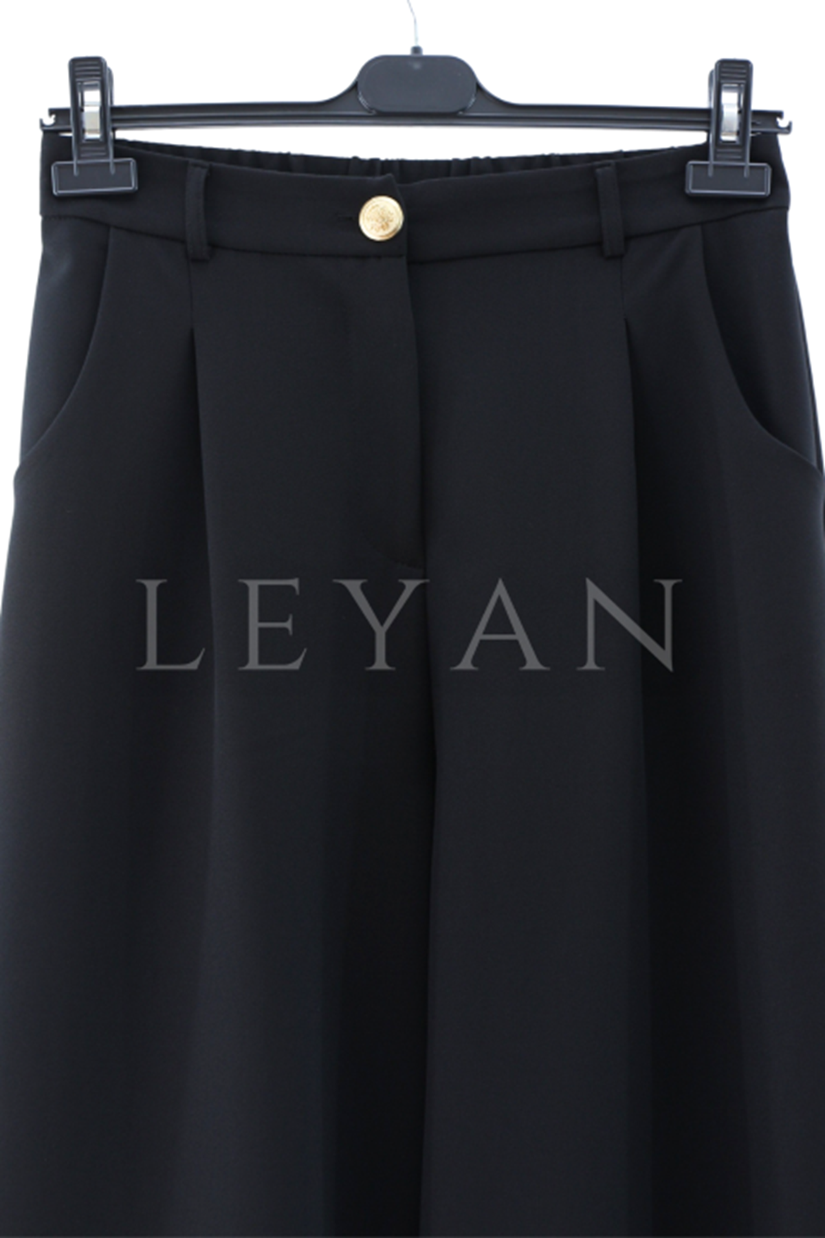 Sentez Roma Arkası Lastikli Pileli Pantolon- LYN04016 Siyah