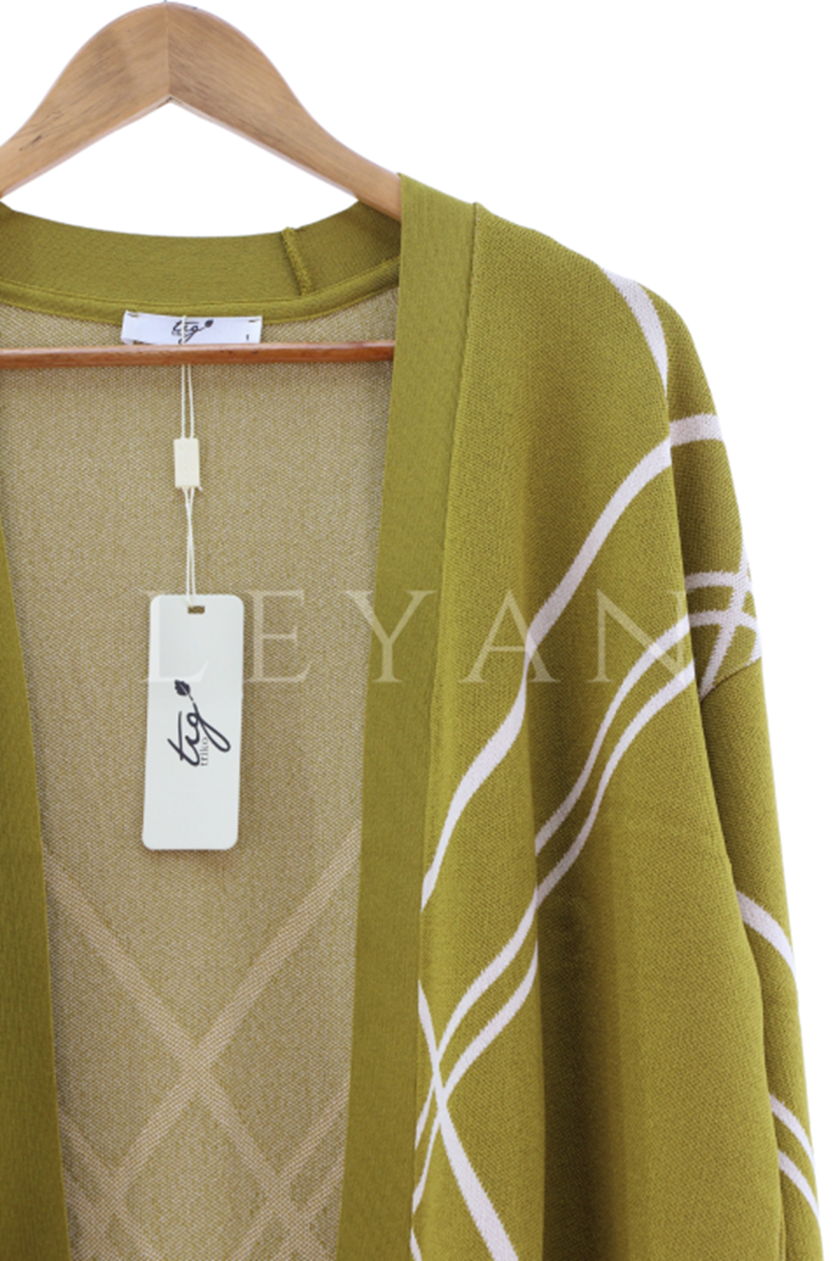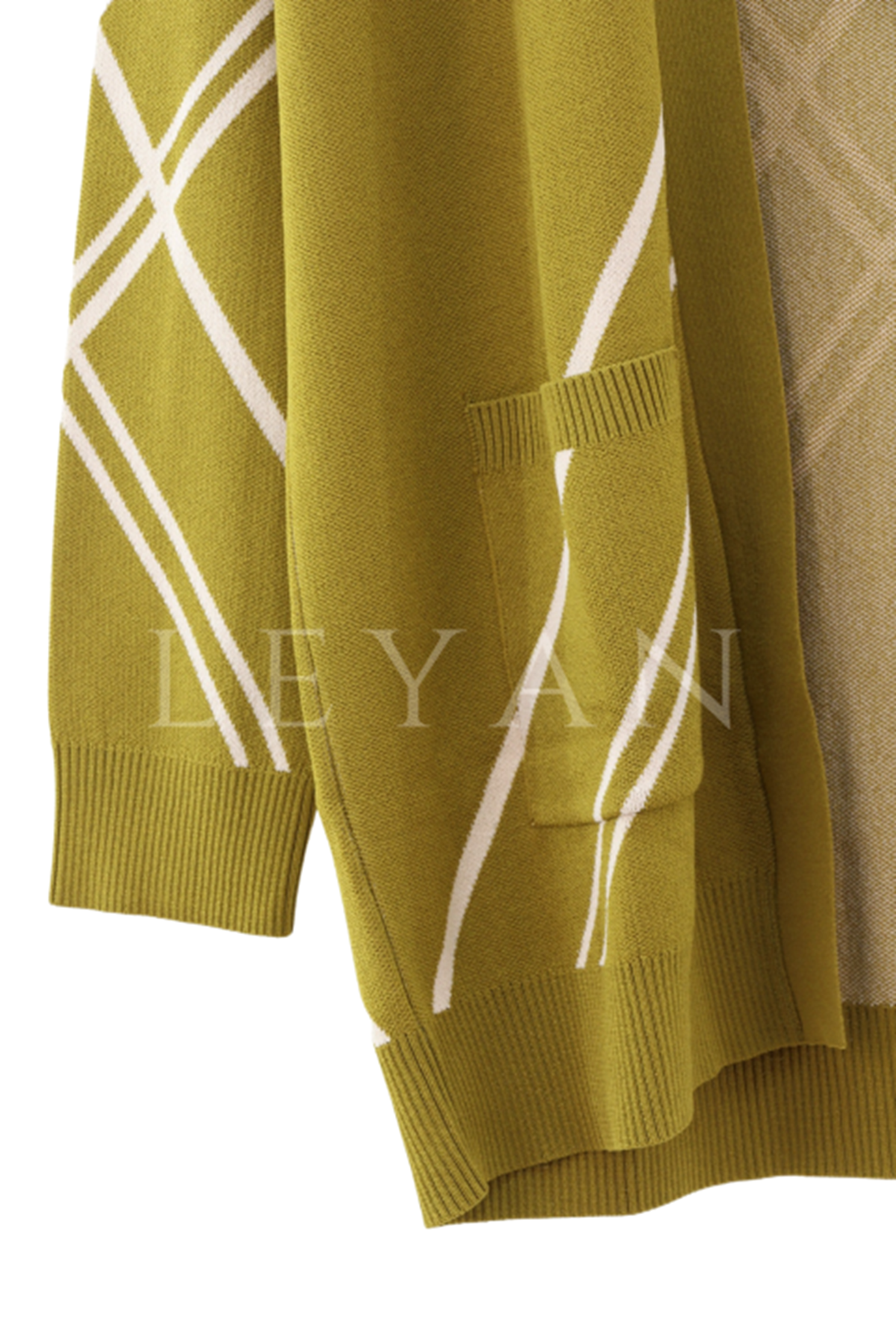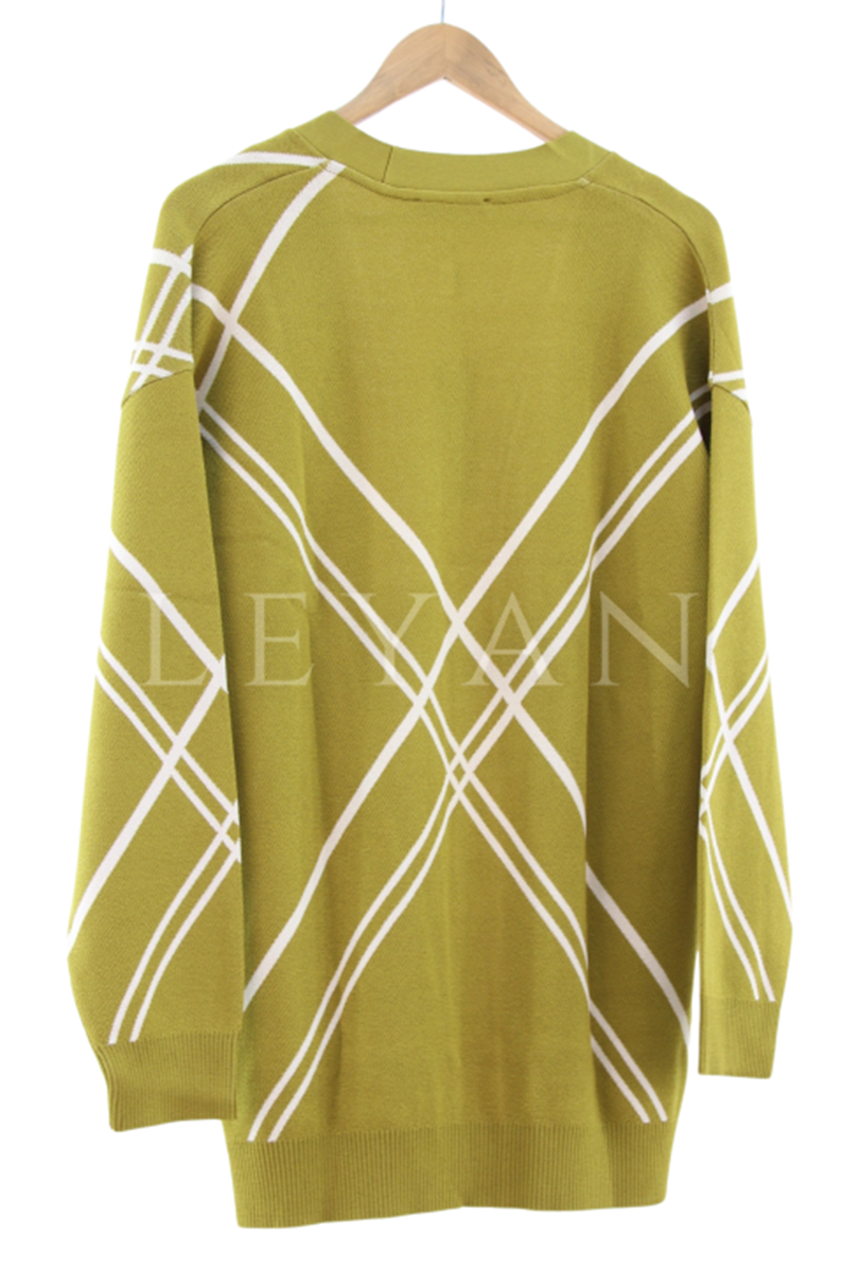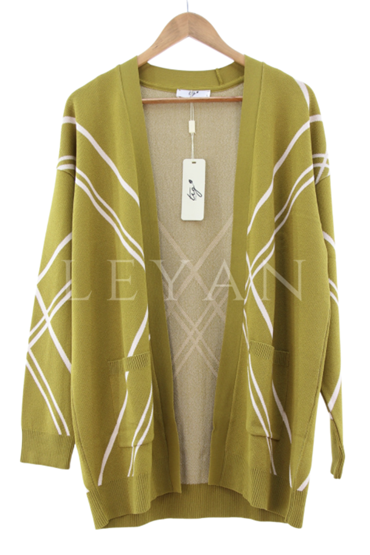 Tığ Triko Cepli Verev Çizgili Hırka- LYN03534 Asit