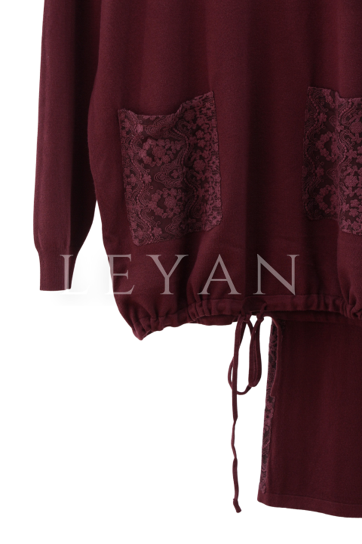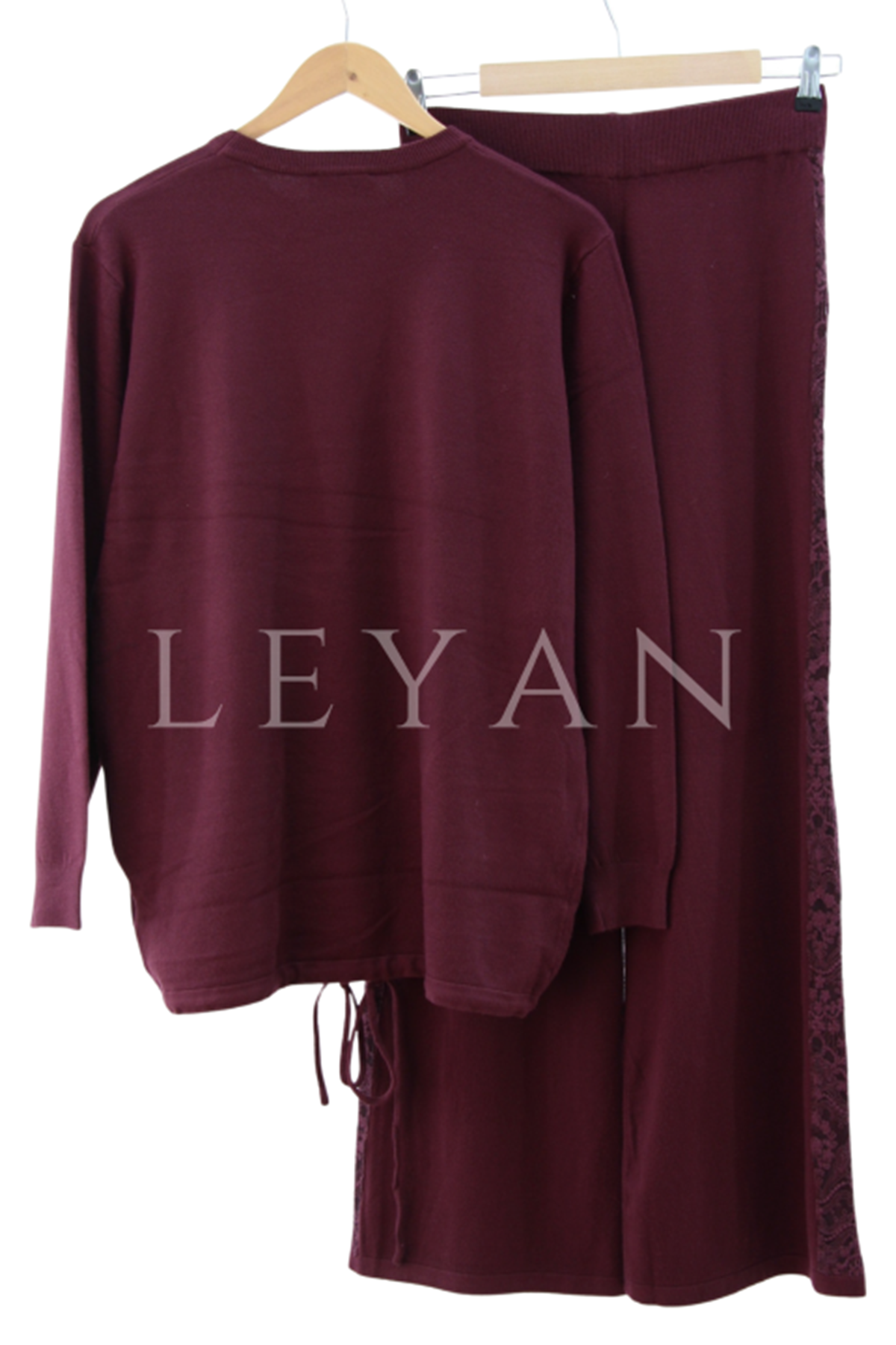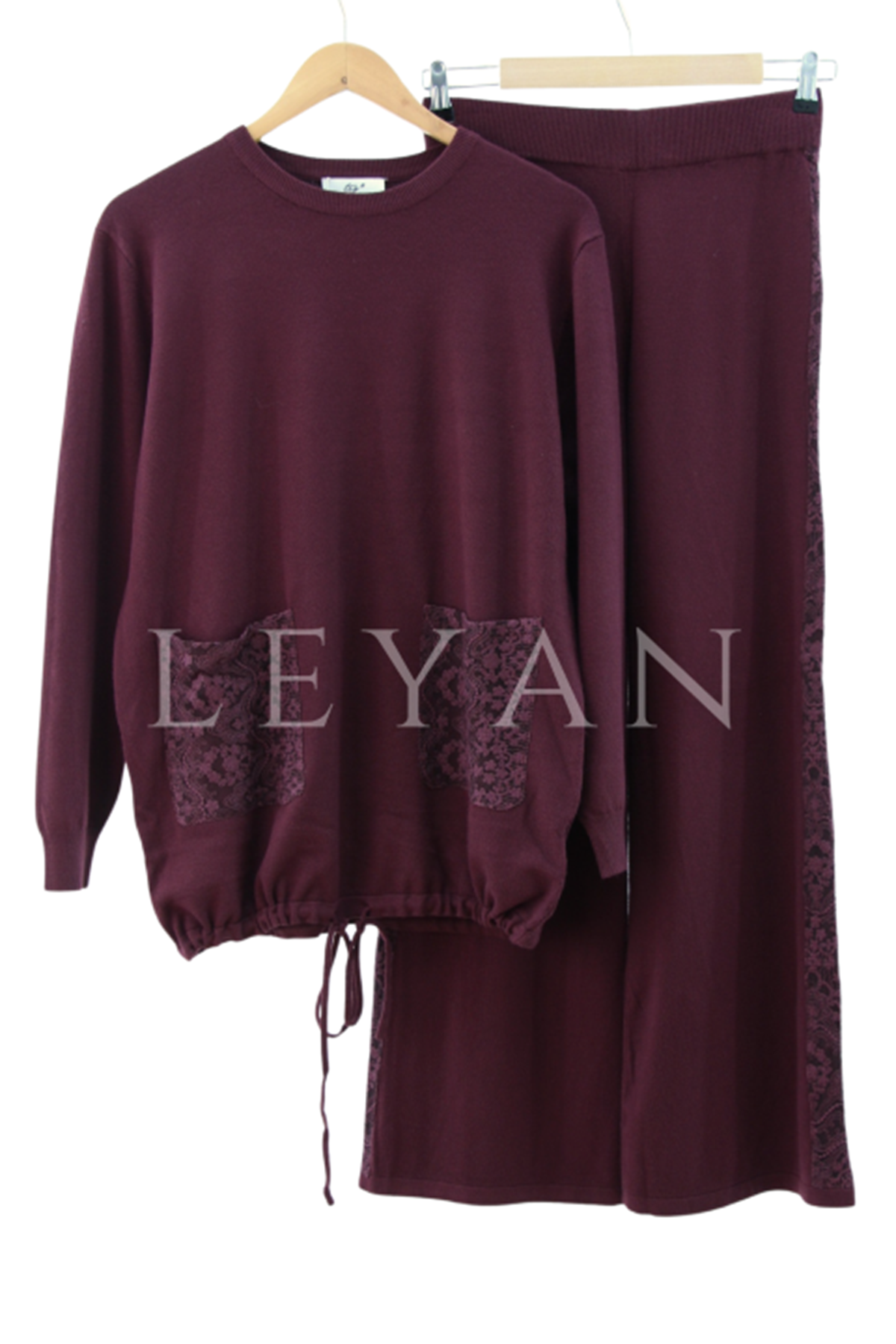 Tığ Triko Dantel Detaylı Takım- LYN04172 Bordo