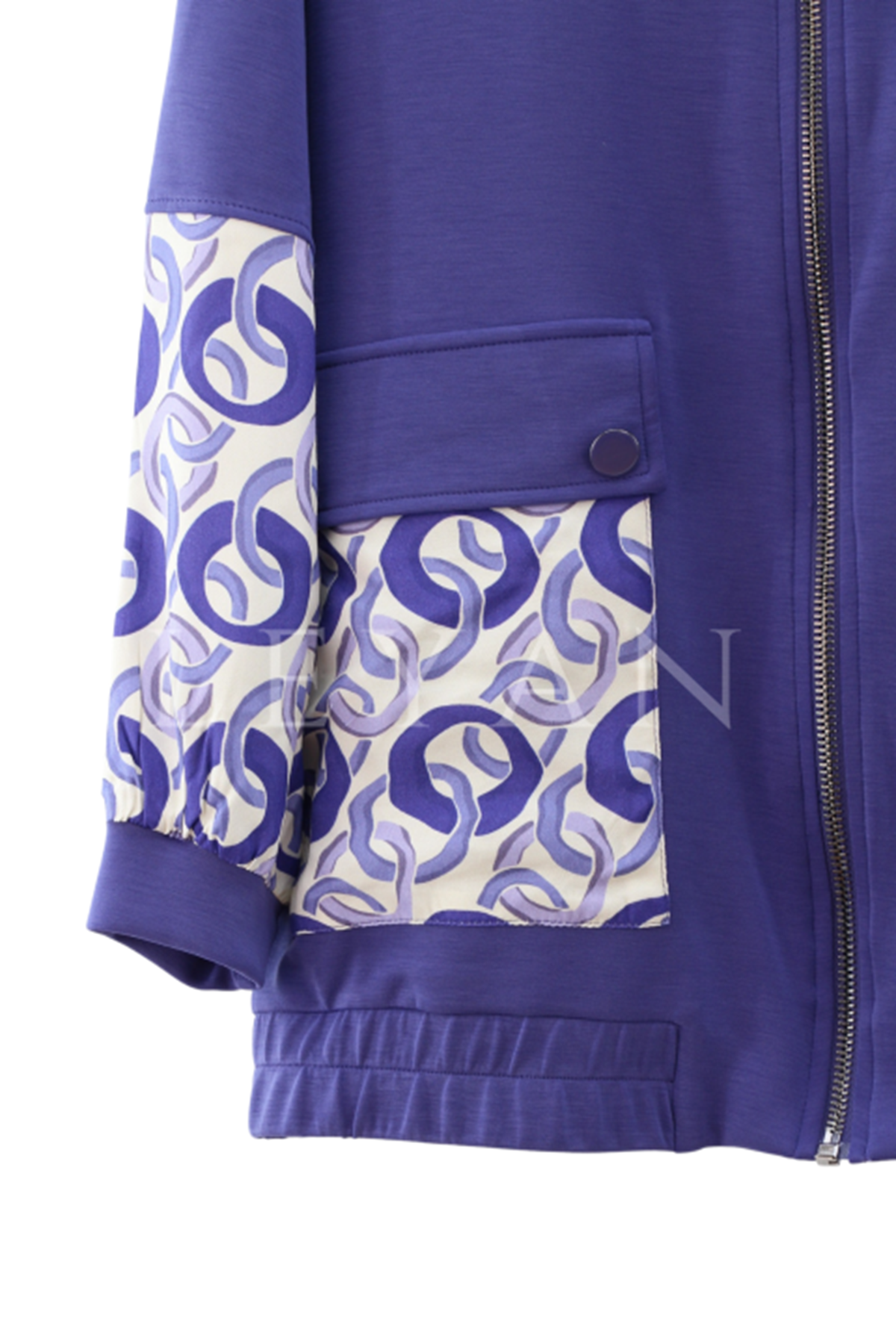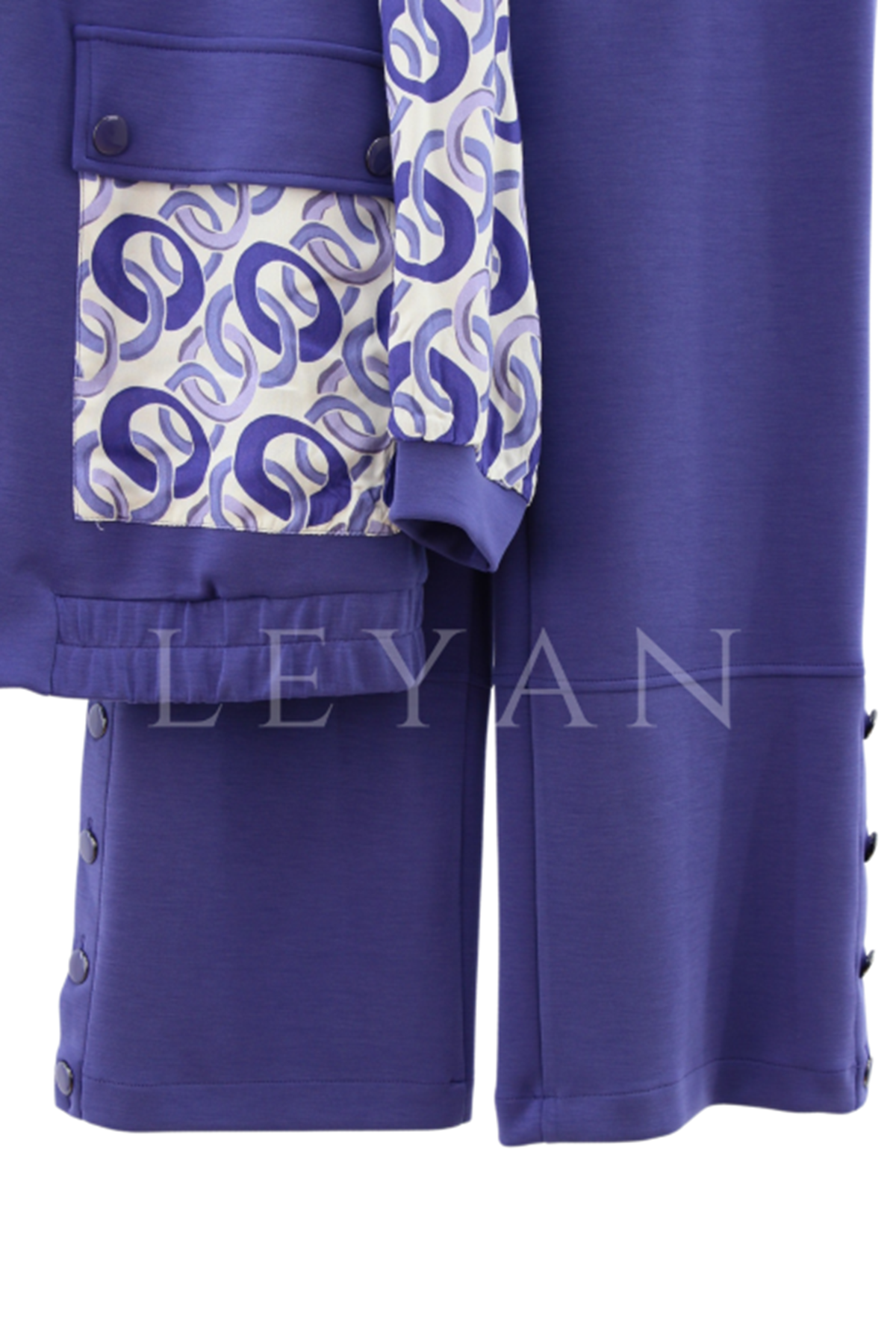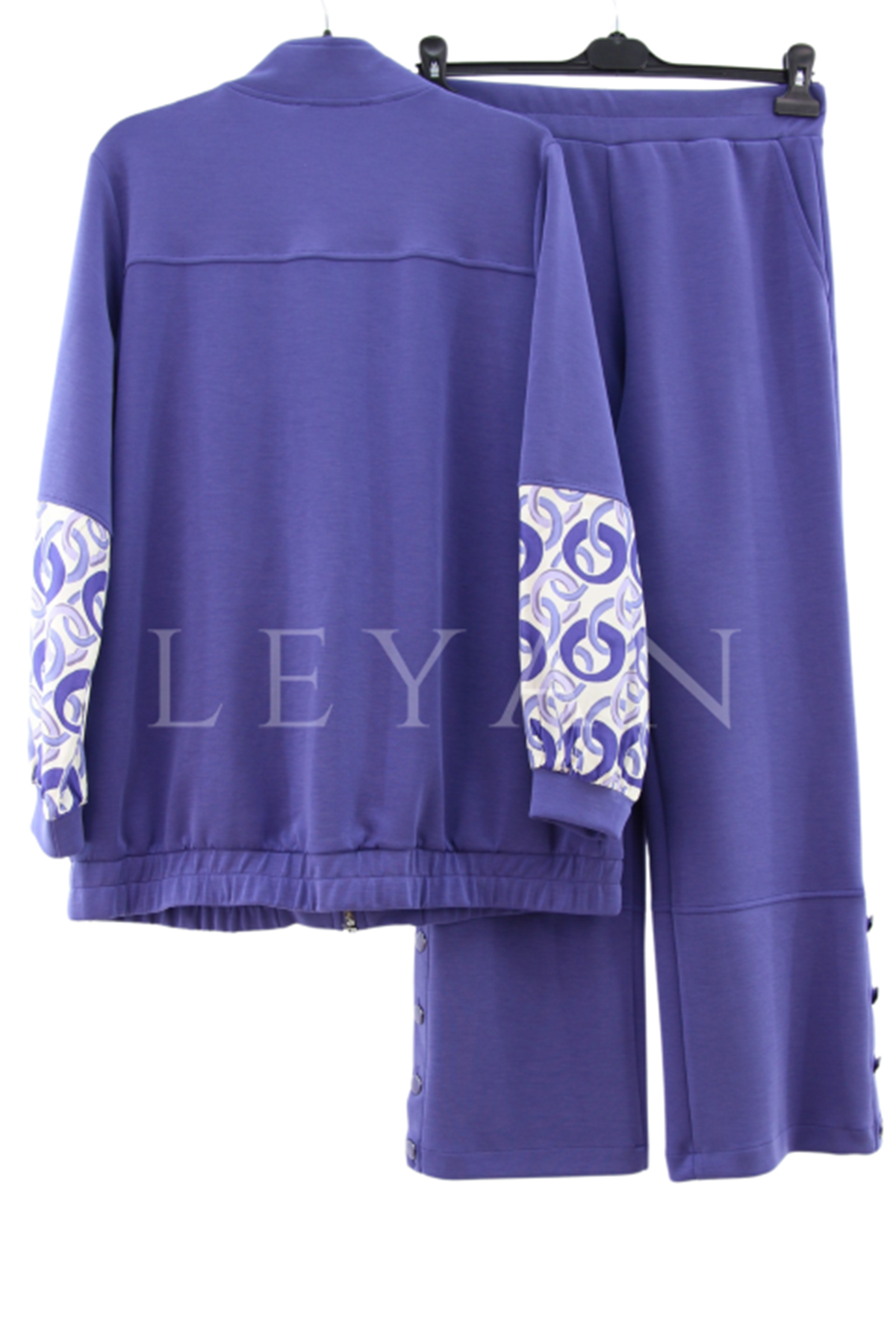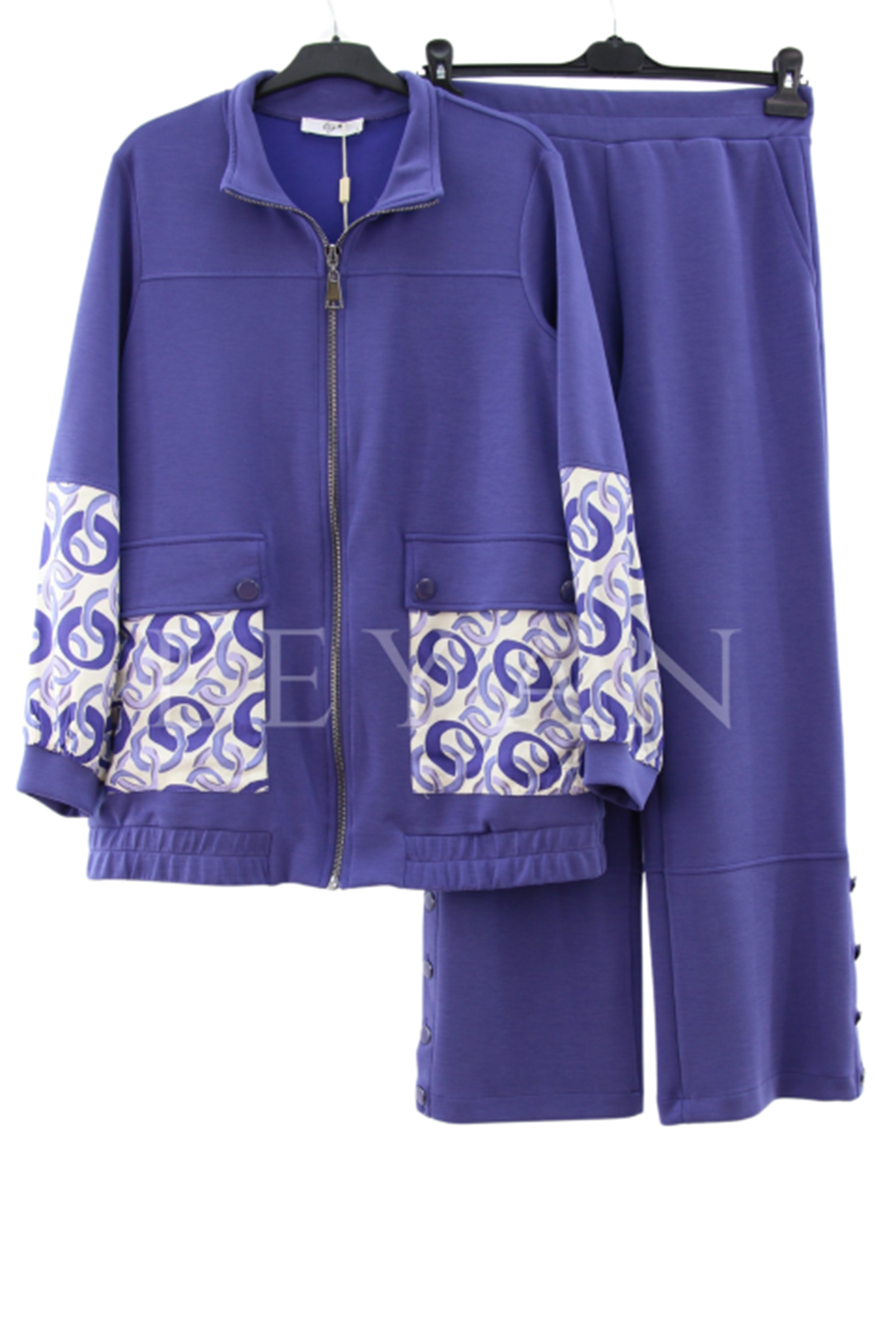 Tığ Triko Desenli Kumaş Kombinli Takım- LYN03490 Mor
