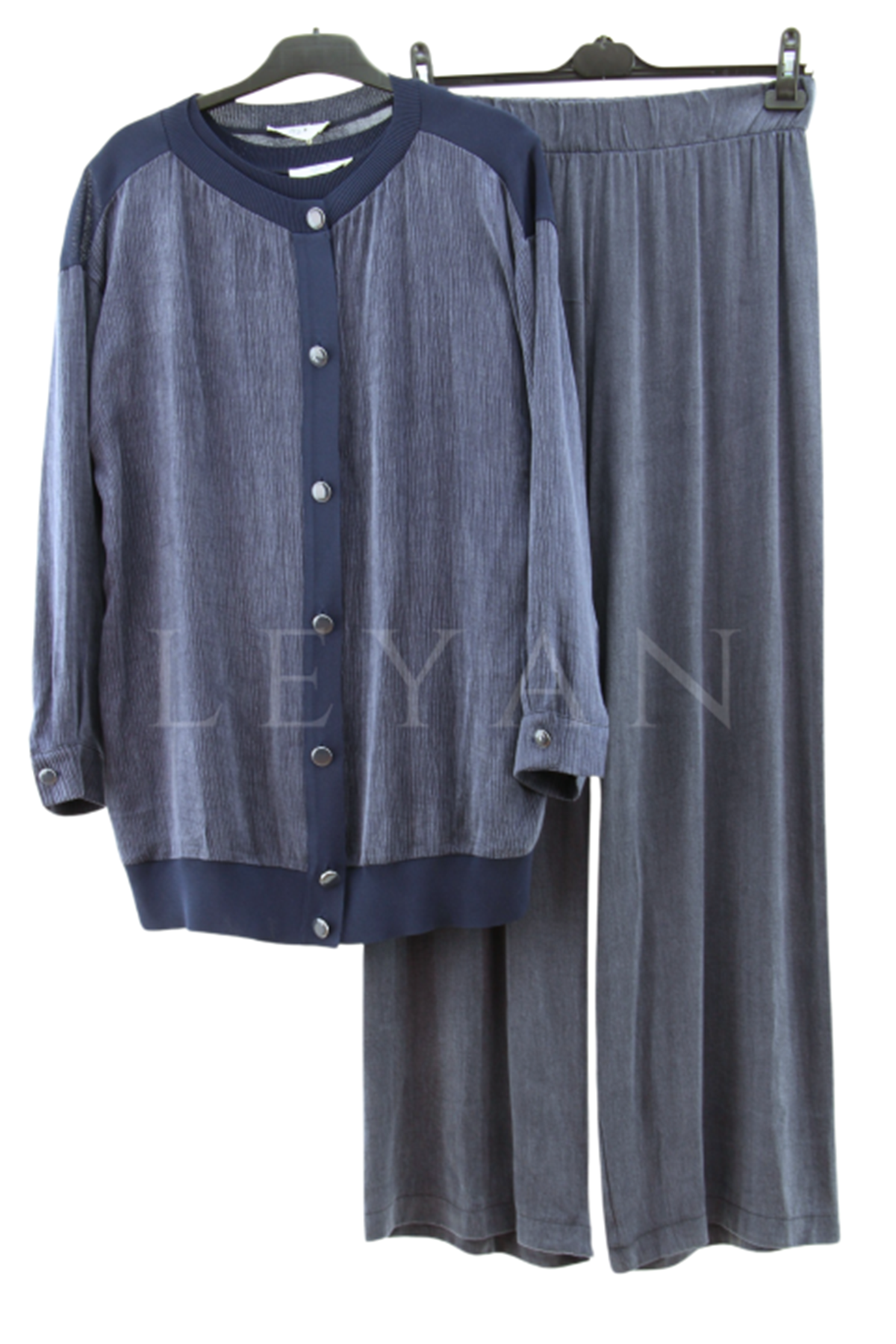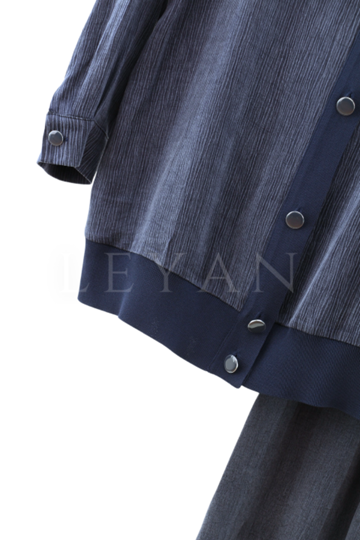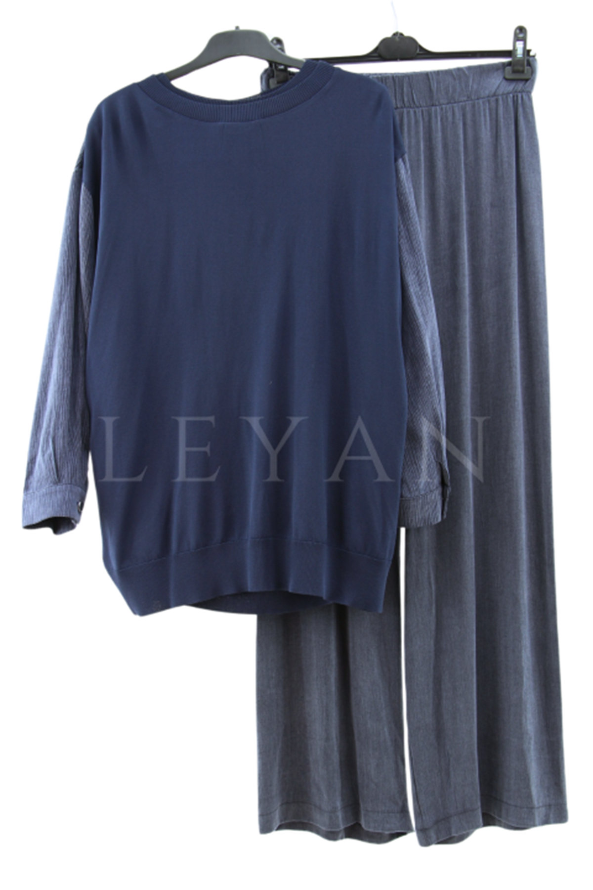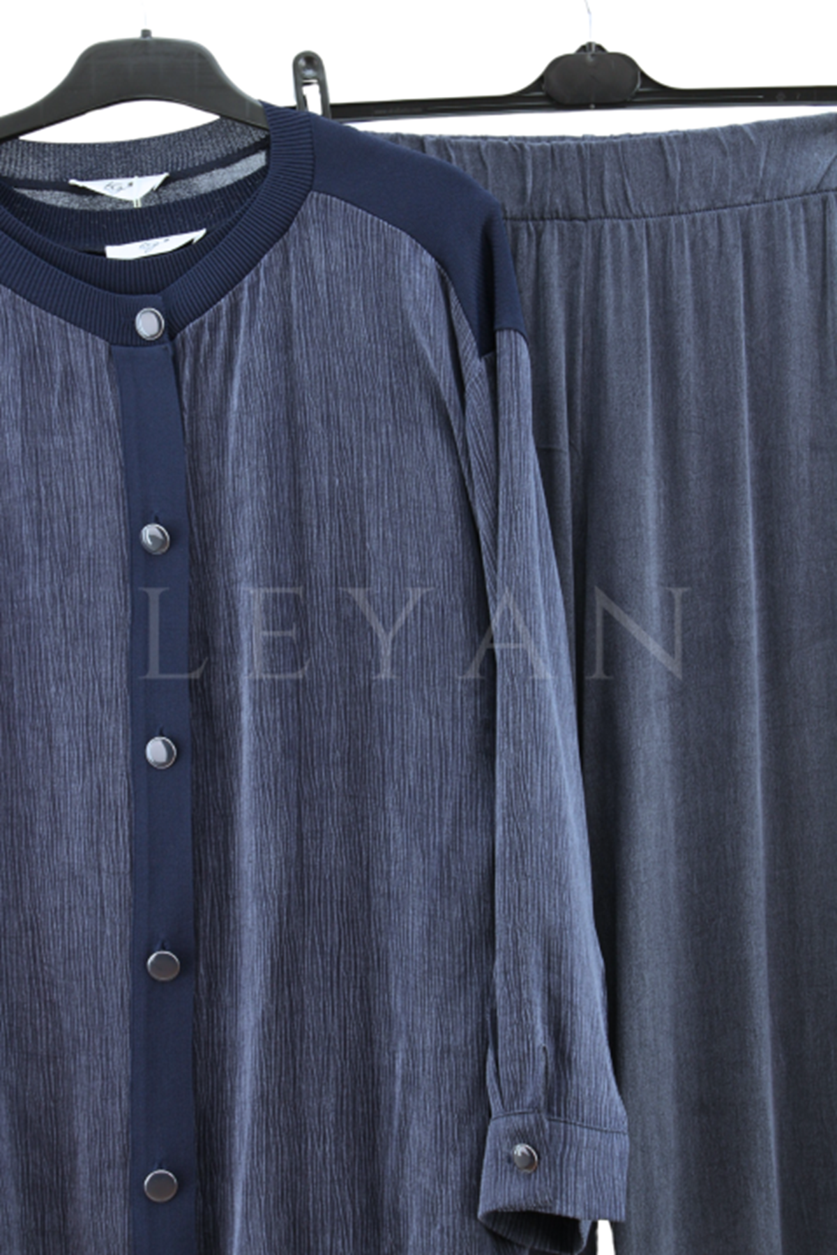 Tığ Triko İçli Ceketli Üçlü Takım- LYN03390 Lacivert