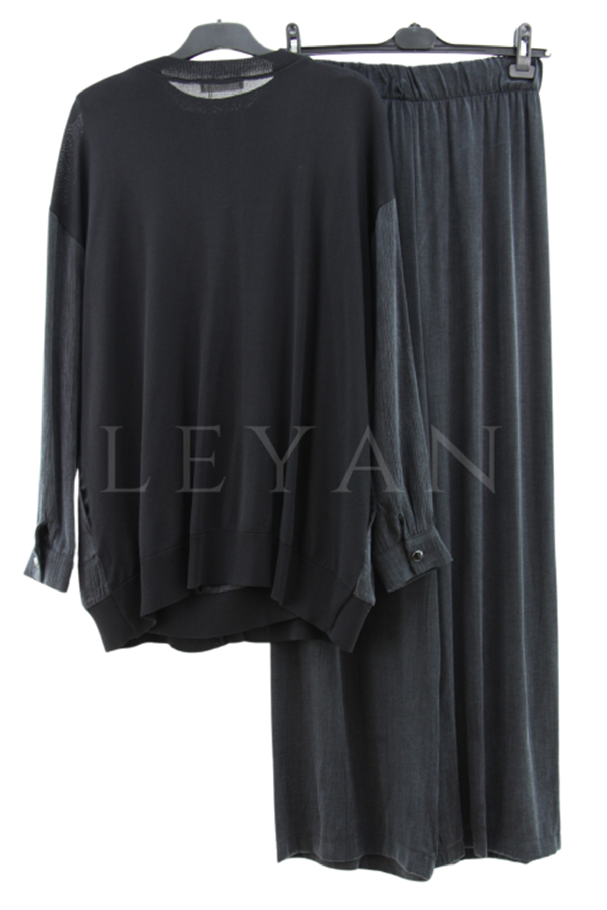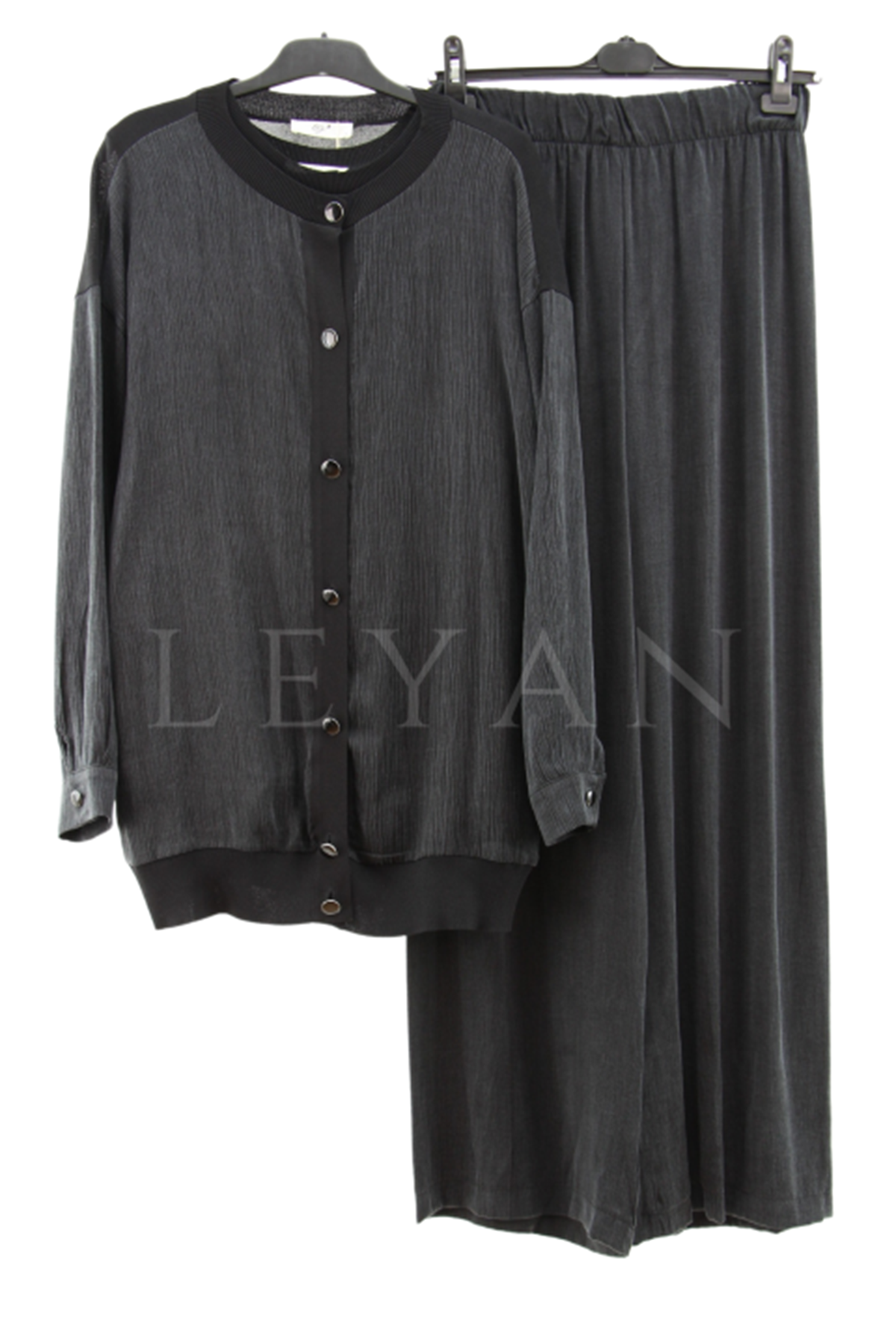 Tığ Triko İçli Ceketli Üçlü Takım- LYN03390 Siyah