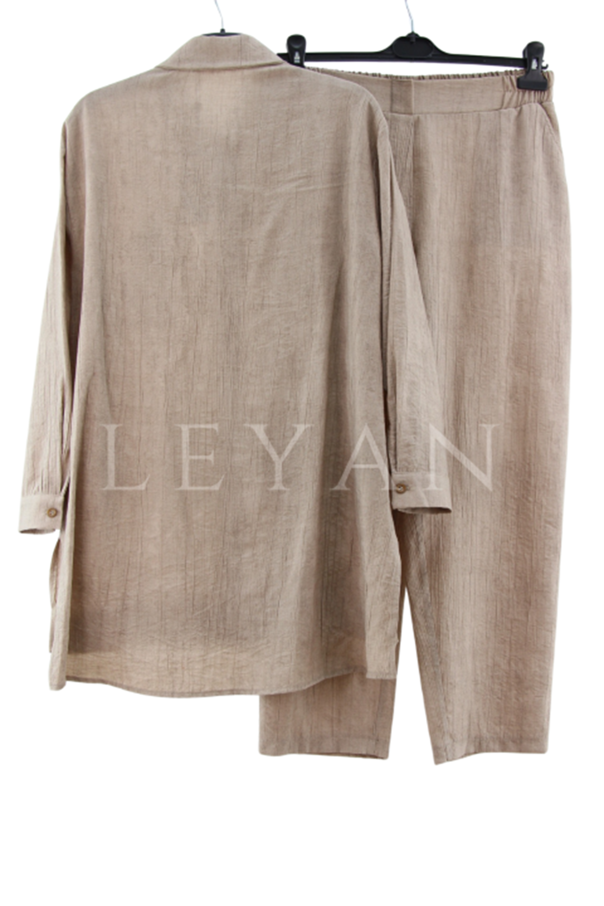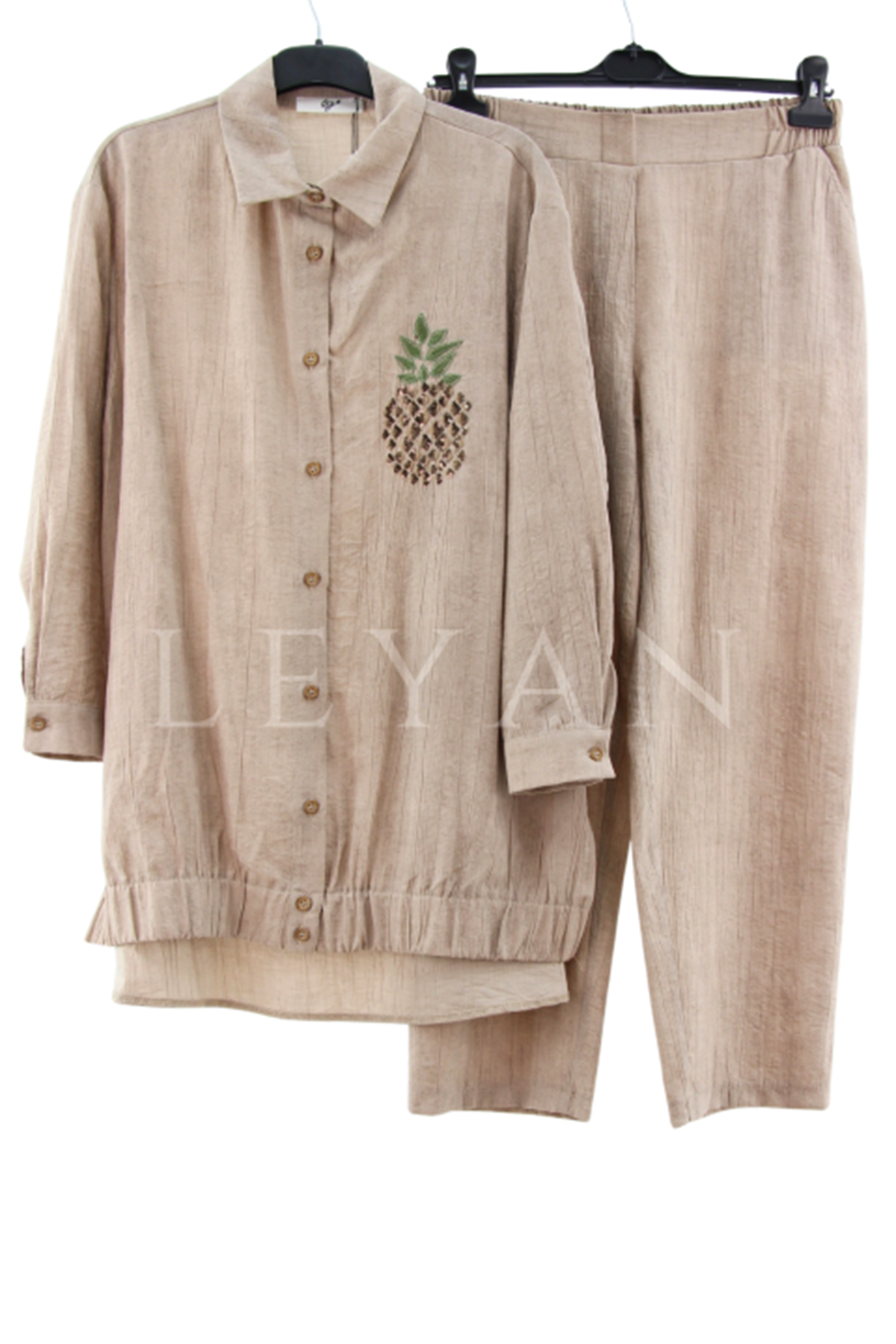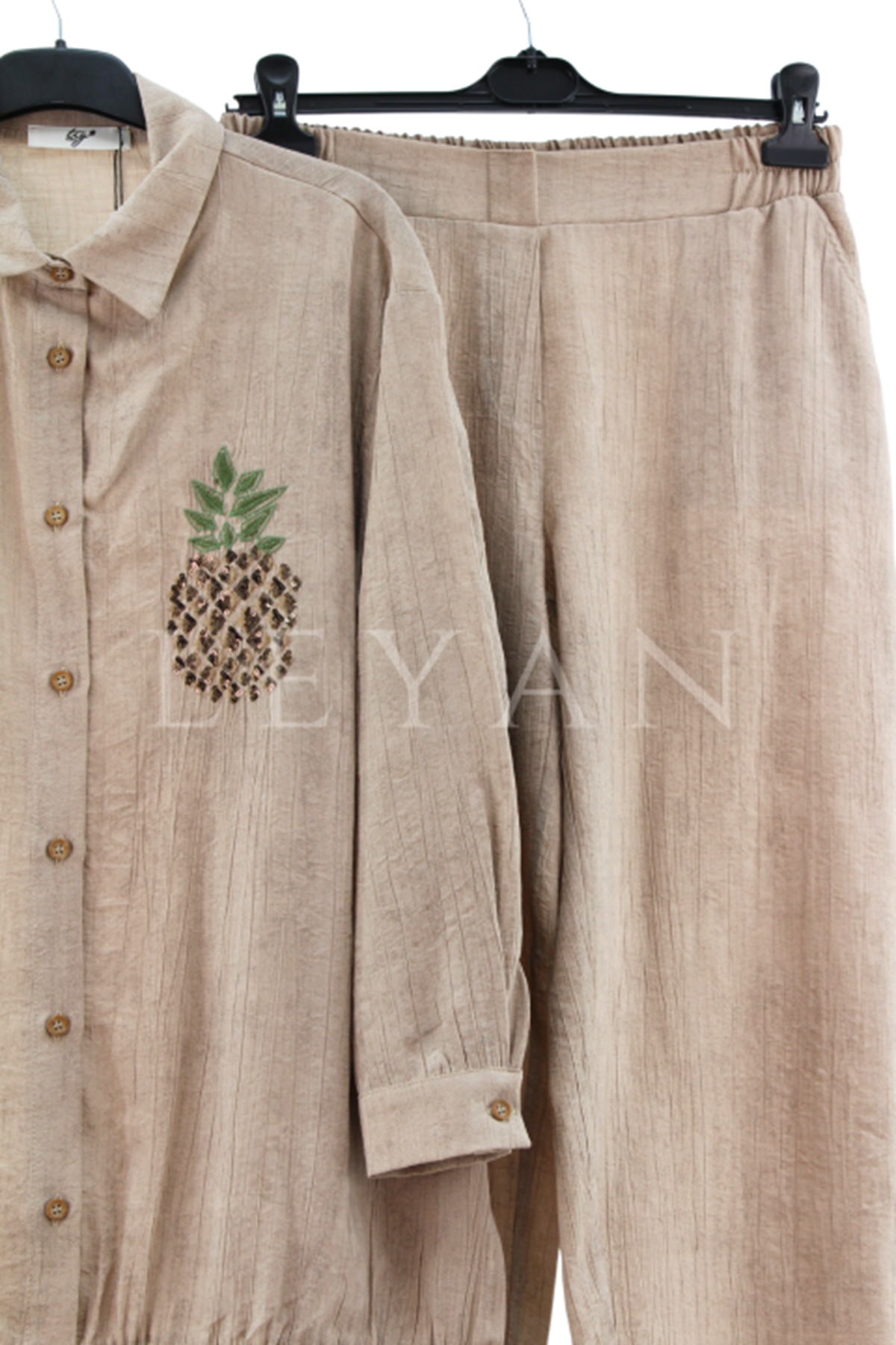 Tığ Triko Nakışlı Pantolonlu Takım- LYN03807 Bej