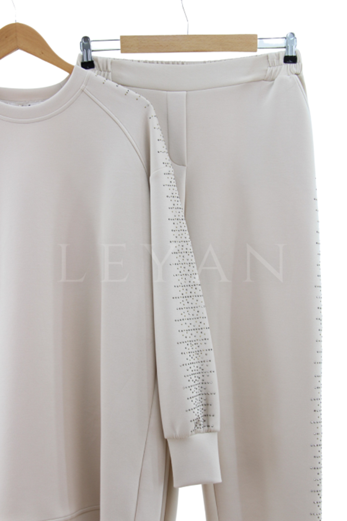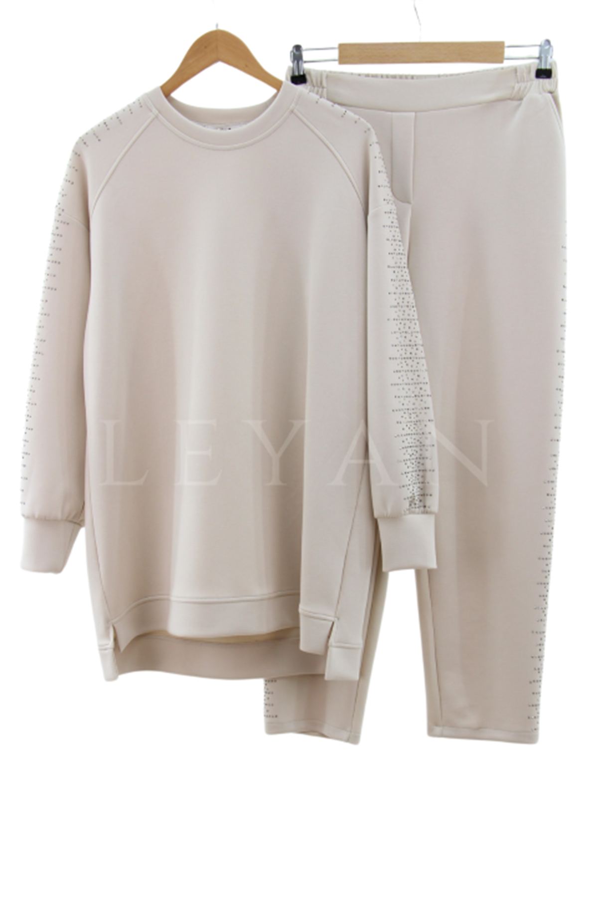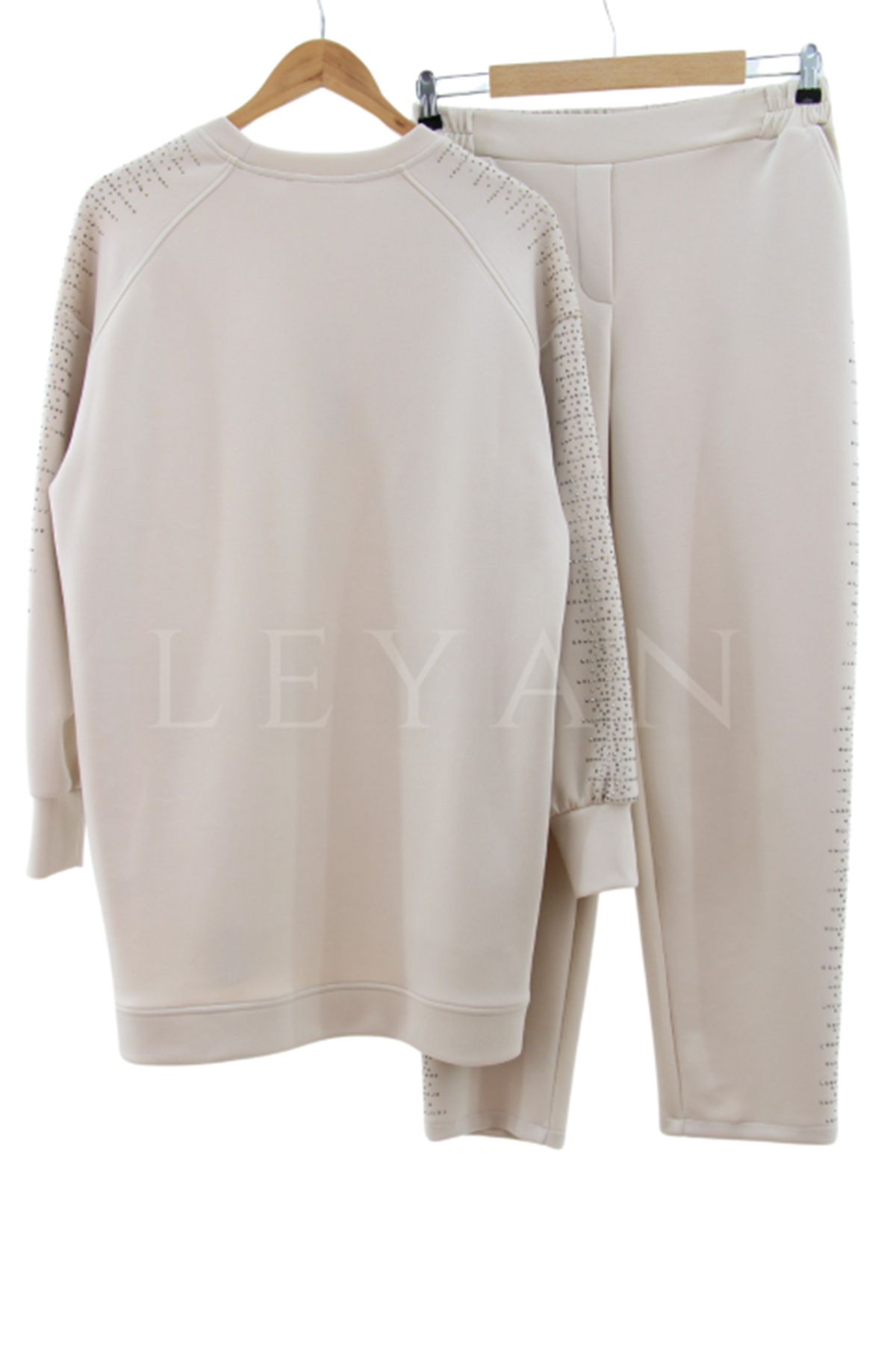 Tığ Triko Taş Baskılı Takım- LYN03300 Bej