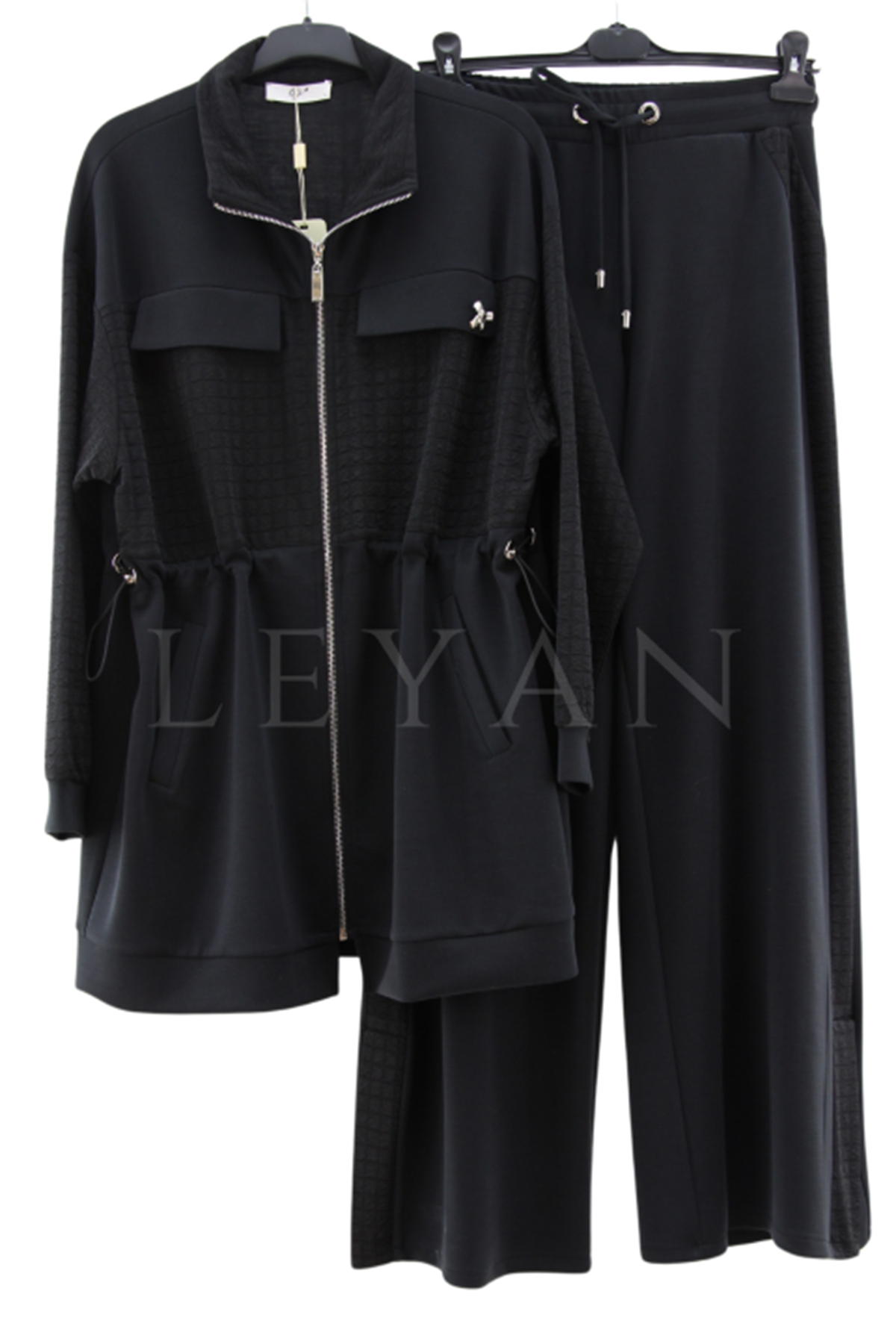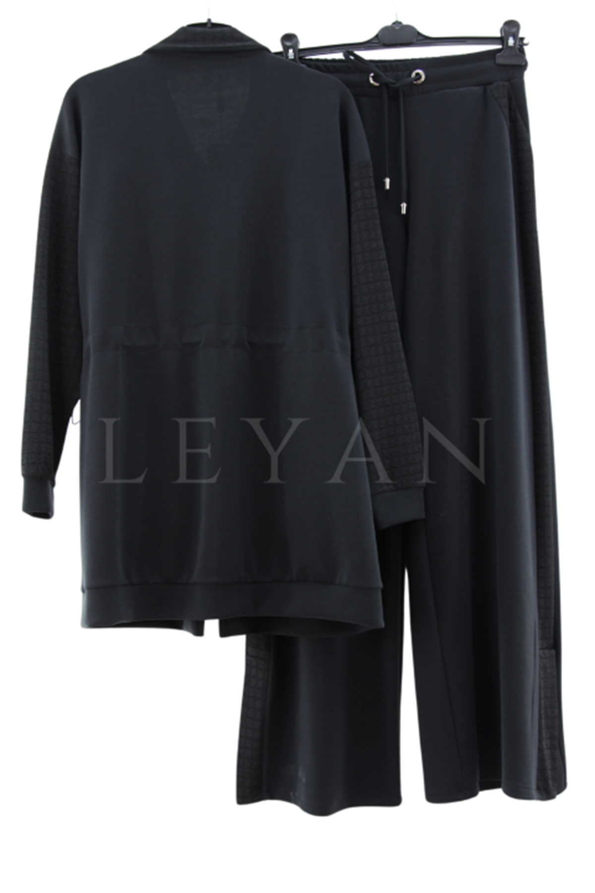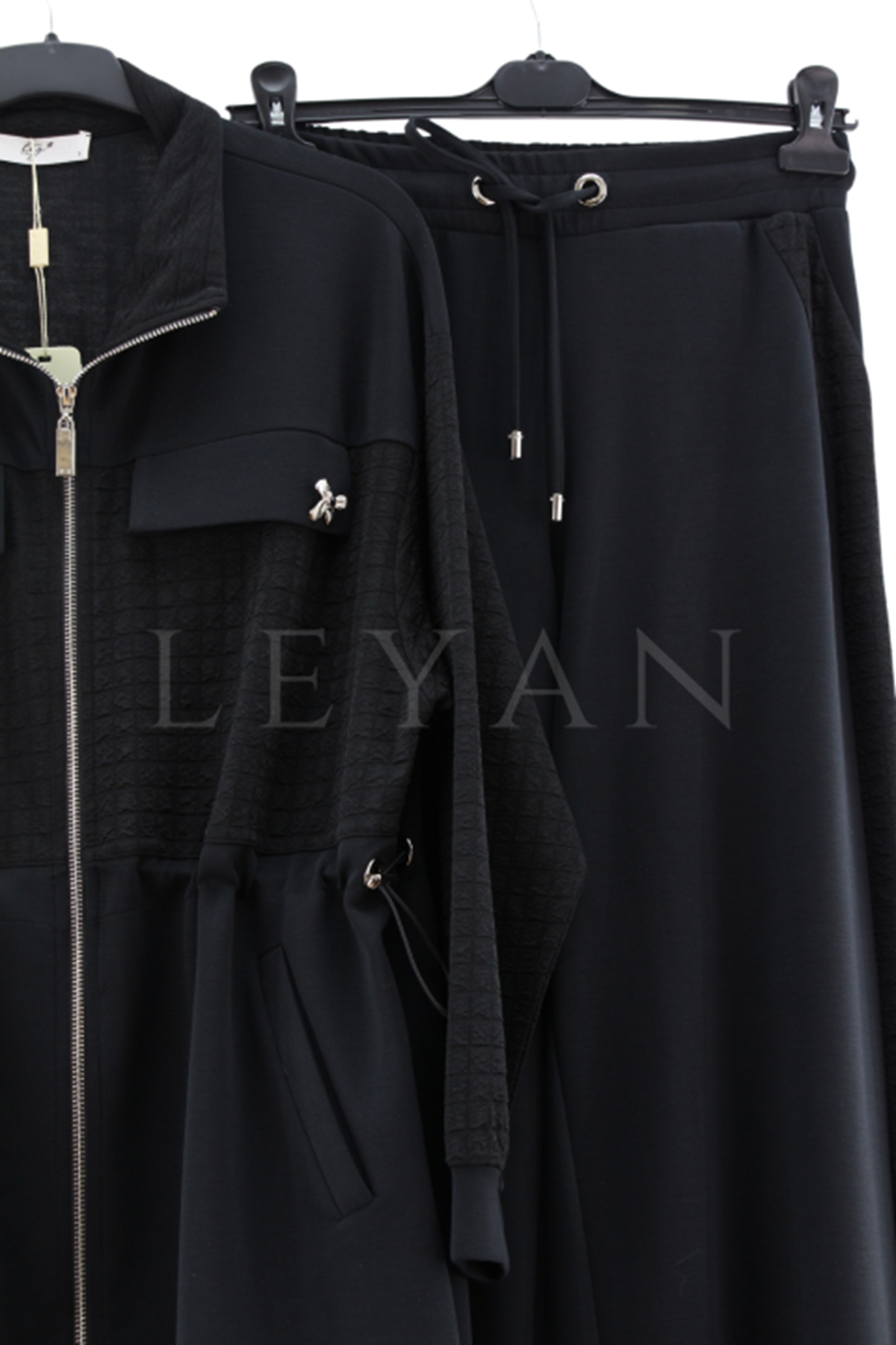 Tığ Triko Tünelli Kumaş Takım- LYN03557 Siyah