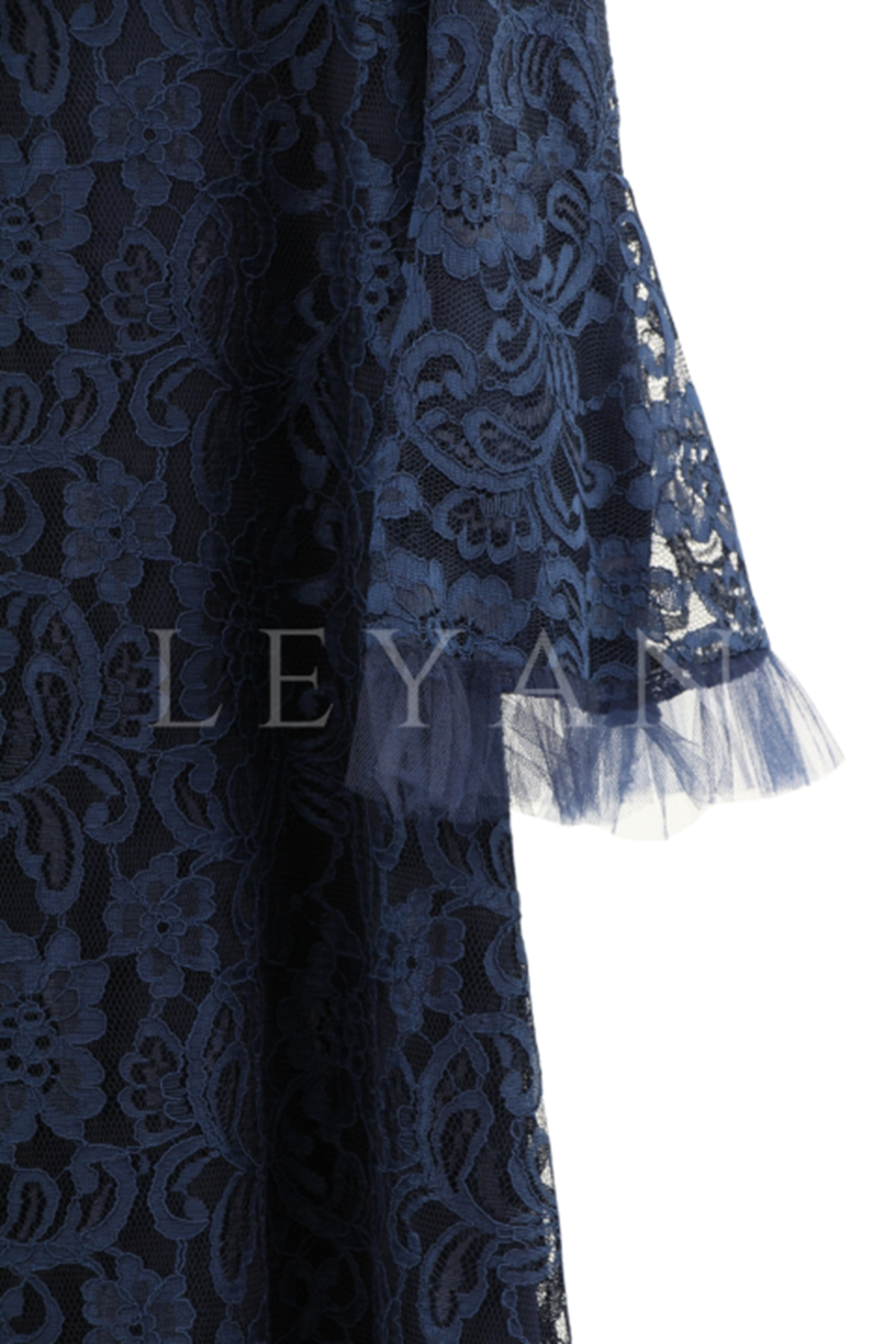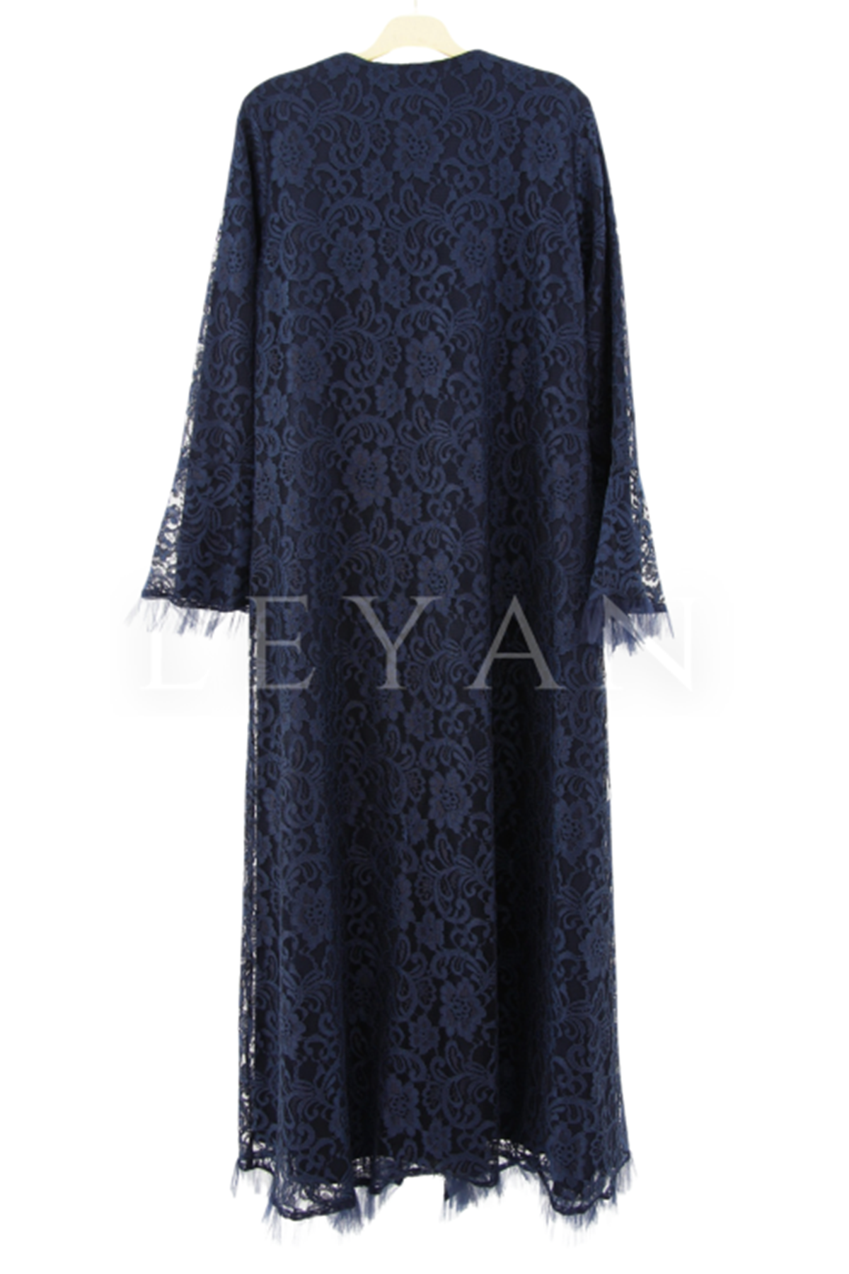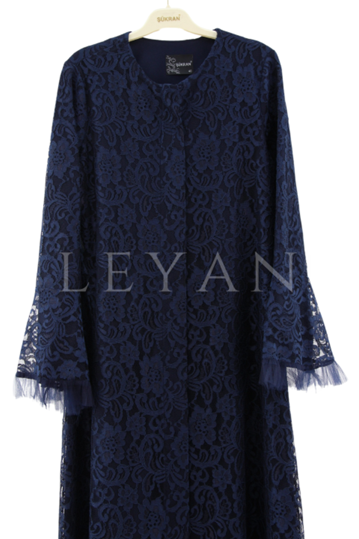Tül Detaylı Güpür Ferace- LYN03526 Lacivert