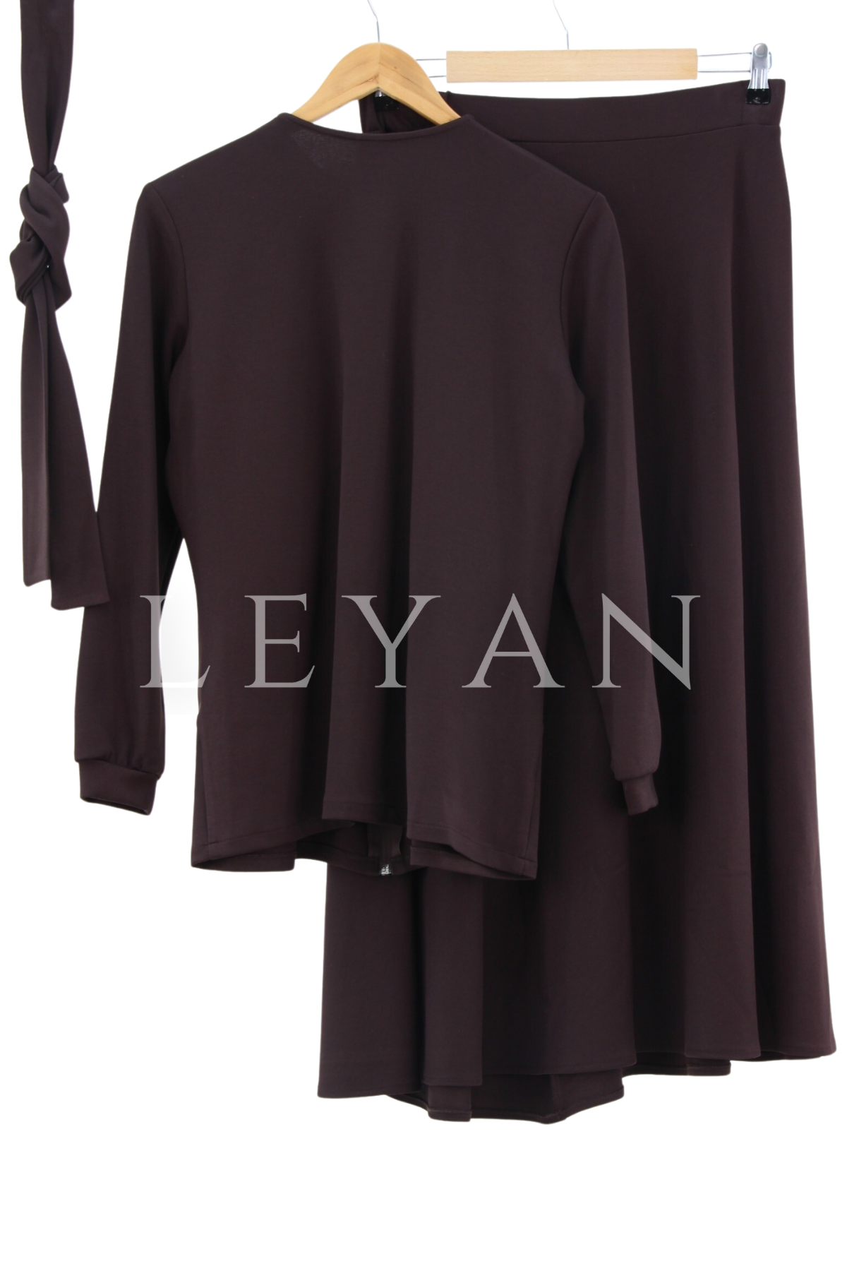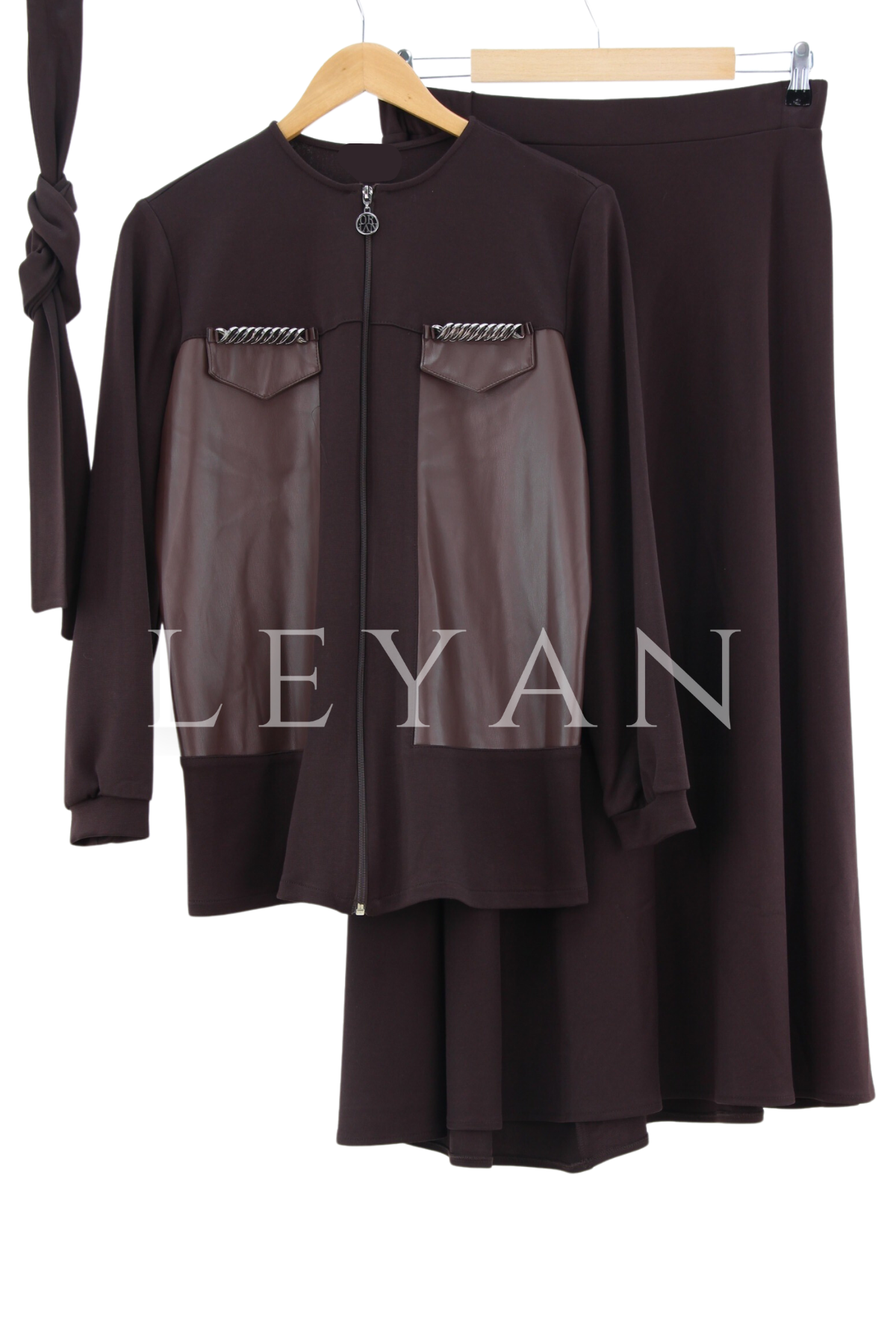 Zincir Detaylı Derili Etekli Takım- LYN01764 Kahverengi