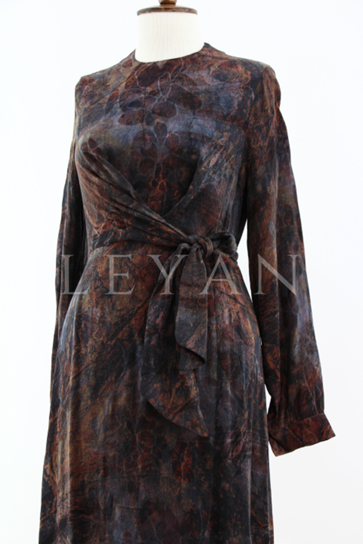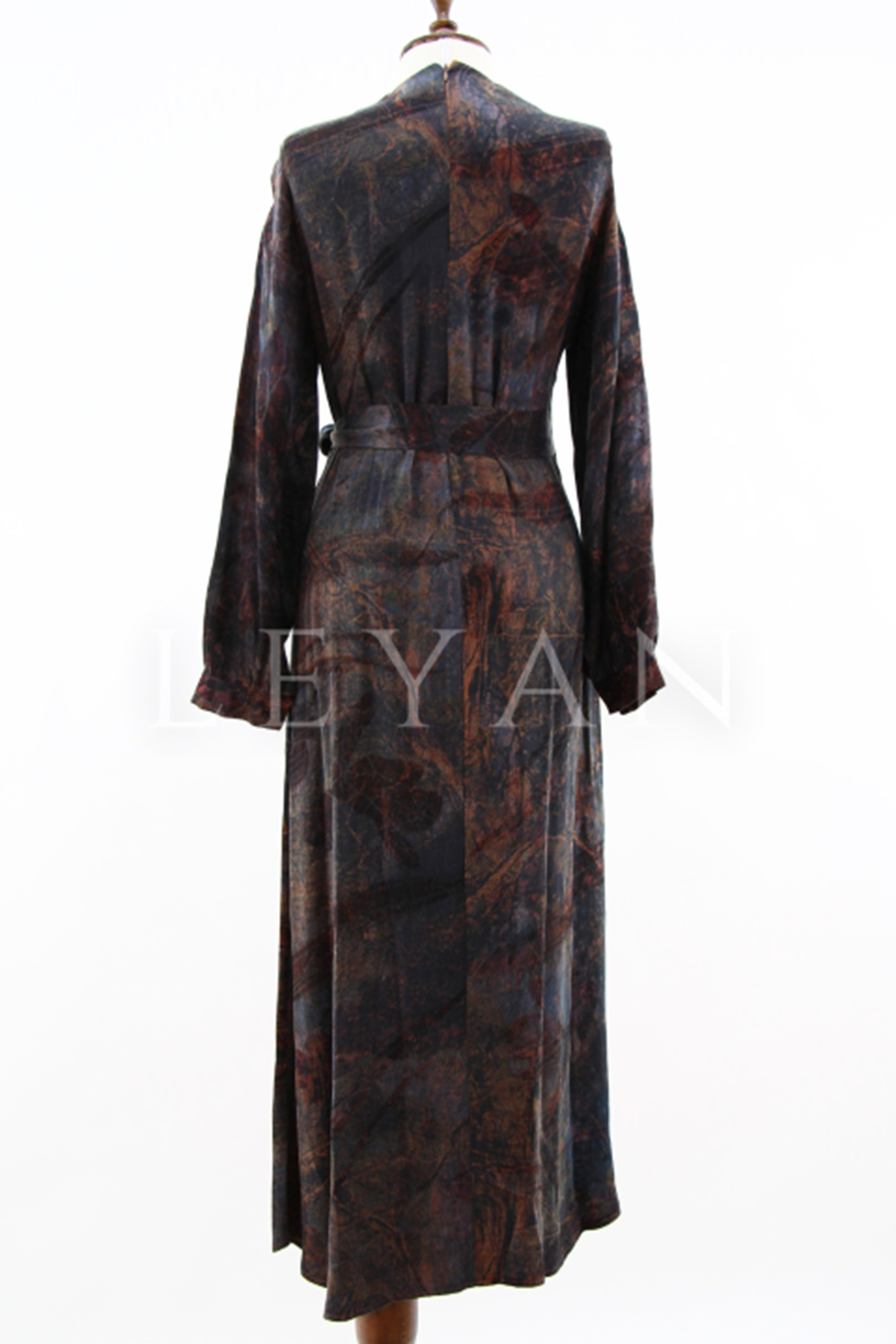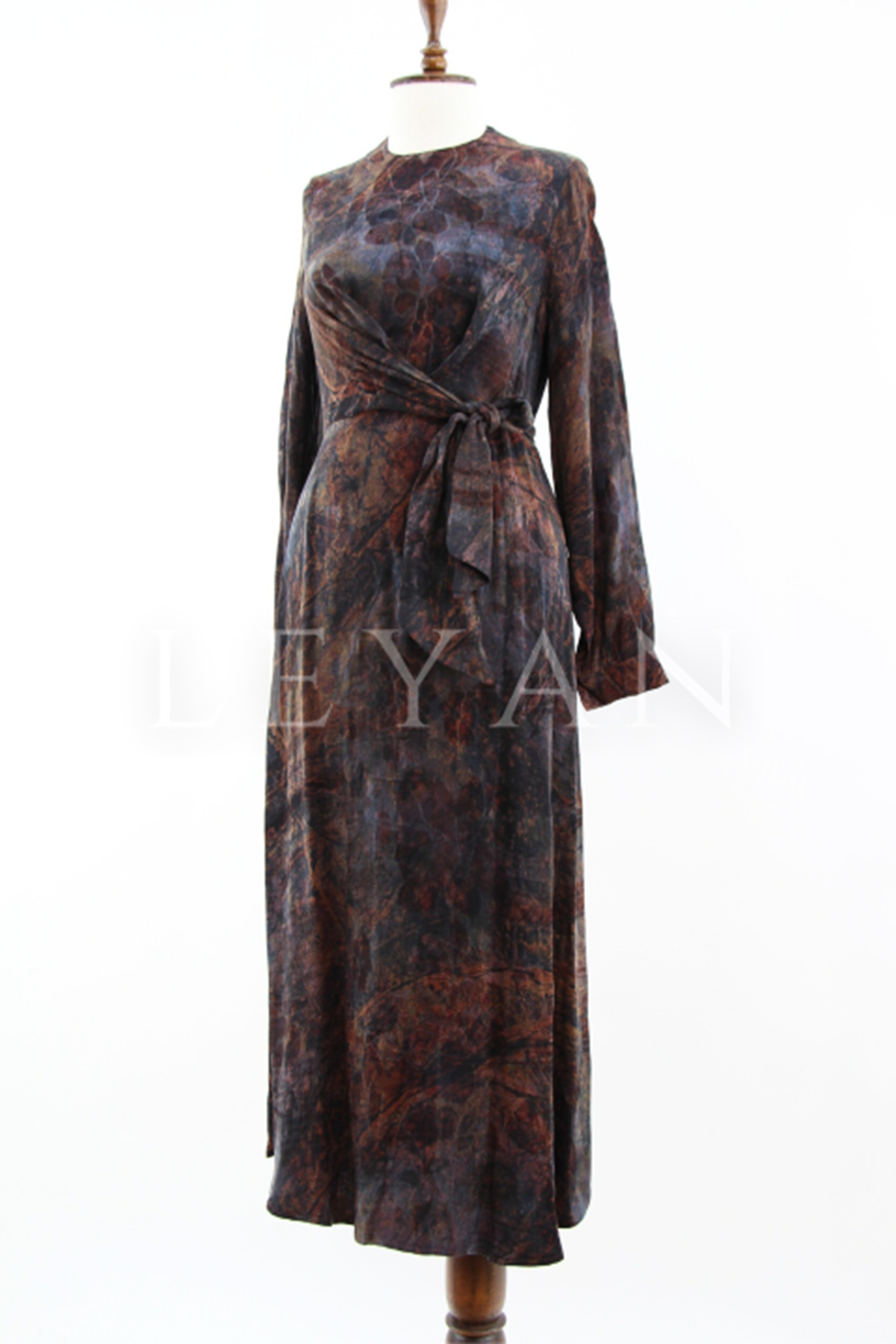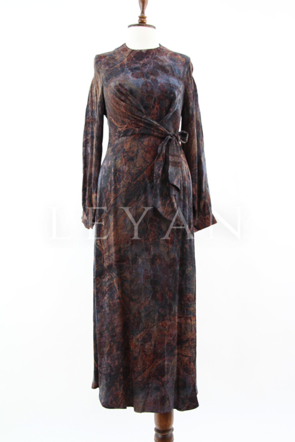 Nuss Desenli Kemerli Elbise- LYN04210 Tarçın