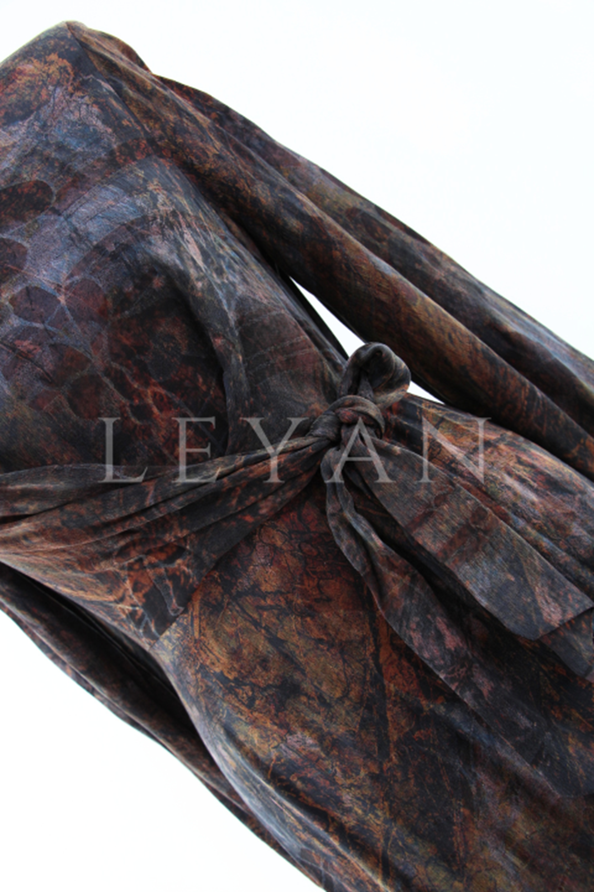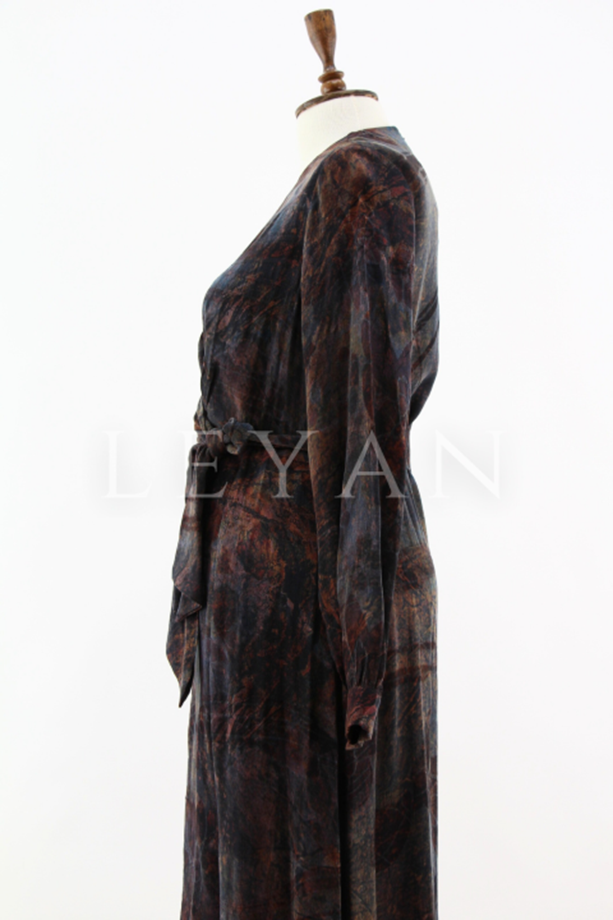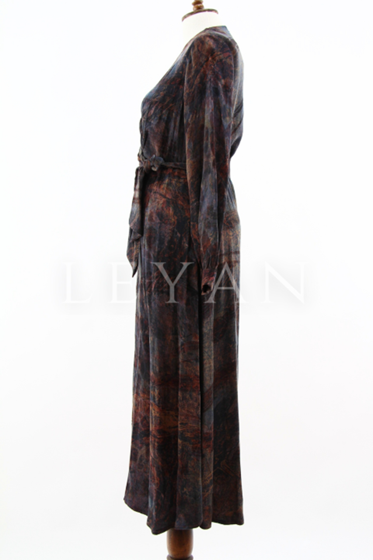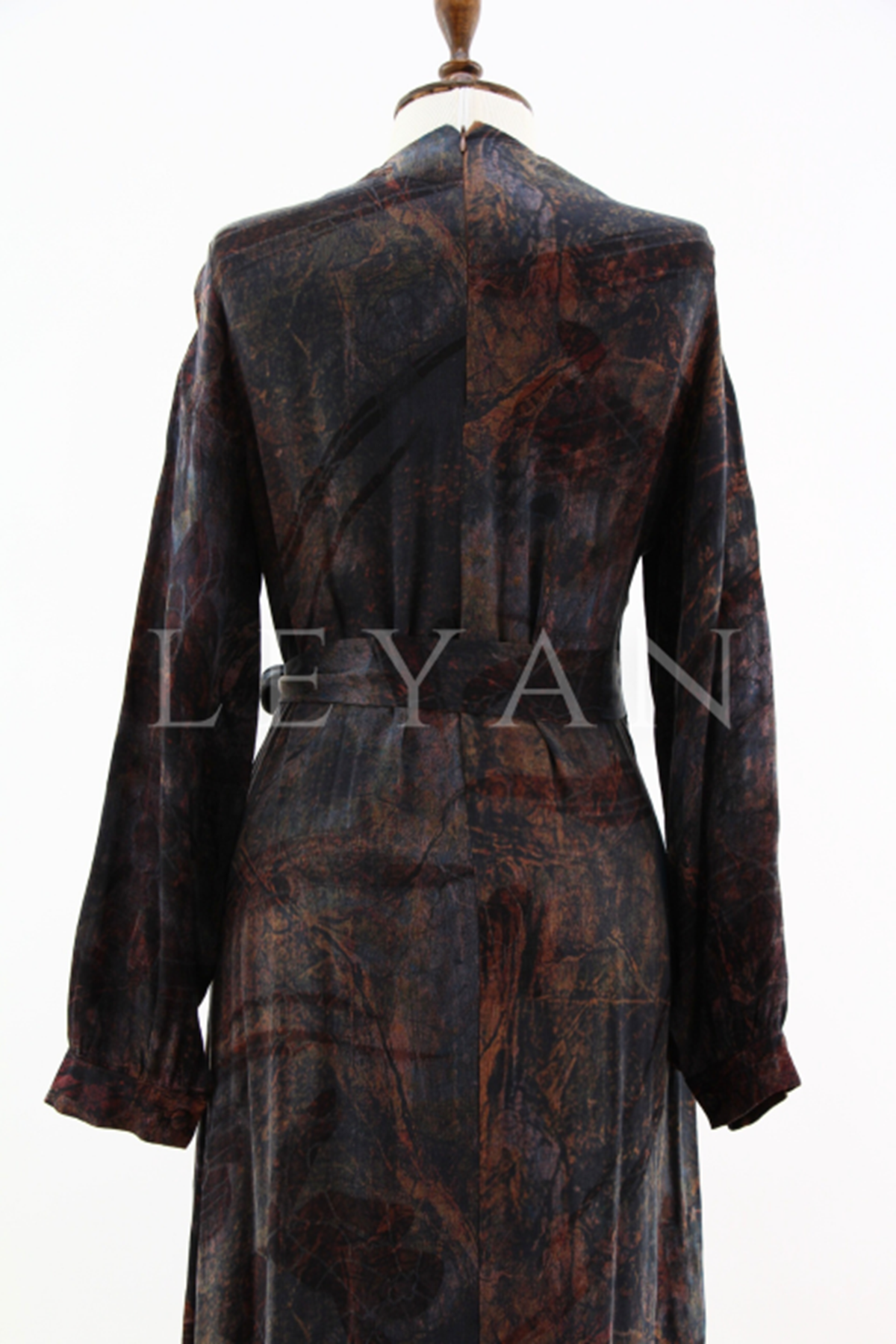 Nuss Desenli Kemerli Elbise- LYN04210 Tarçın