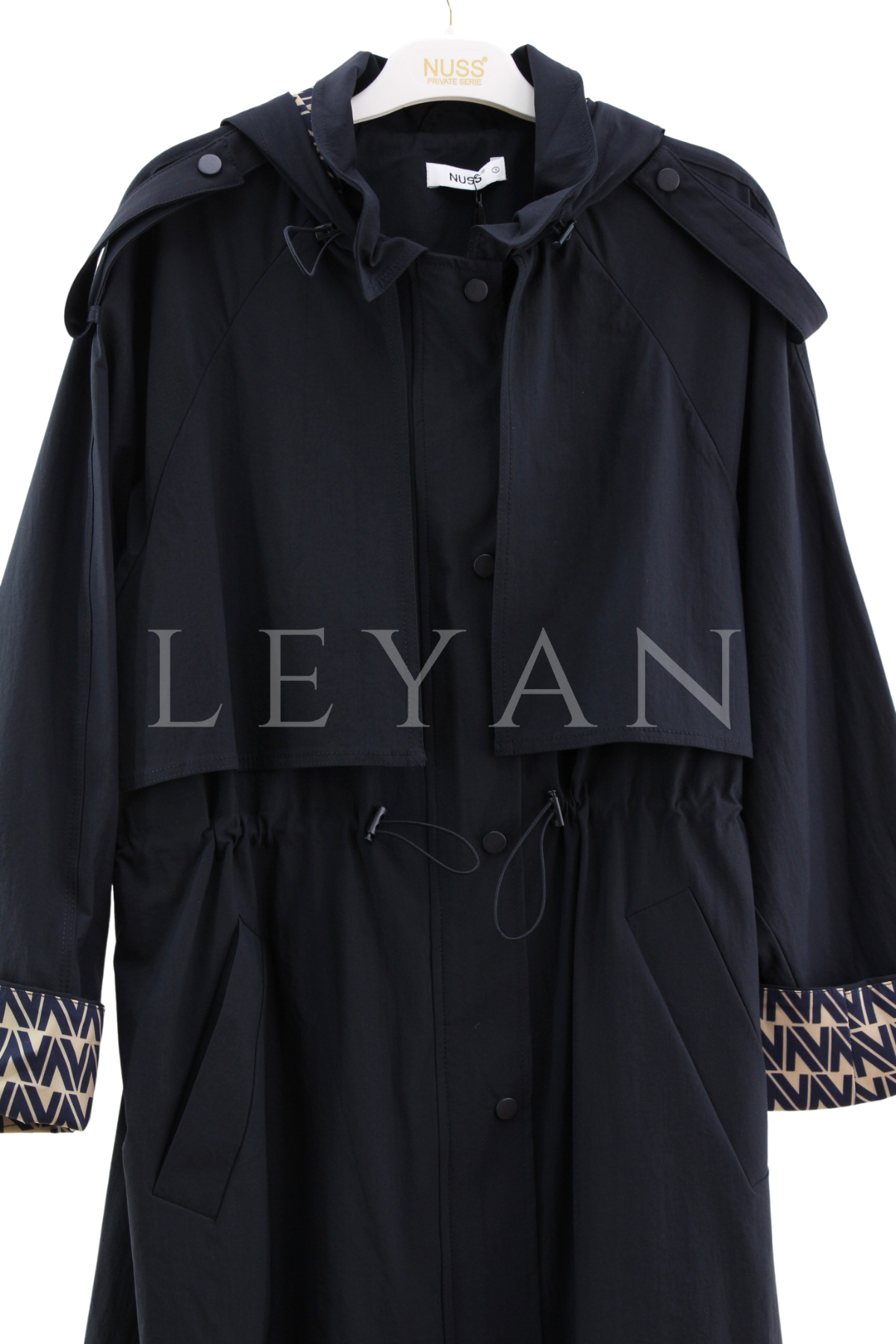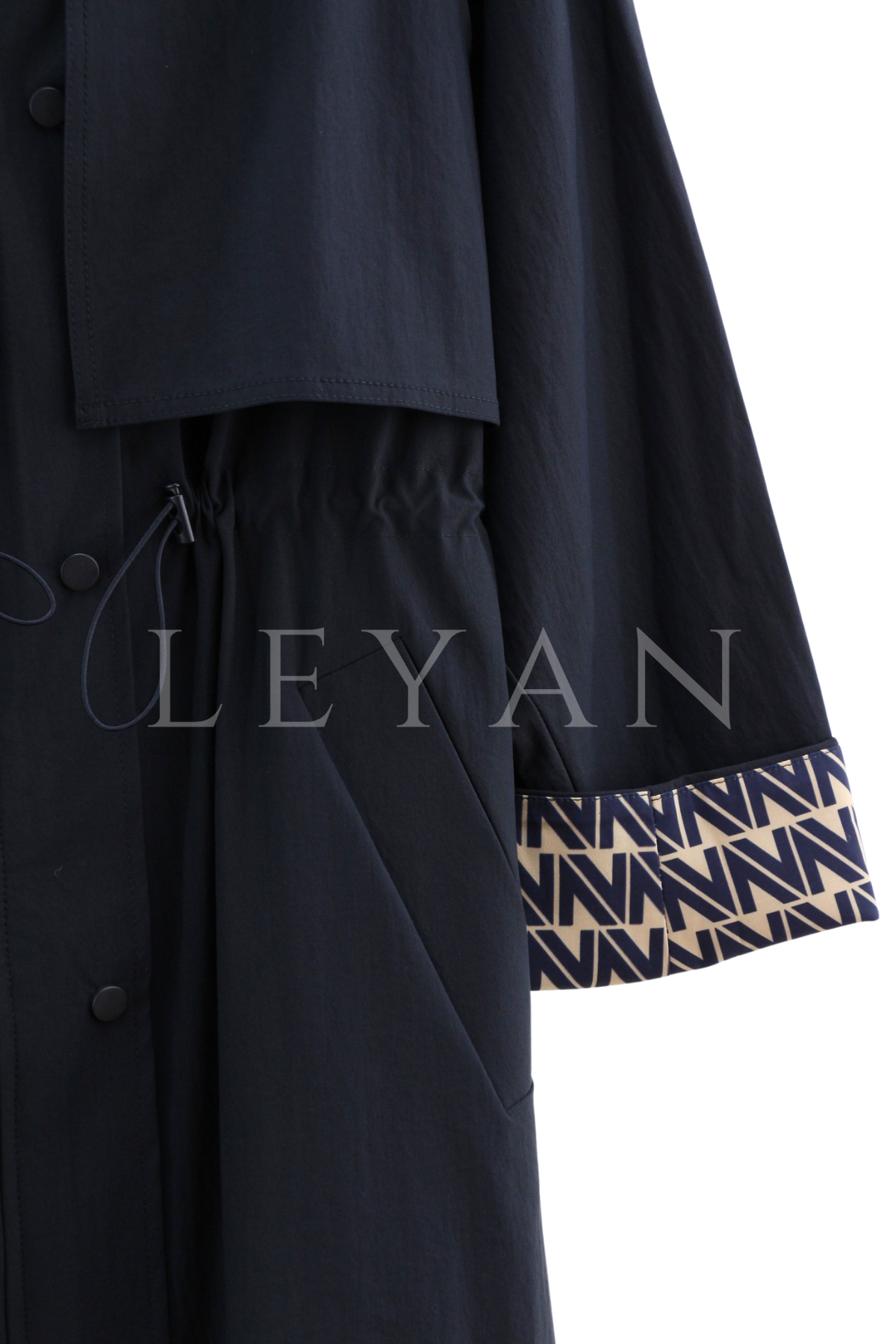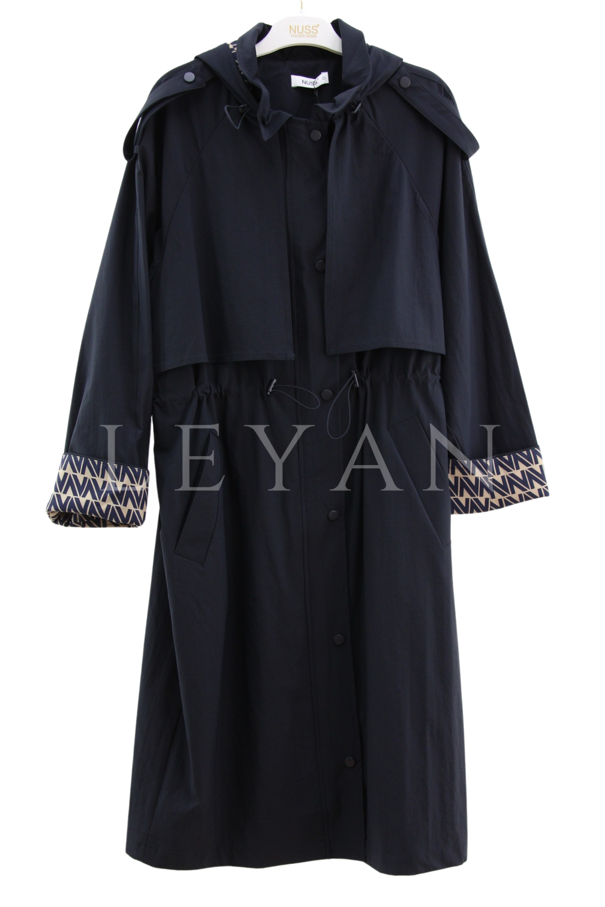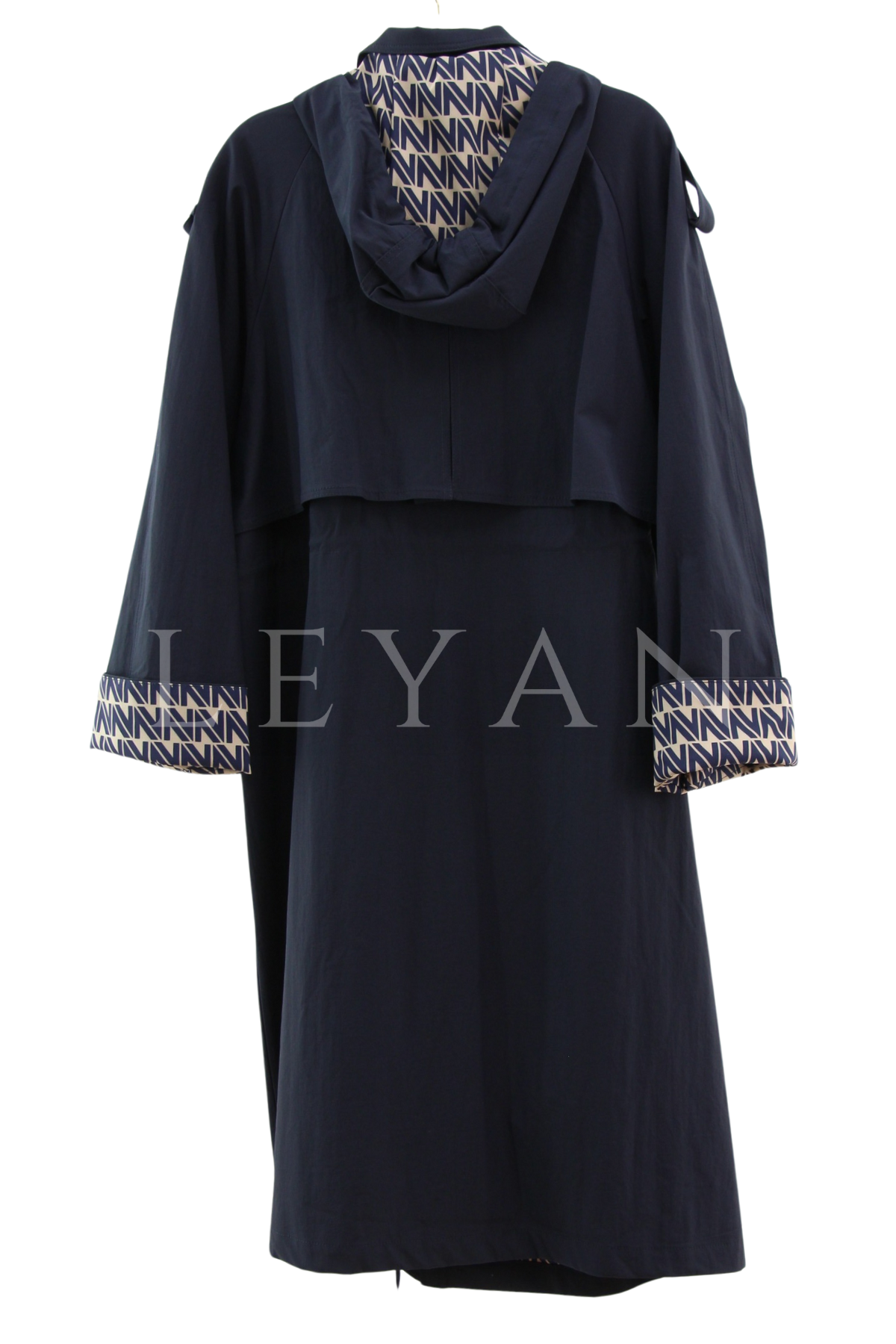 Nuss Astarı Desenli Trençkot- LYN04237 Lacivert