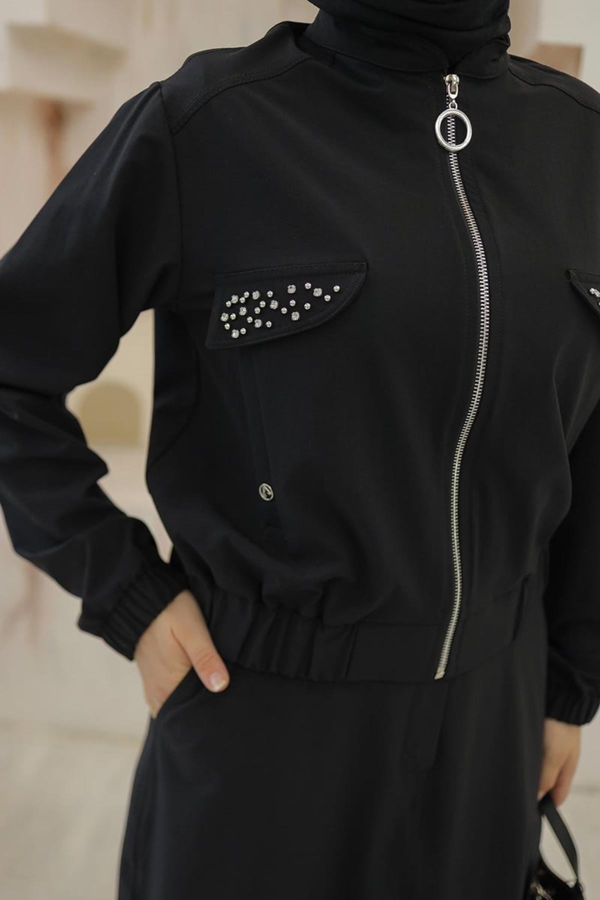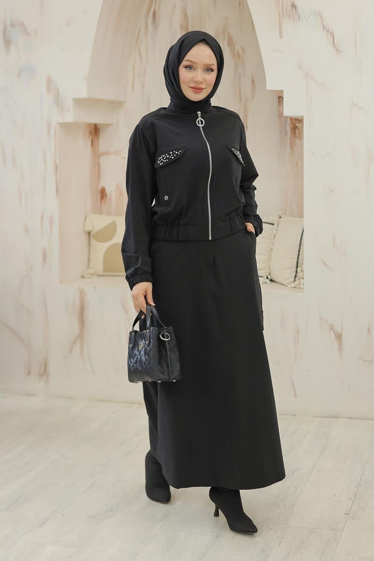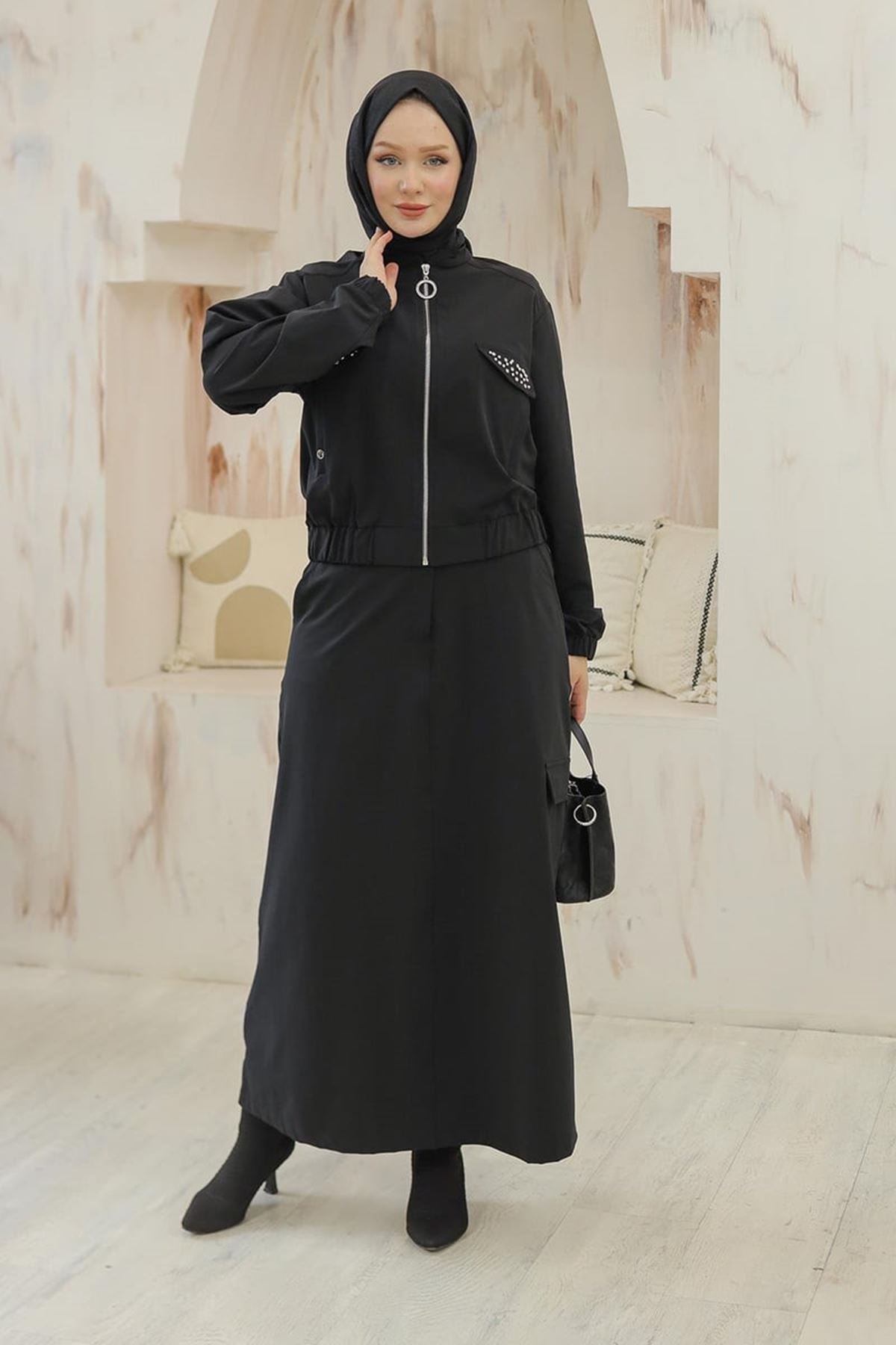 Armine Trend Paraşüt Detaylı Takım- LYN02861 Siyah
