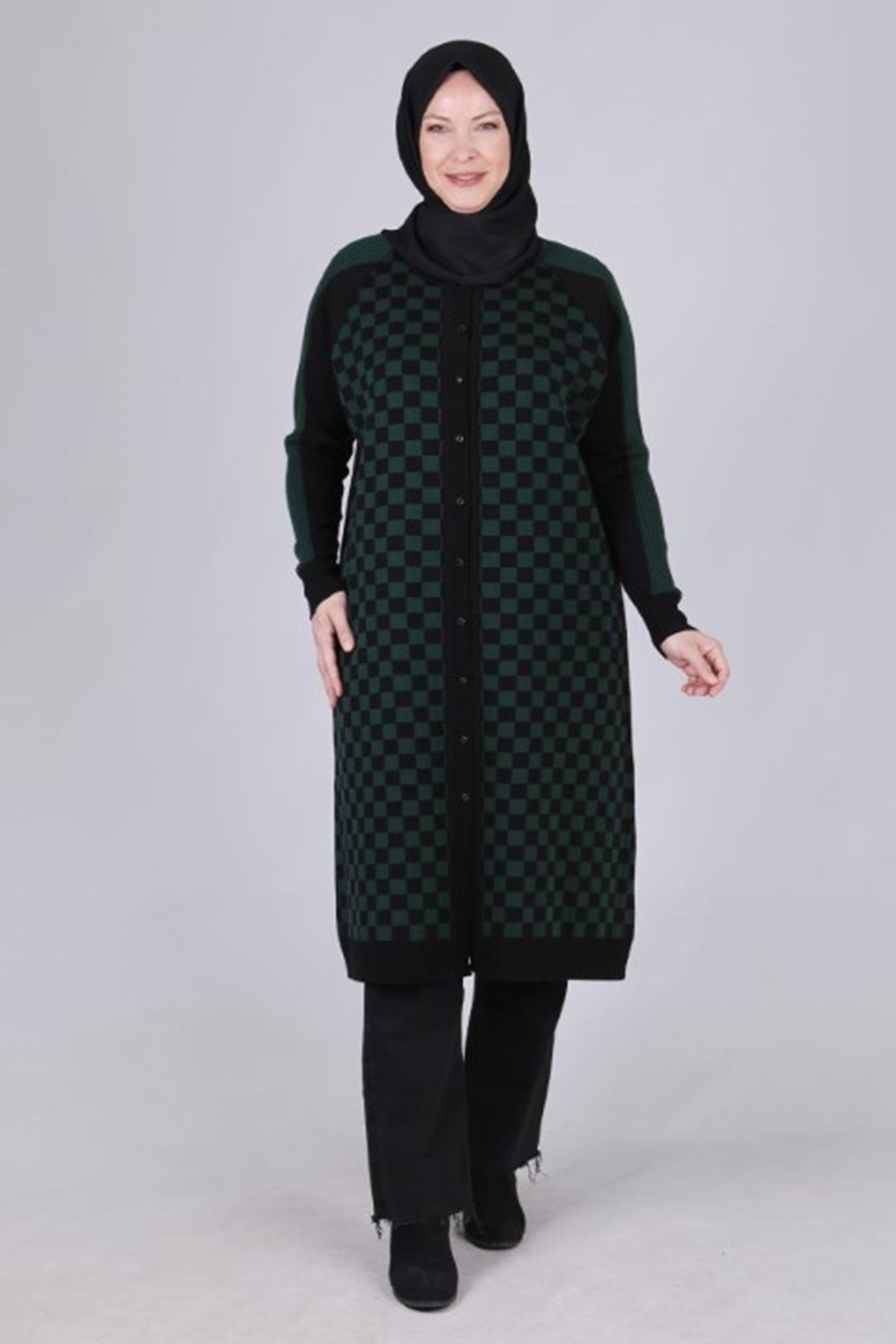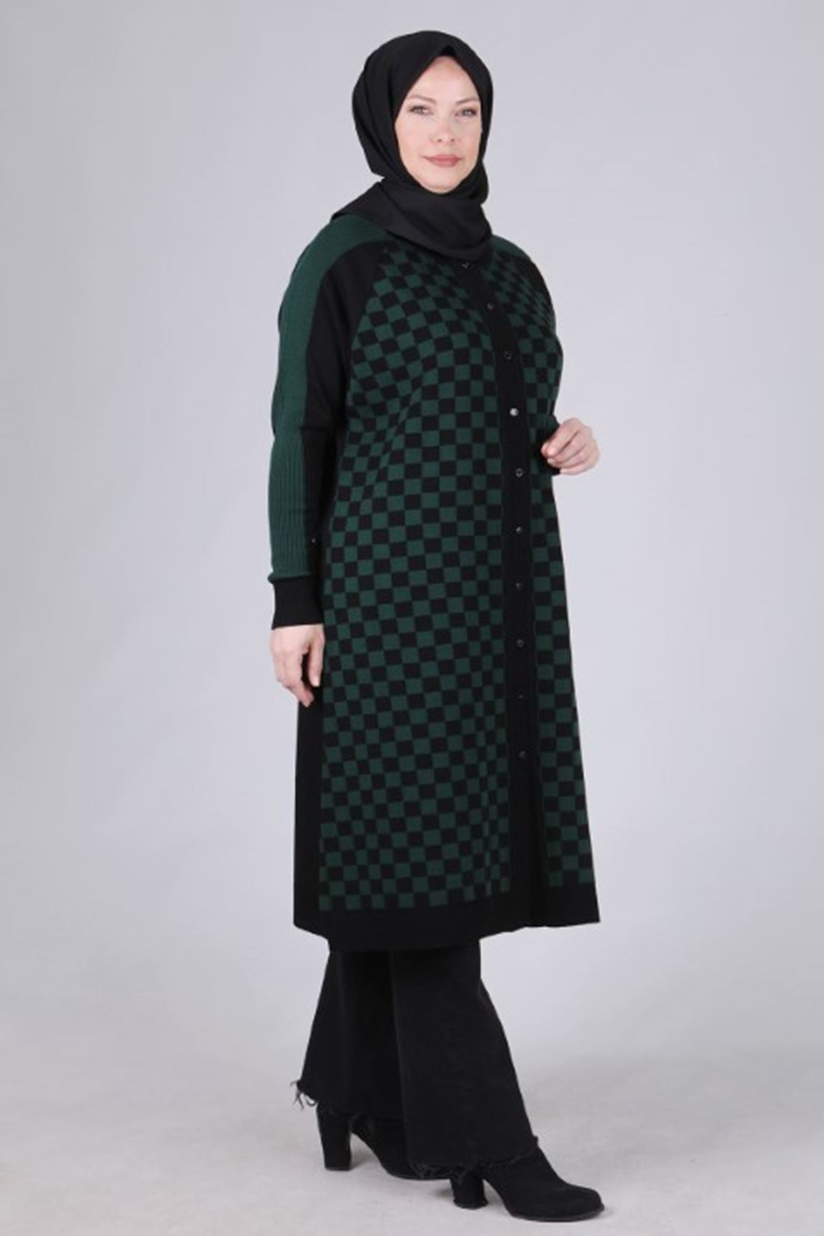 Büyük Beden Tesettür Düğmeli Triko Ceket 9313