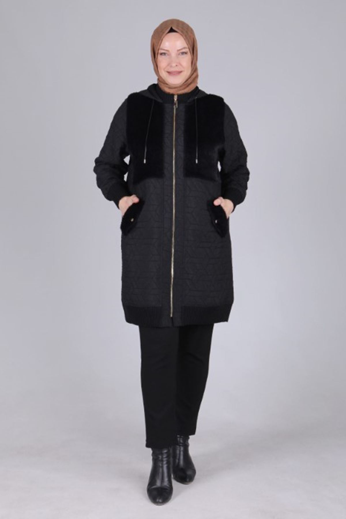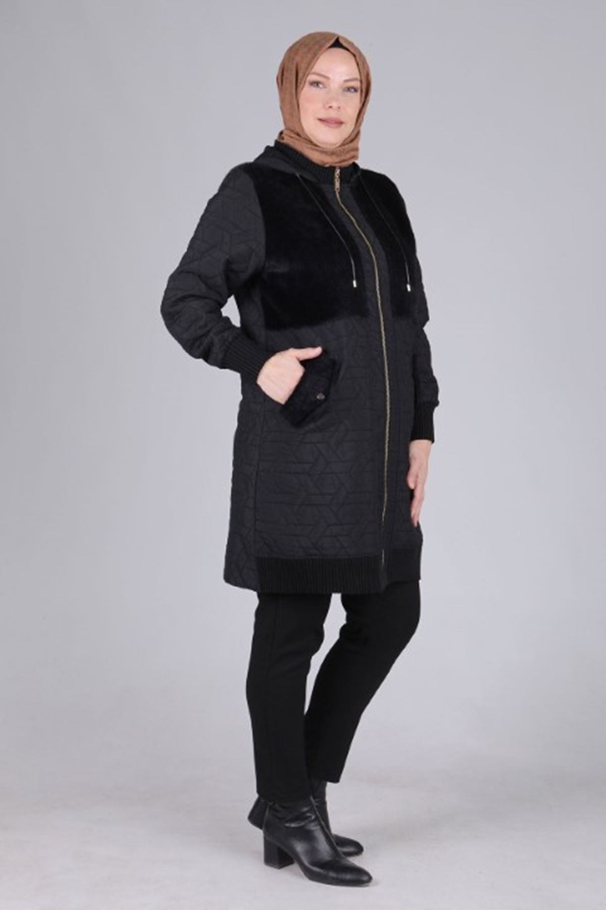 Büyük Beden Tesettür Kürk Detaylı Kap 25103