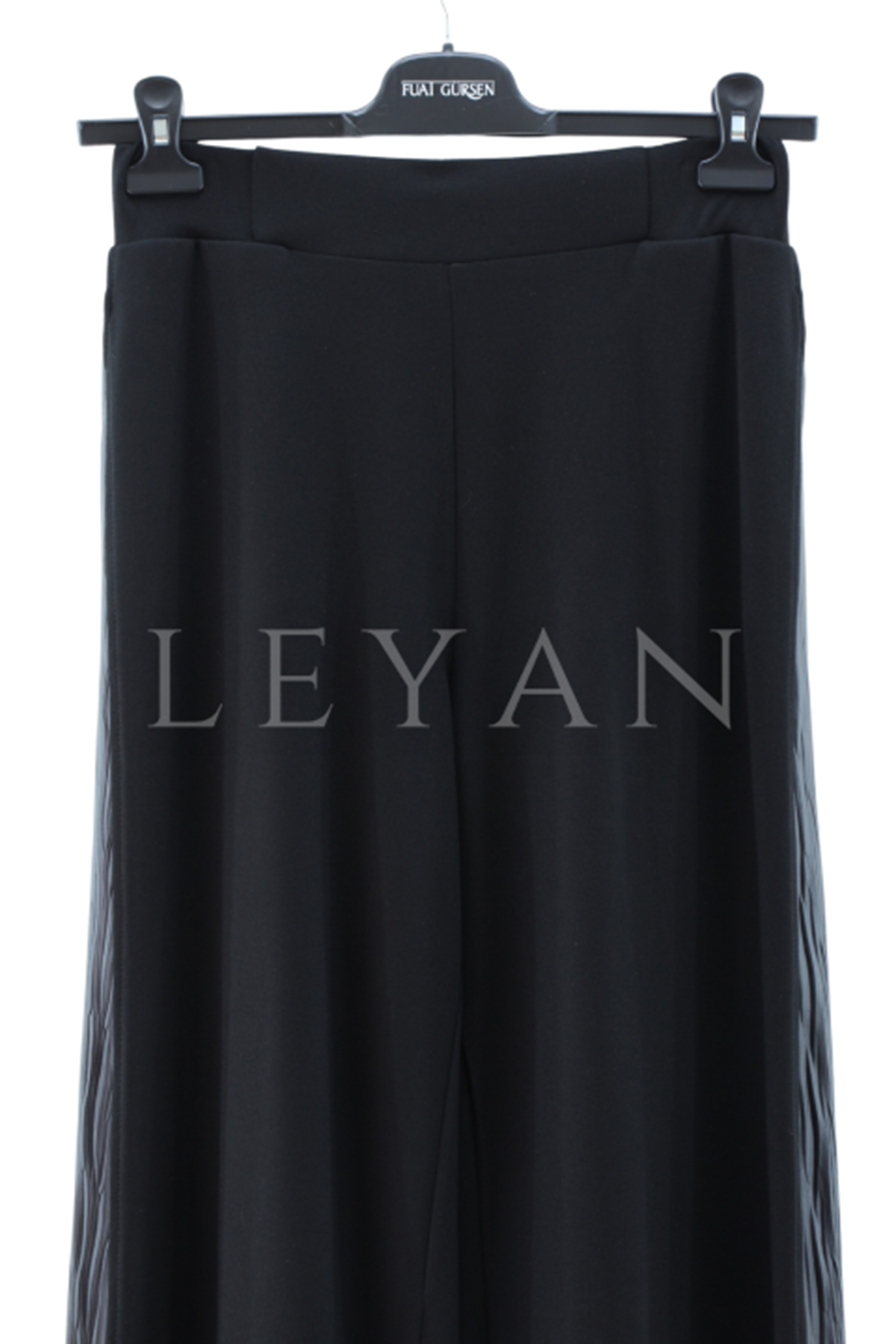 Fuat Gürşen Deri Şerit Detaylı Pantolon- LYN04032 Siyah