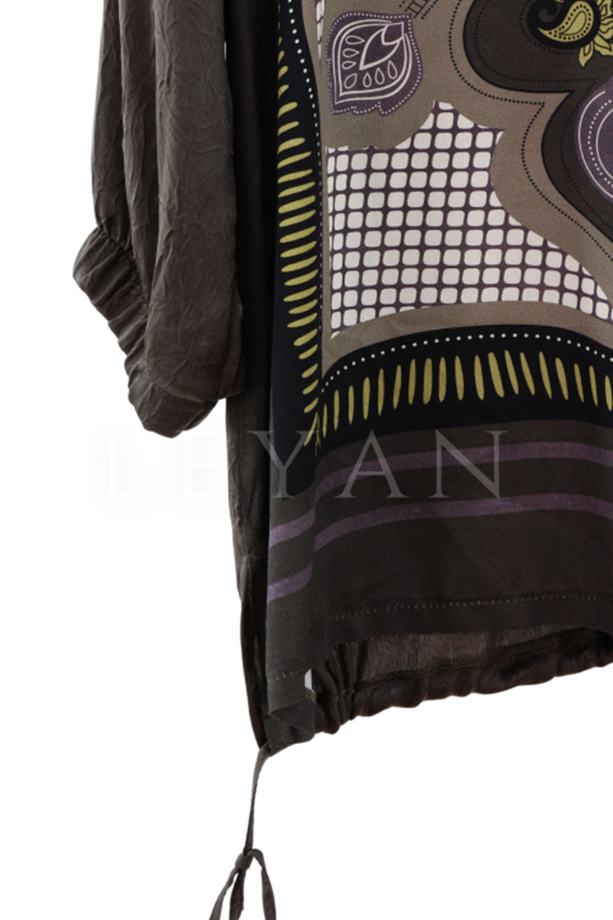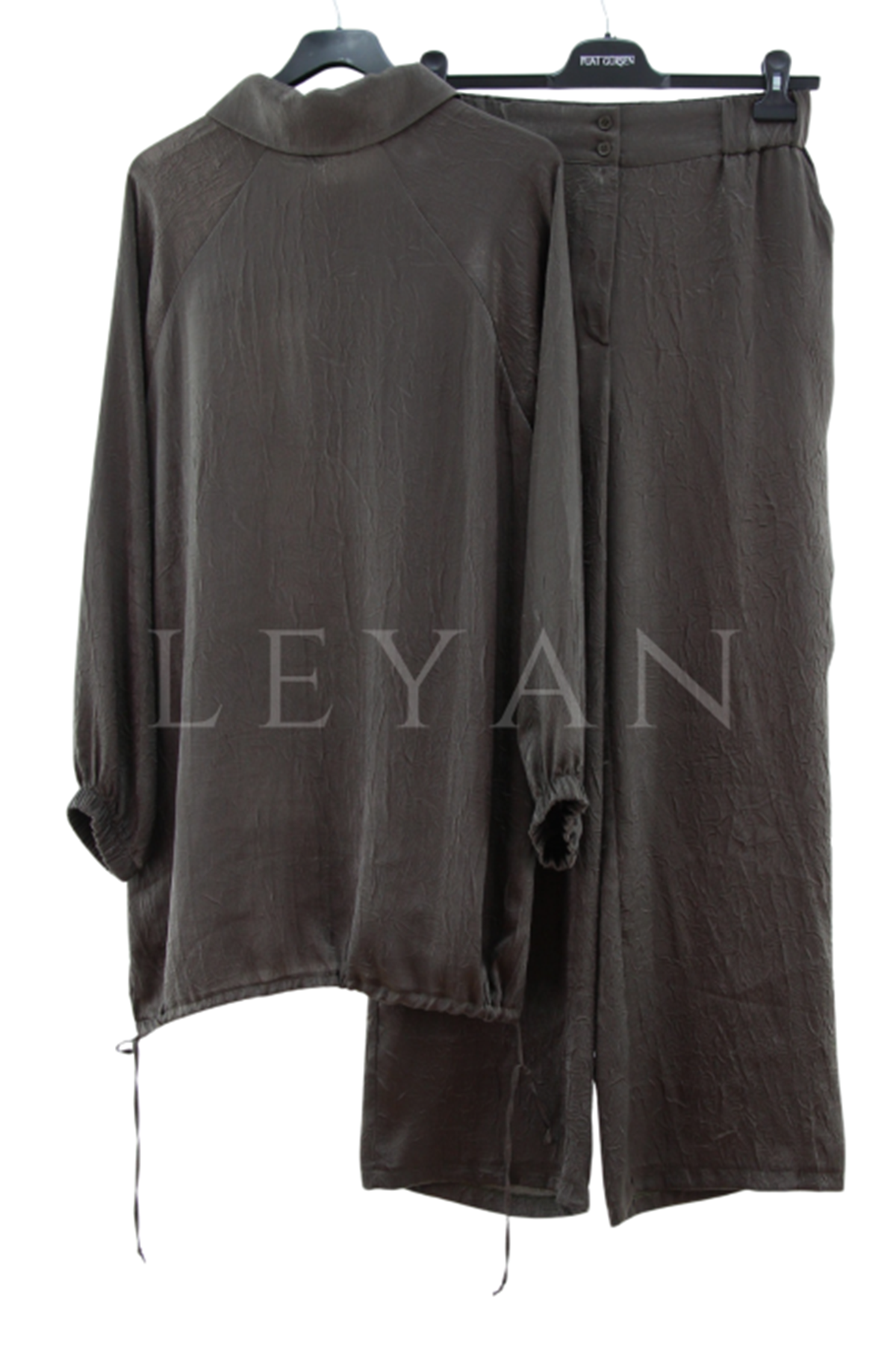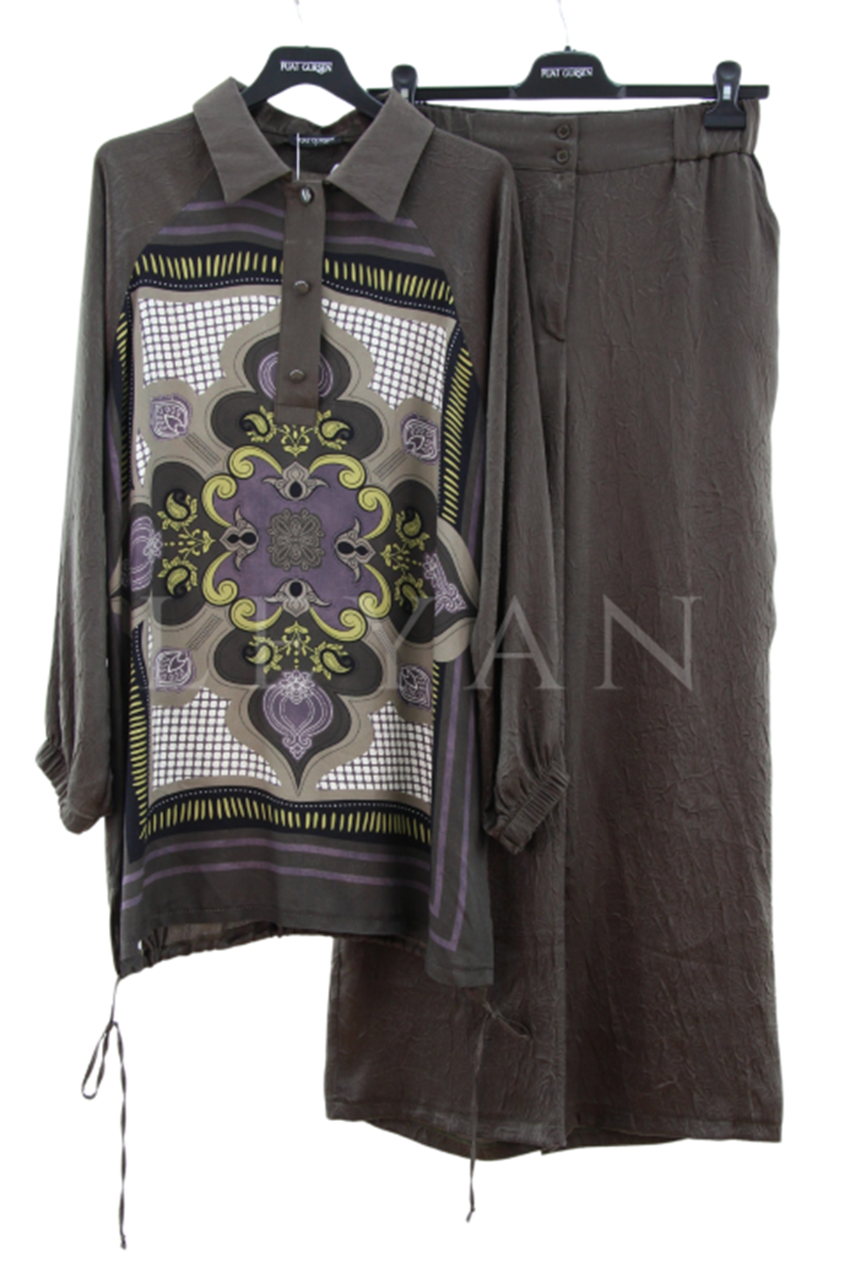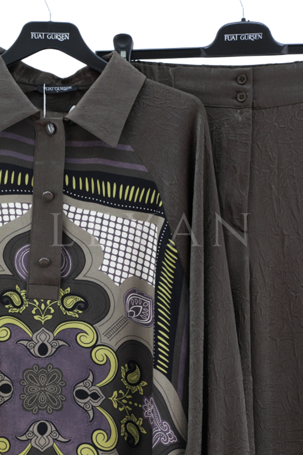 Fuat Gürşen Desenli Saten Takım- LYN04282 Haki