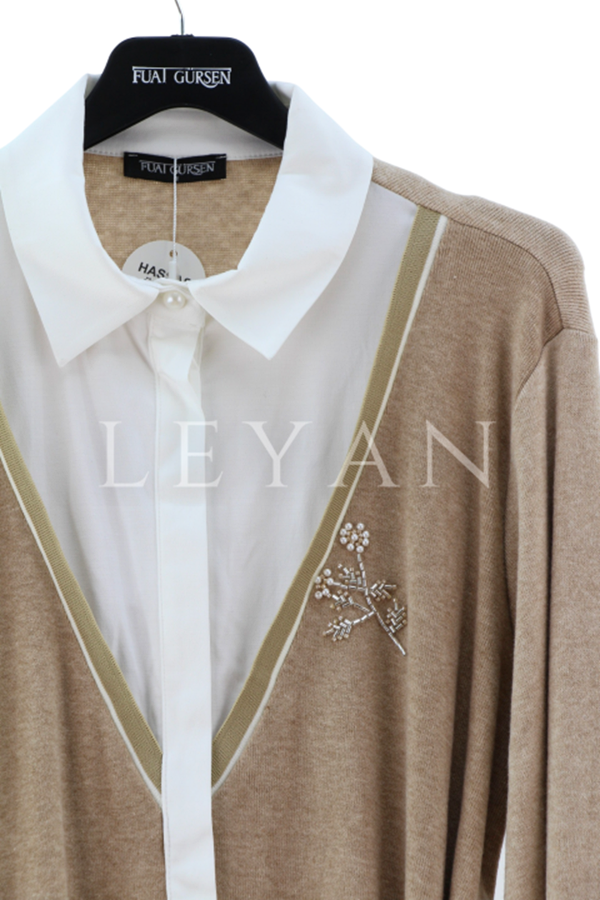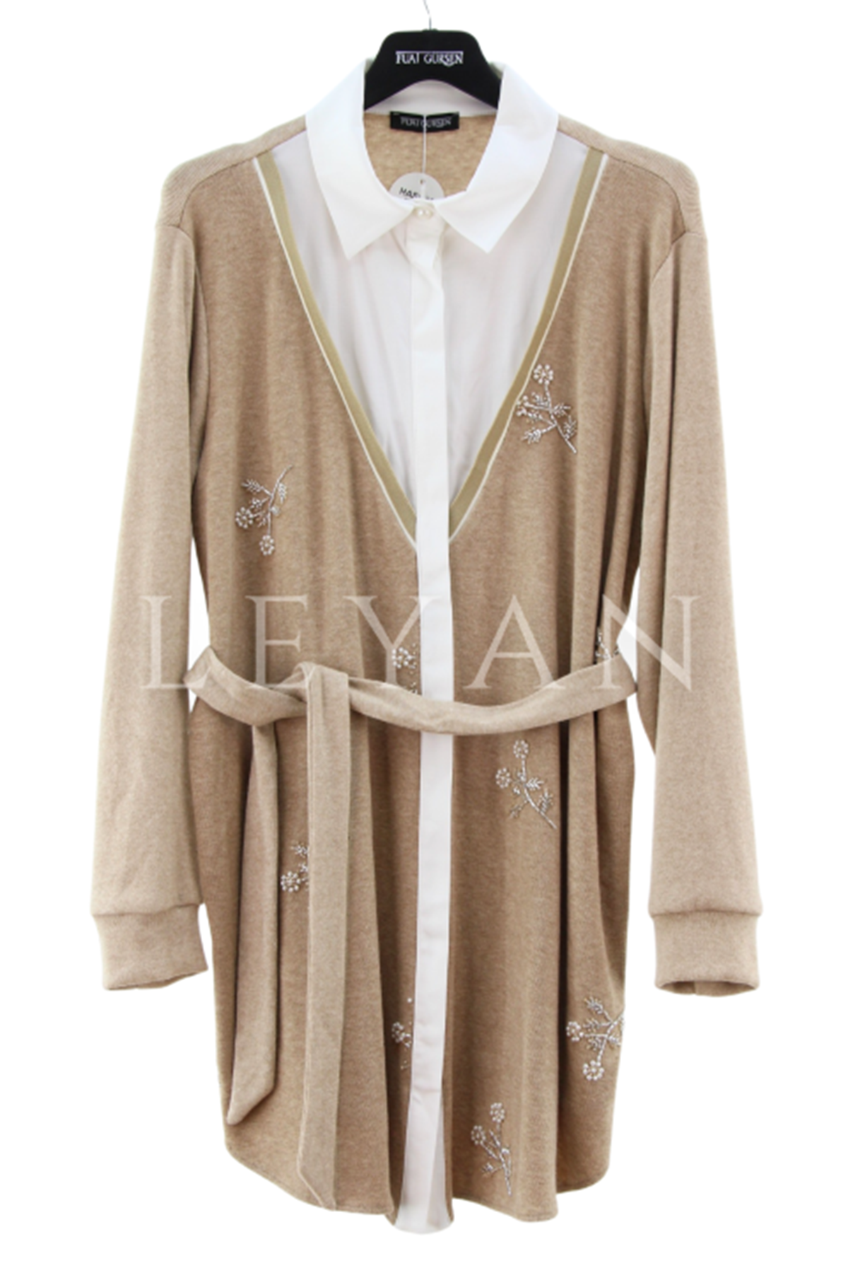 Fuat Gürşen İşlemeli Gömlek Tunik- LYN04215 Bej
