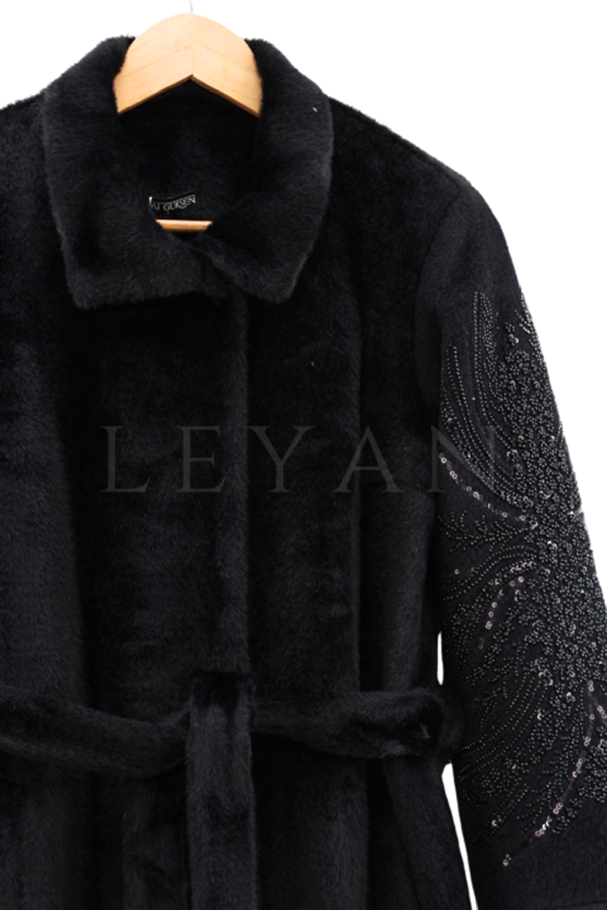 Fuat Gürşen Kolu İşlemeli Angora Kaban-LYN03266 Siyah
