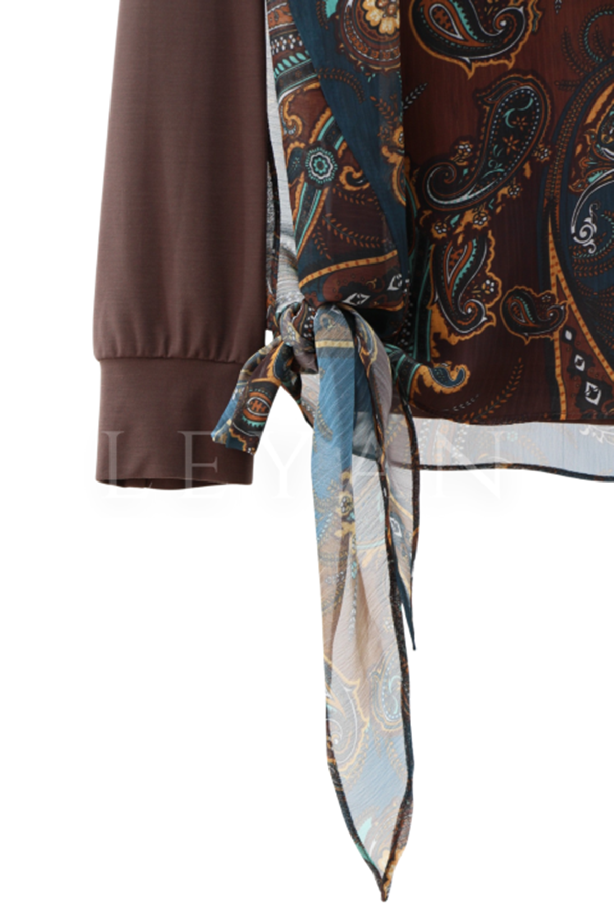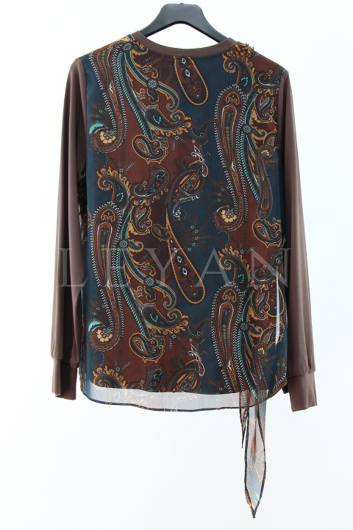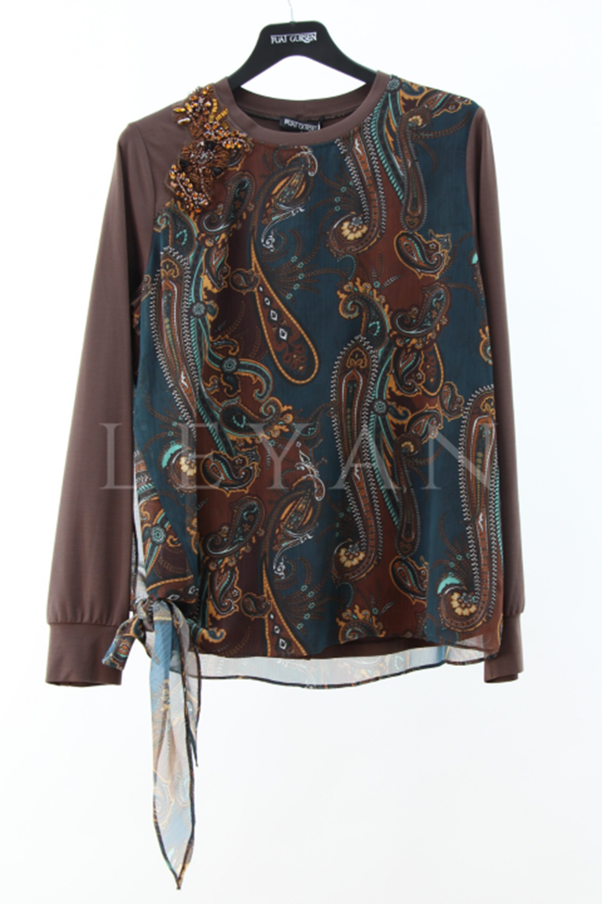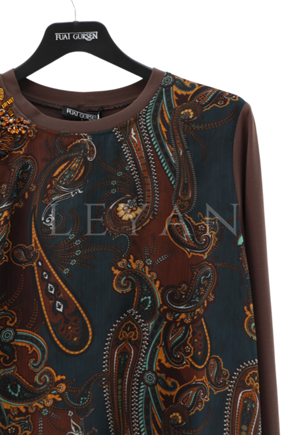 Fuat Gürşen Şal Desen İşlemeli Bluz- LYN03952 Kahve