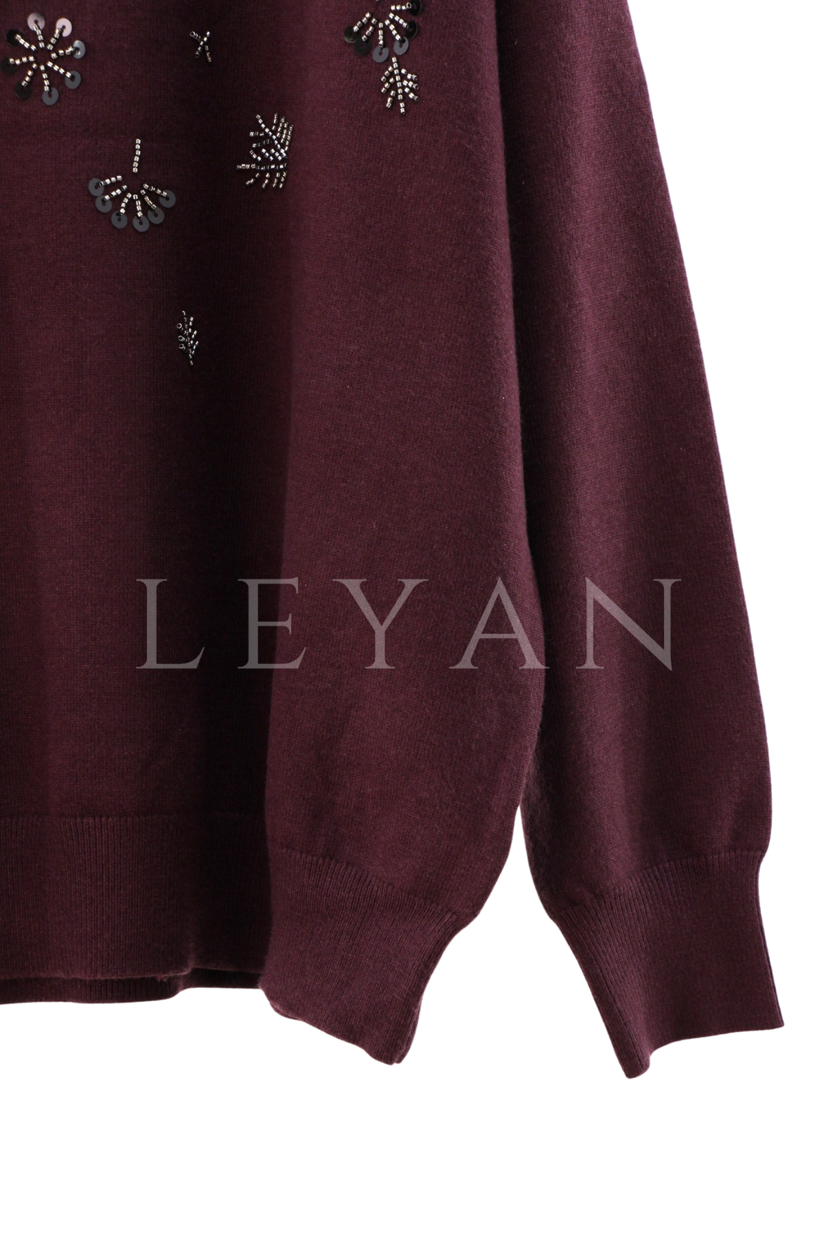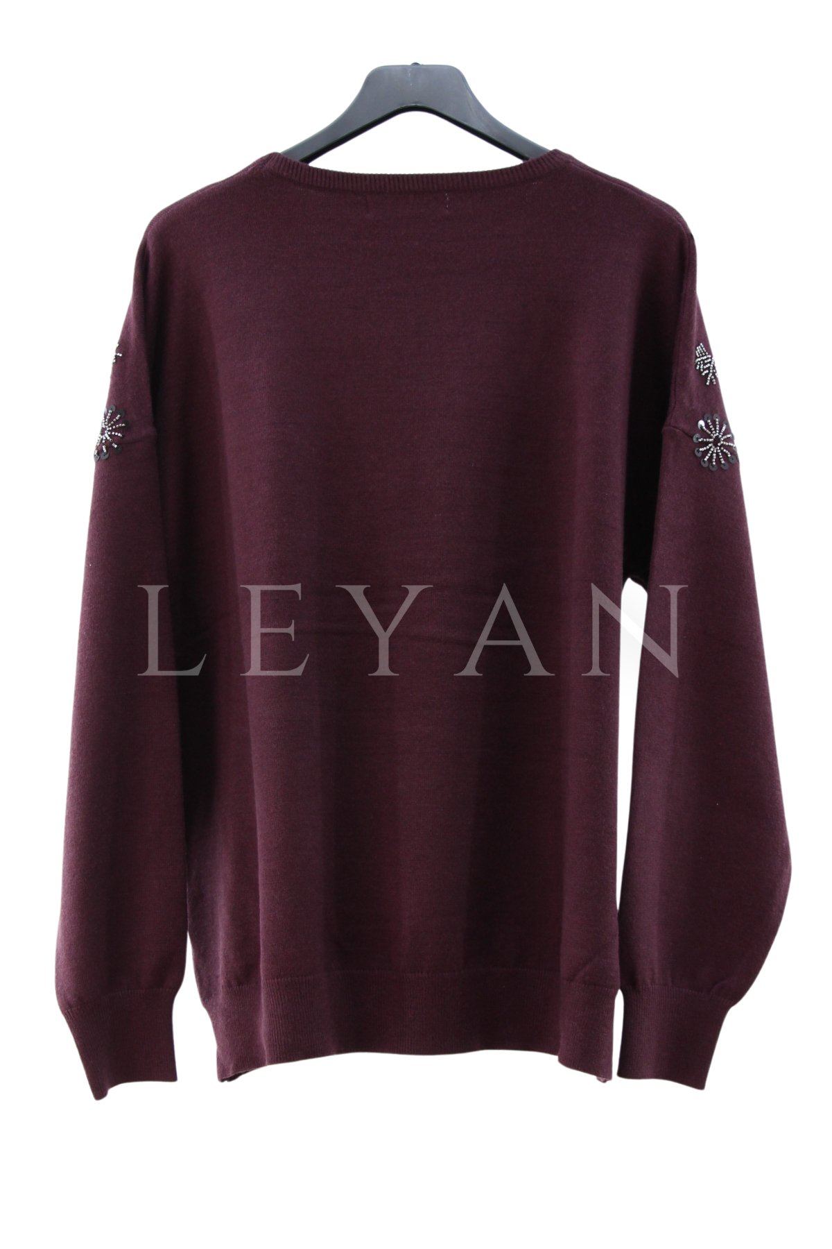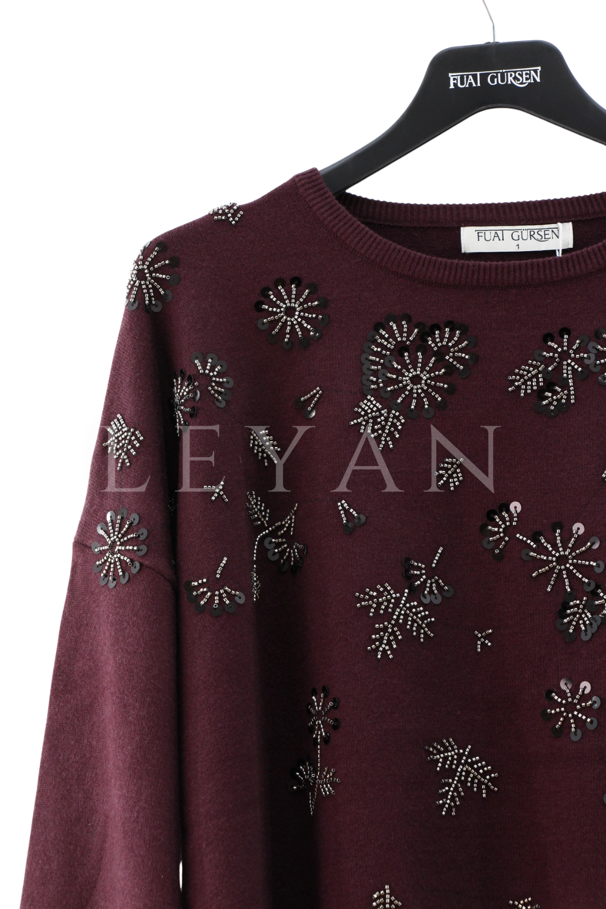 Fuat Gürşen Taş İşlemeli Bluz- LYN04343 Bordo