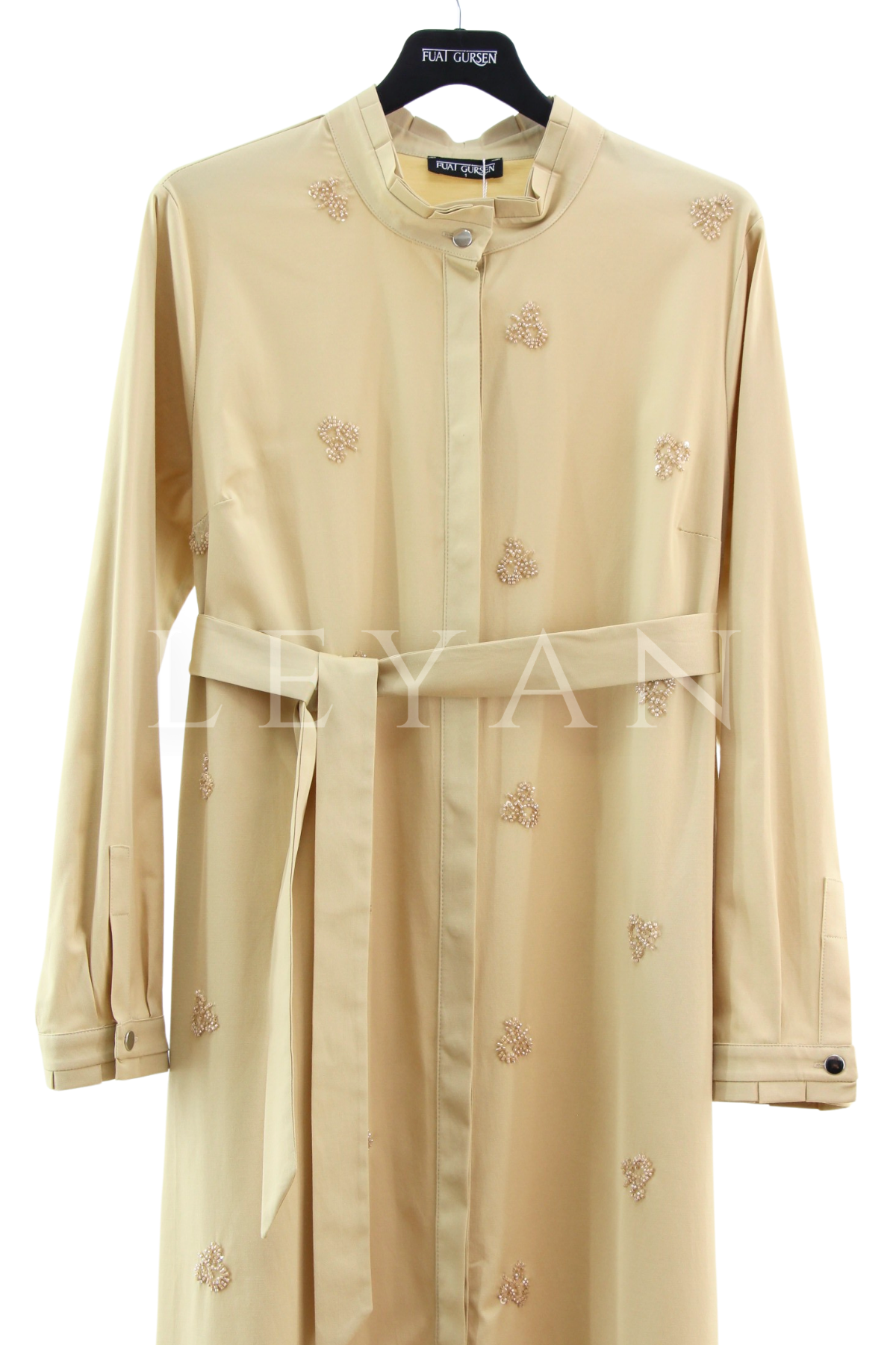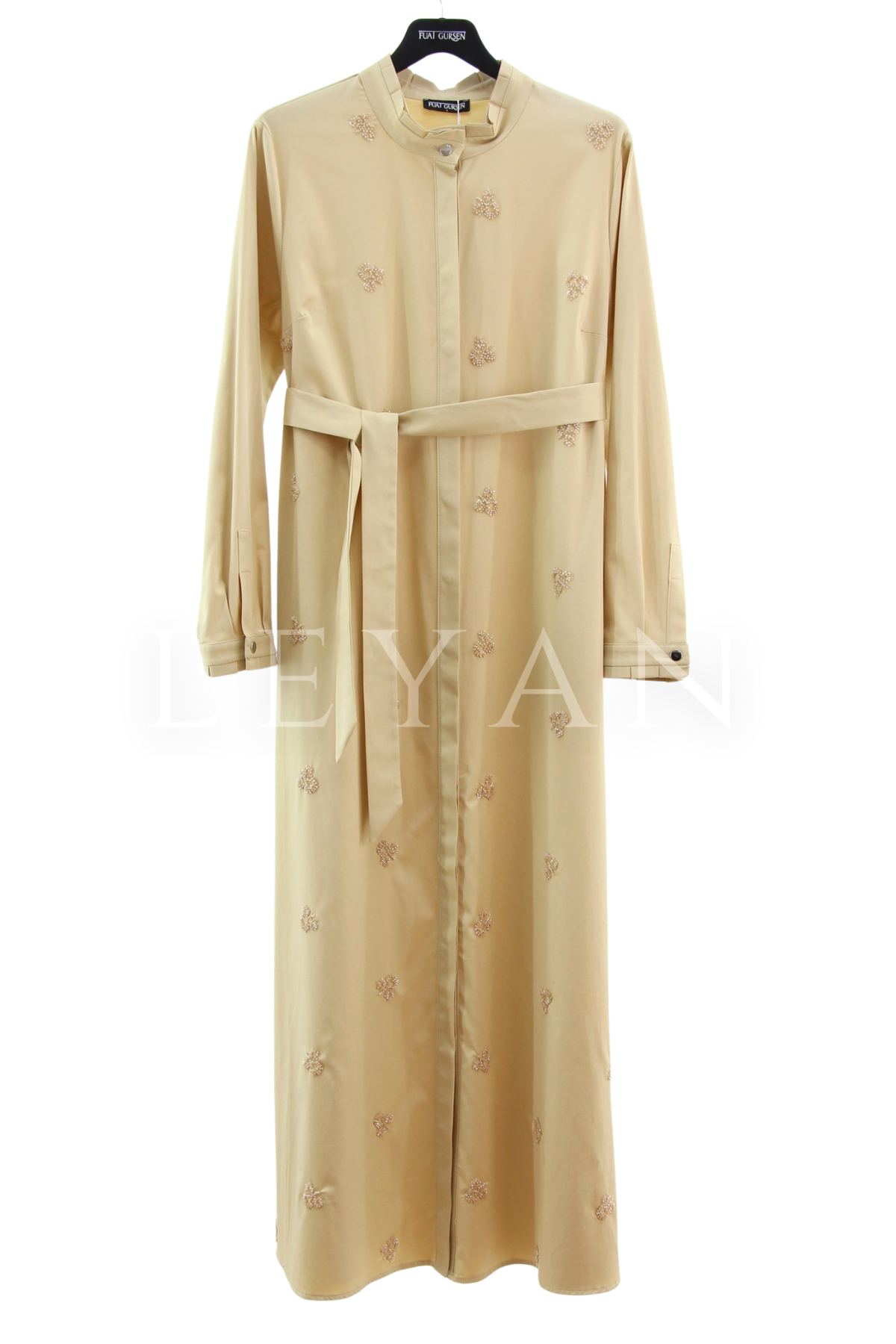 Fuat Gürşen Taş İşlemeli Elbise- LYN04322 Bej