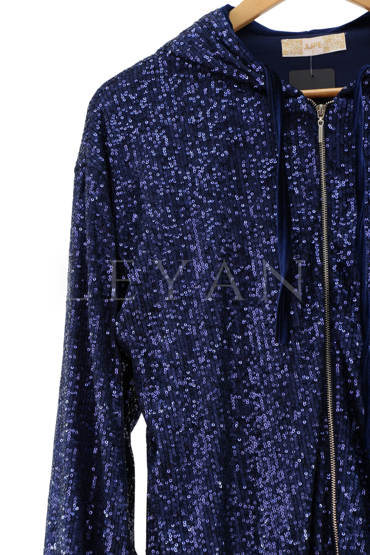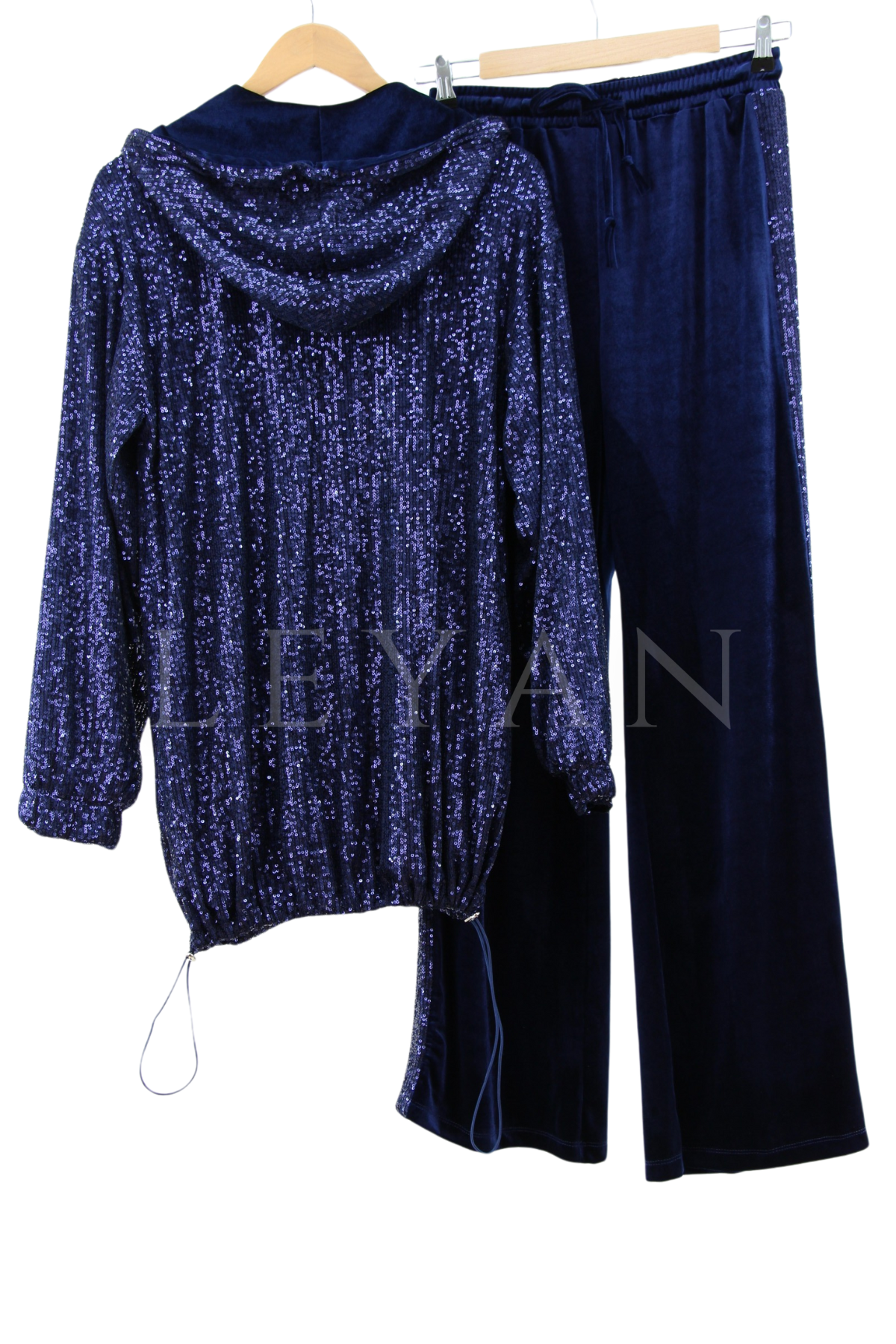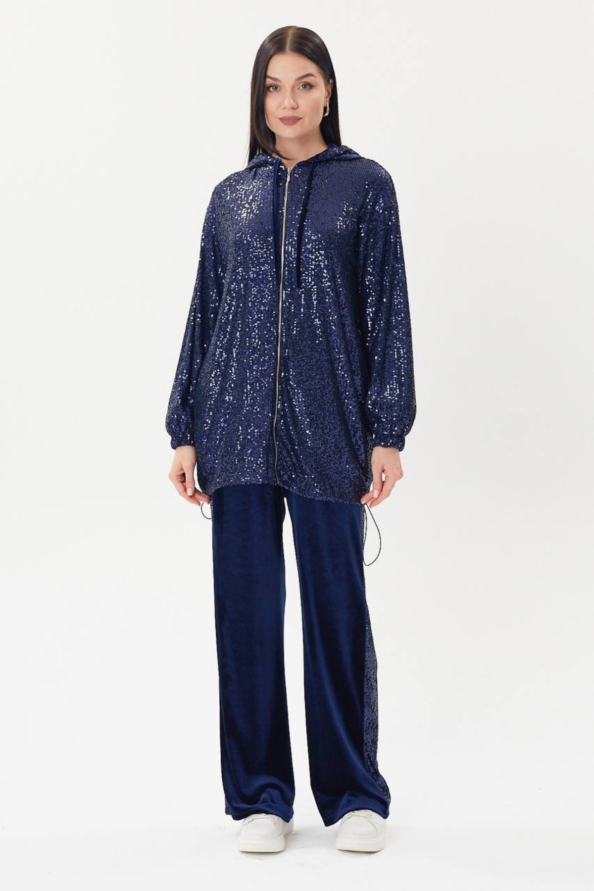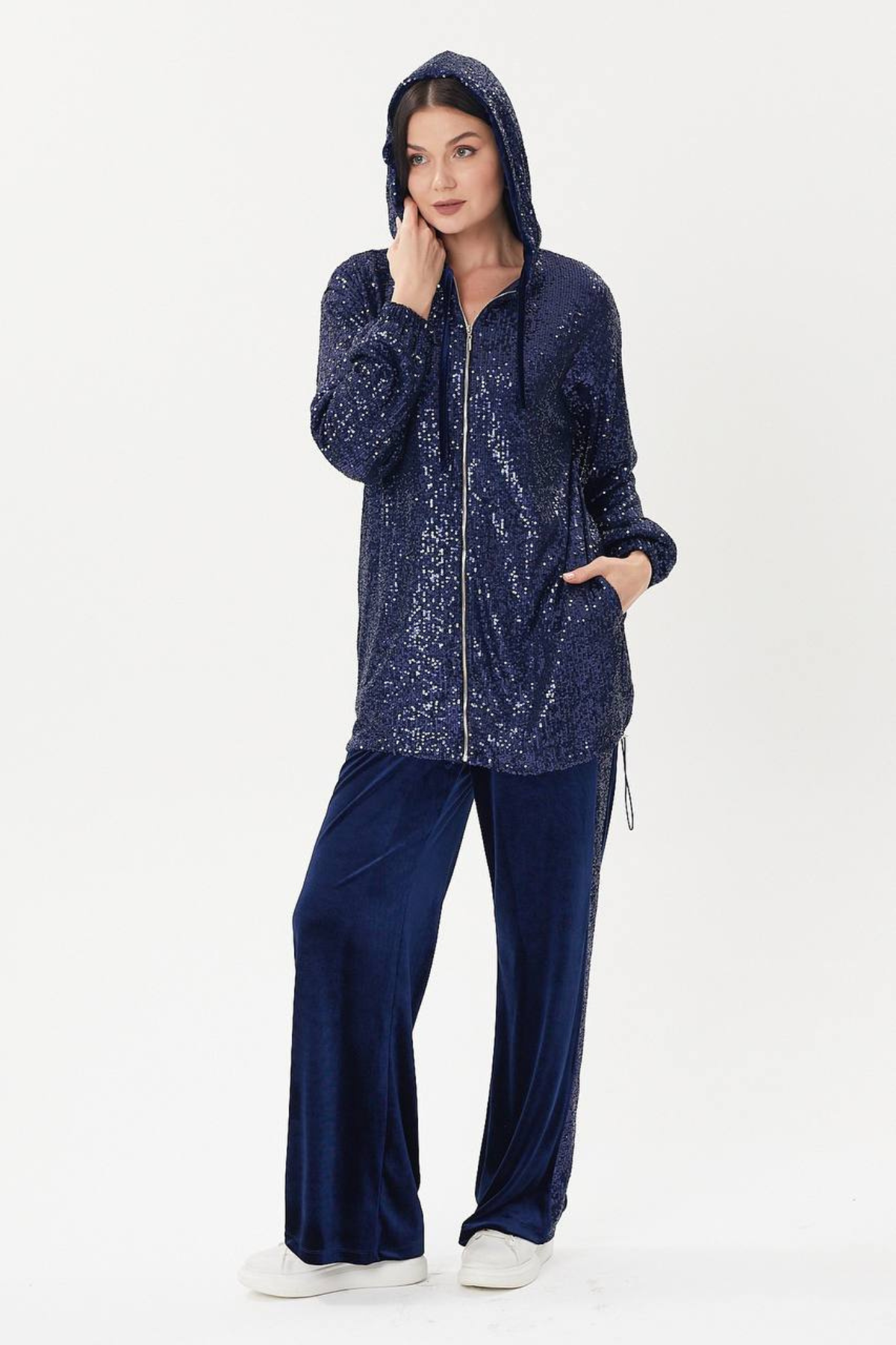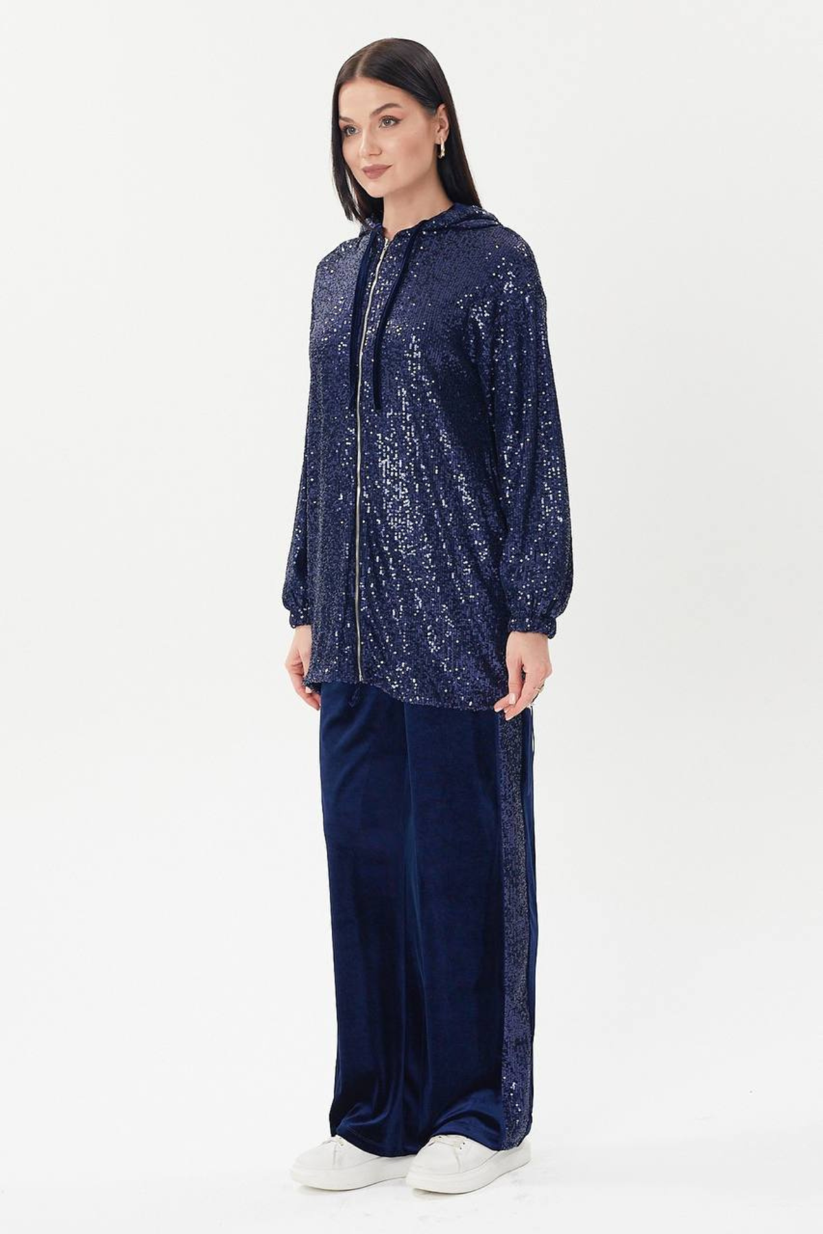 Jupe Payet Ceketli Kadife Takım- LYN02775 Lacivert