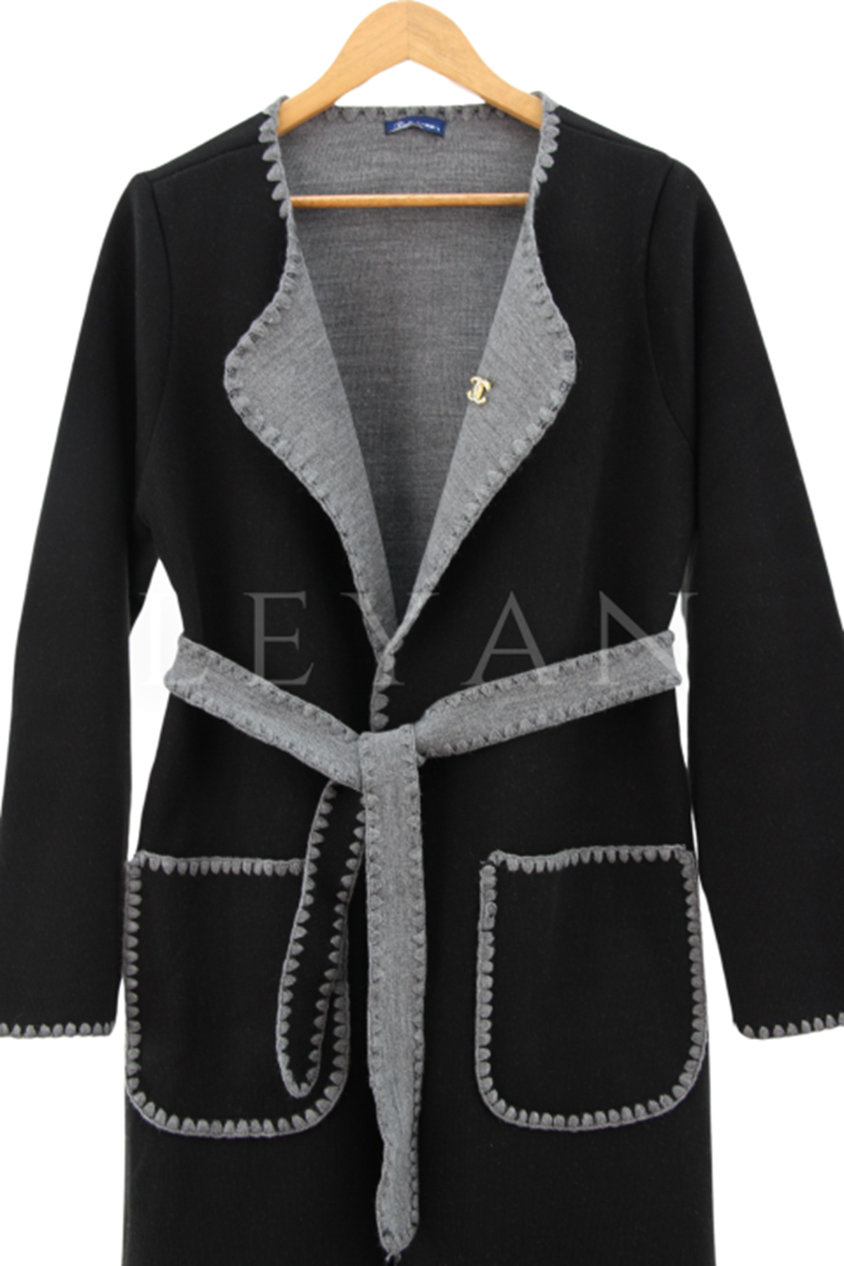 Kemerli Triko Ceket- LYN03283 Gri