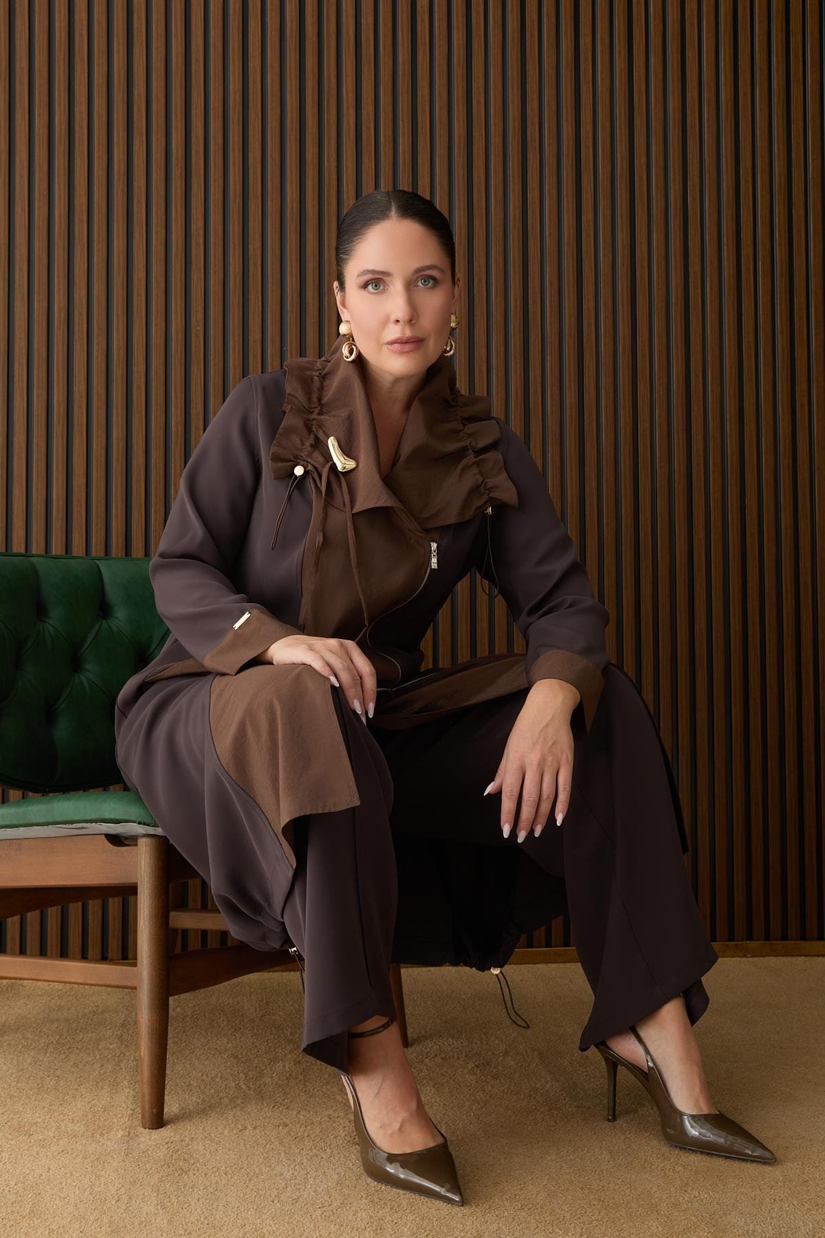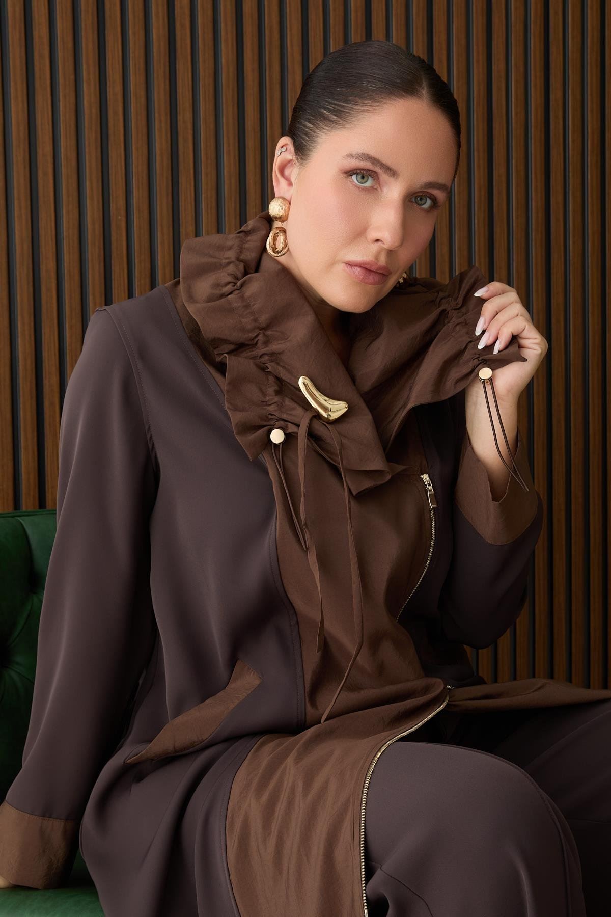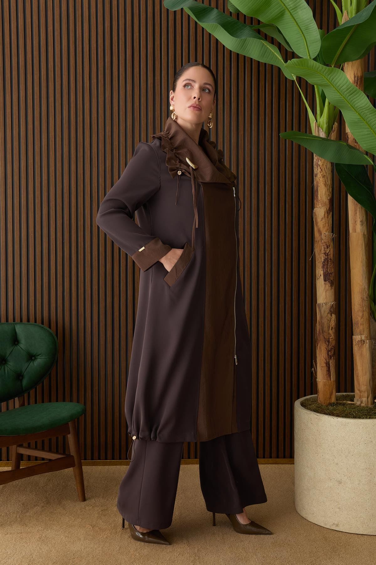 Yakası Tünel Detaylı Metal Aksesuarlı, Fleto Cepli, Ön Beden Kapaması Fermuarlı Kap