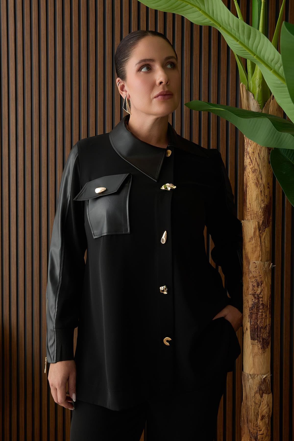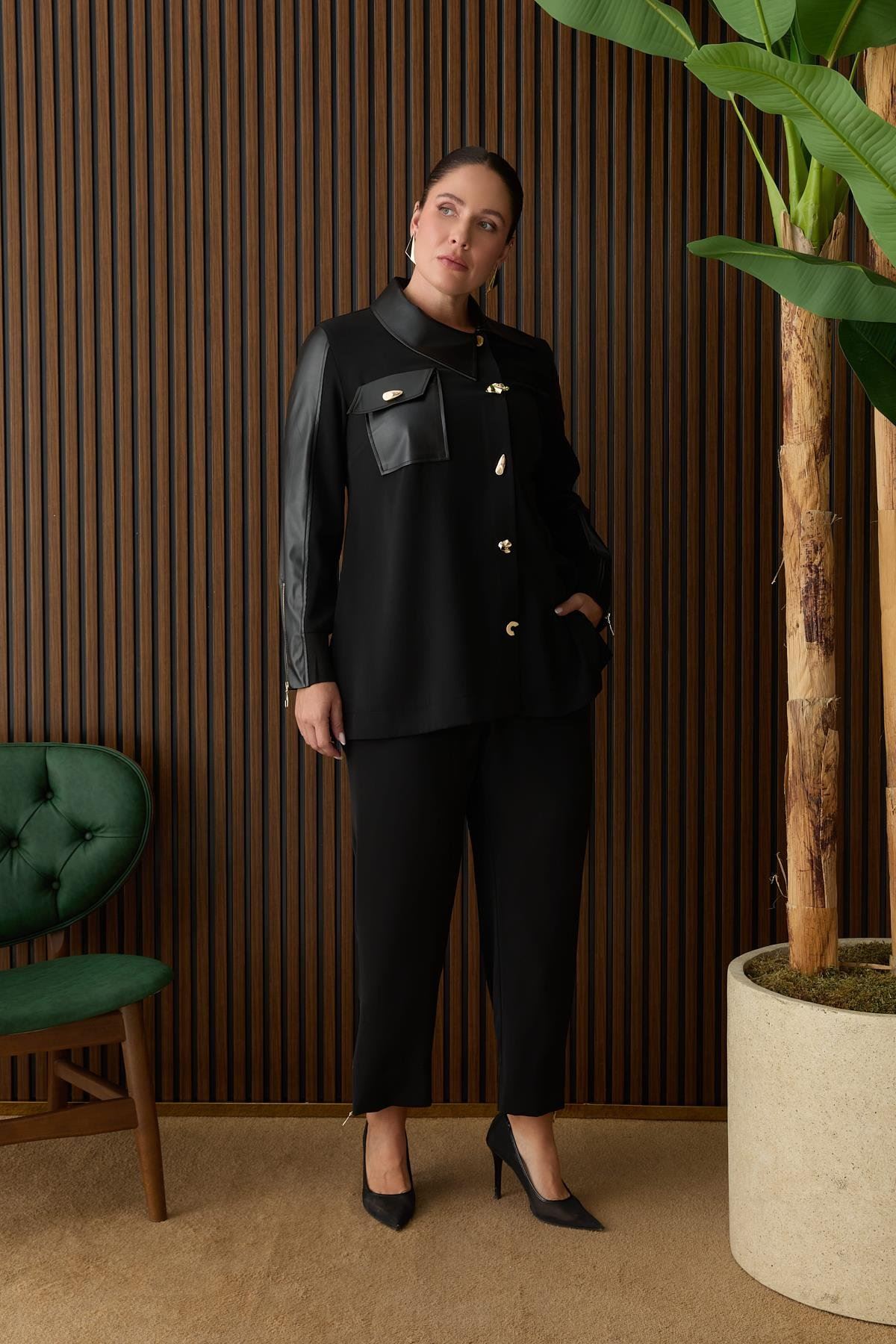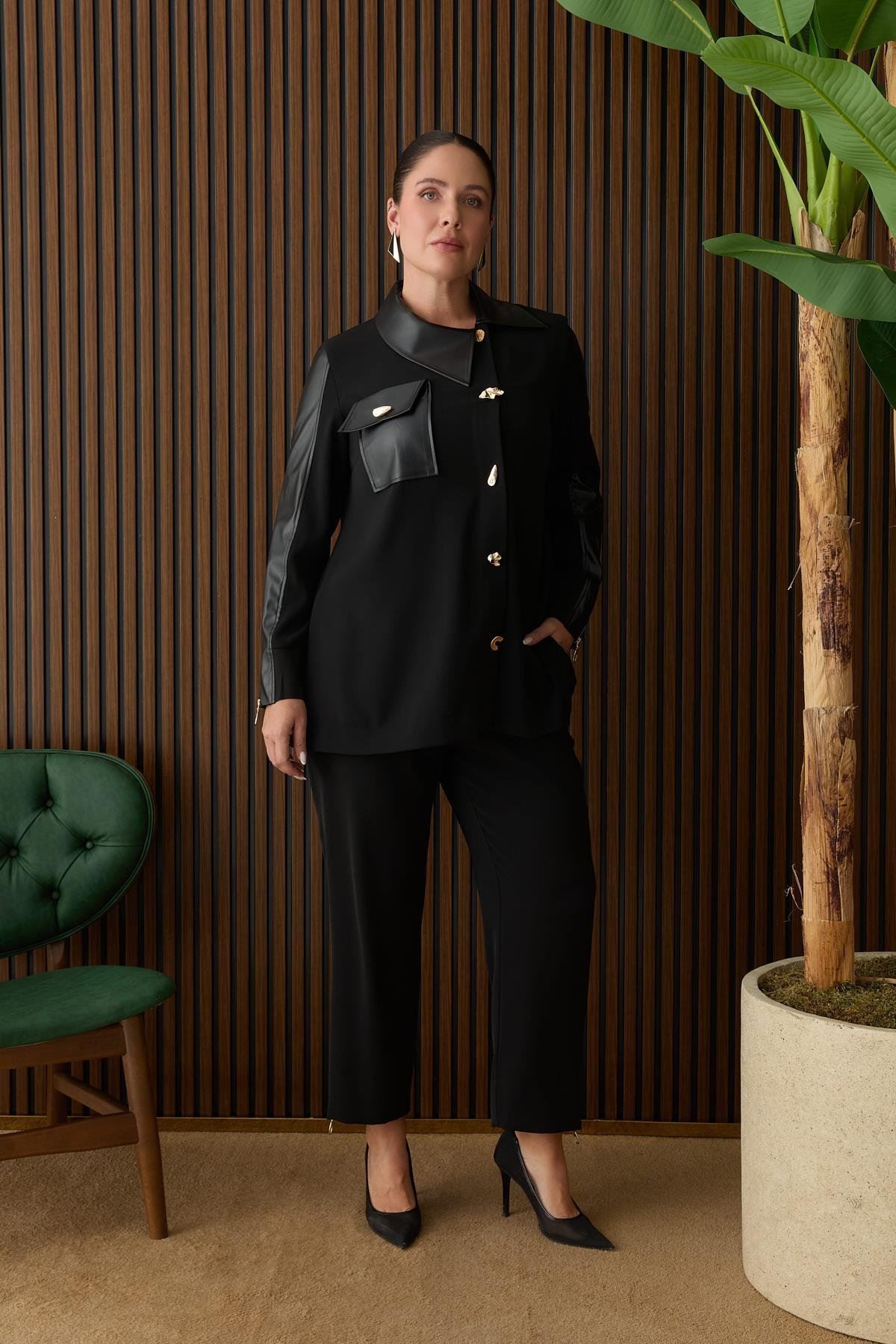 Ön Bedeni Düğme Kapamalı Kolları Fermuarlı, Deri Garnili Beli Lastikli Pantolonlu Takım