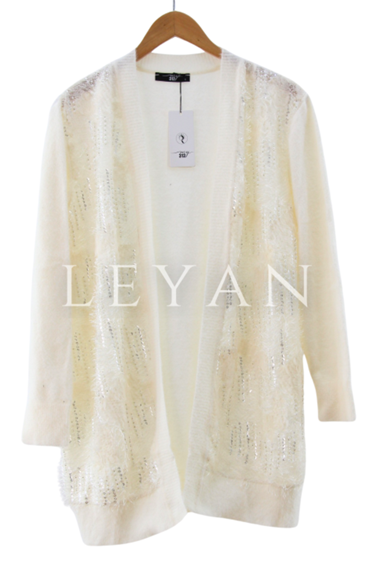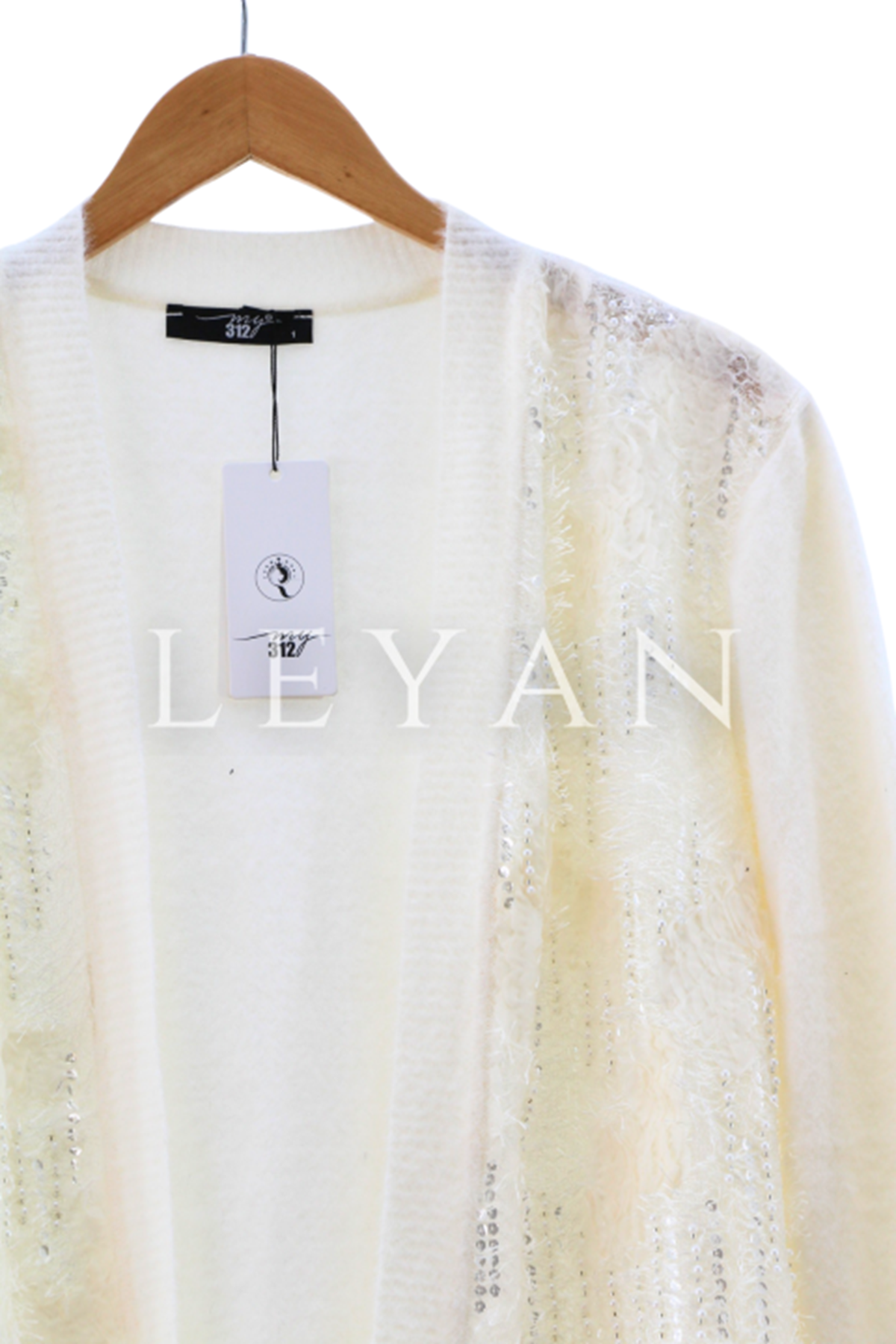 My312 Önü Taşlı Triko Hırka- LYN04316 Ekru