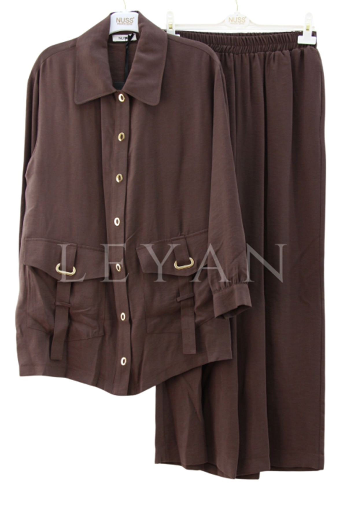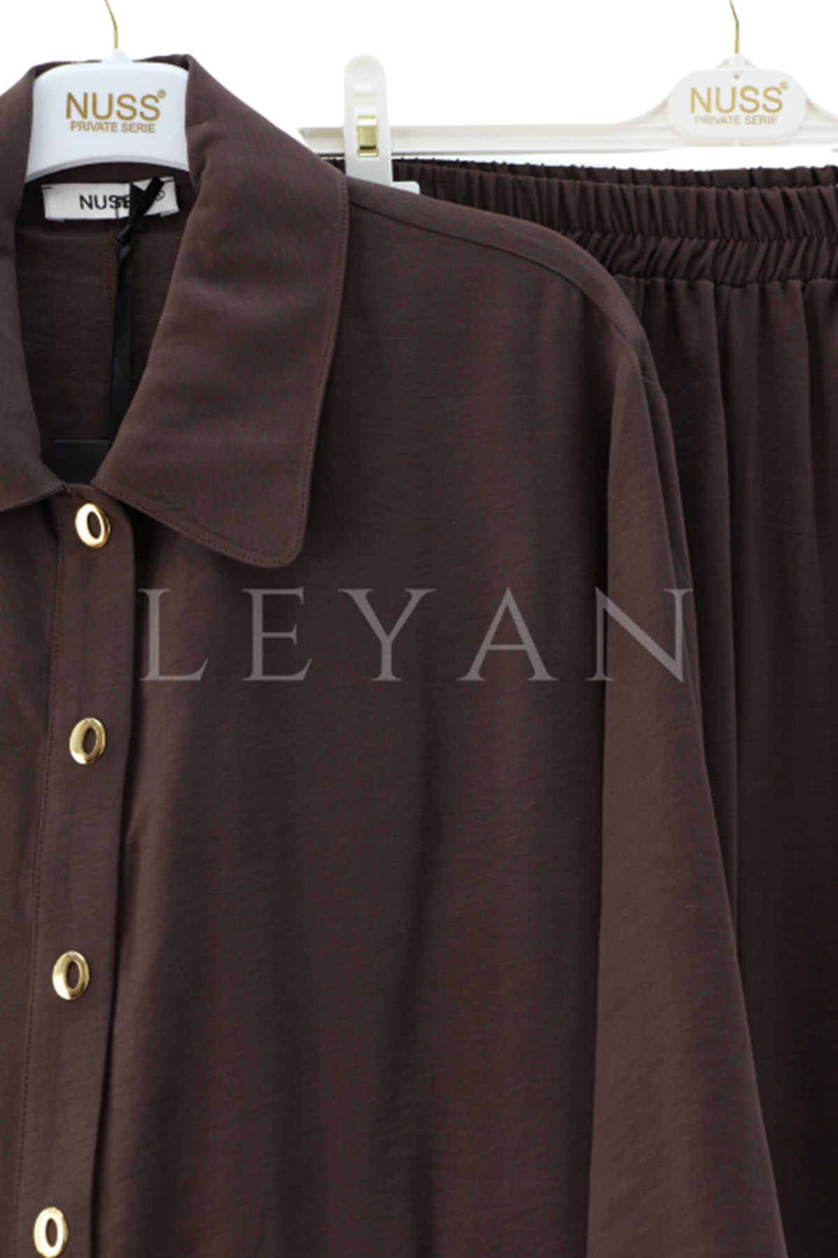 Defrina Düğme Detaylı Takım- LYN03869 Kahve