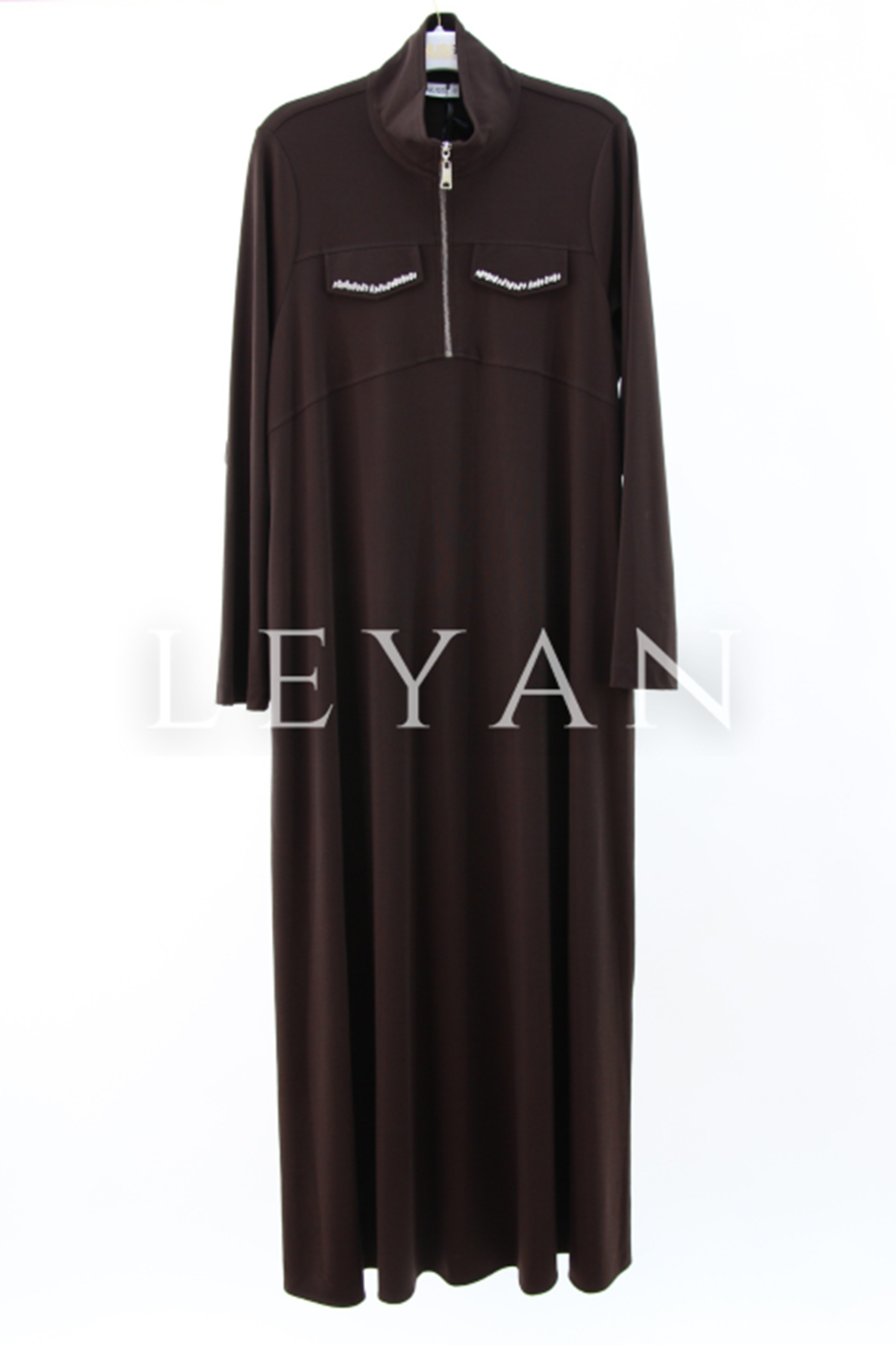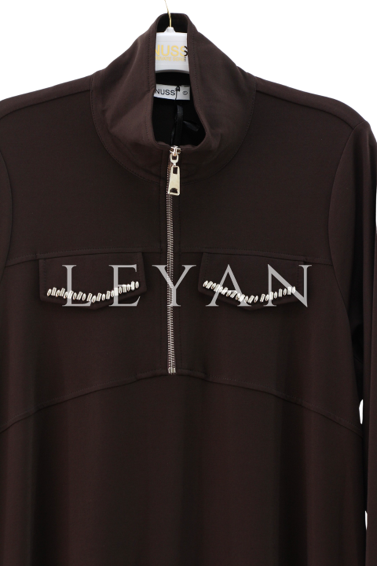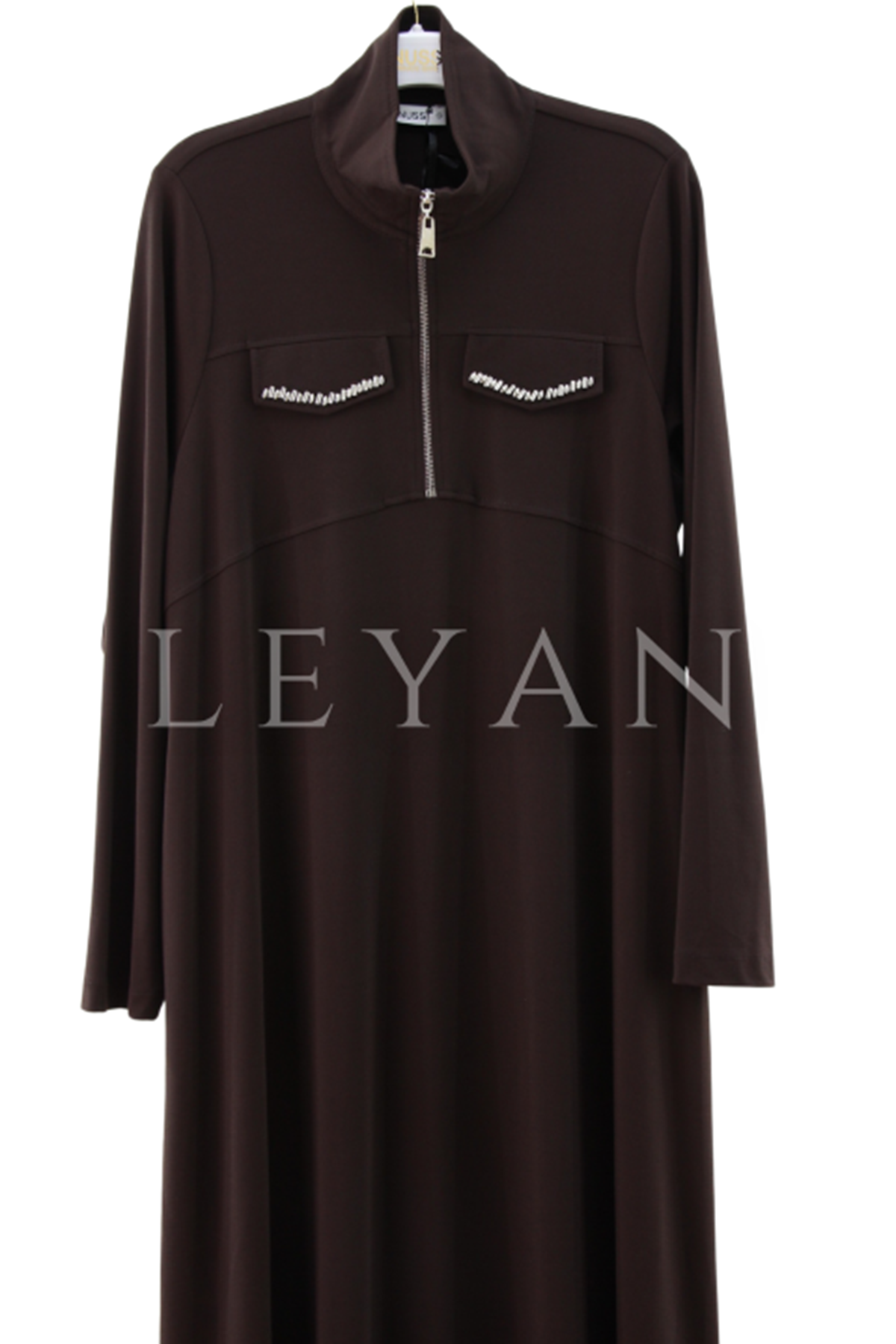 Nuss Cepleri İşlemeli Elbise- LYN04265 Kahve