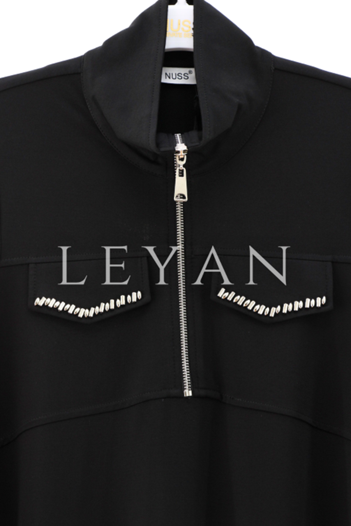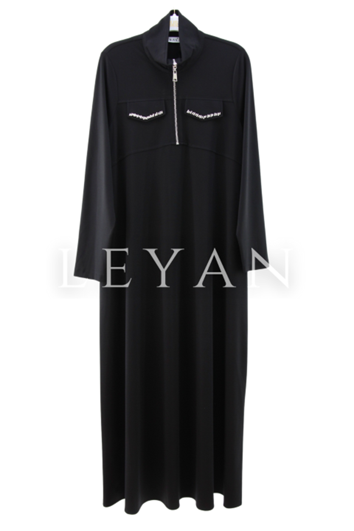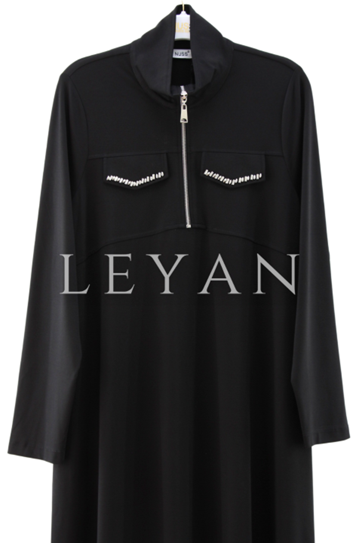 Nuss Cepleri İşlemeli Elbise- LYN04265 Siyah
