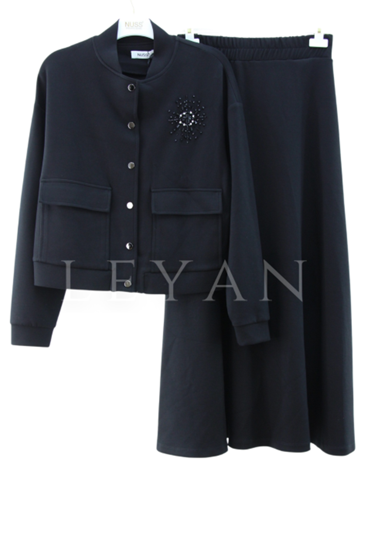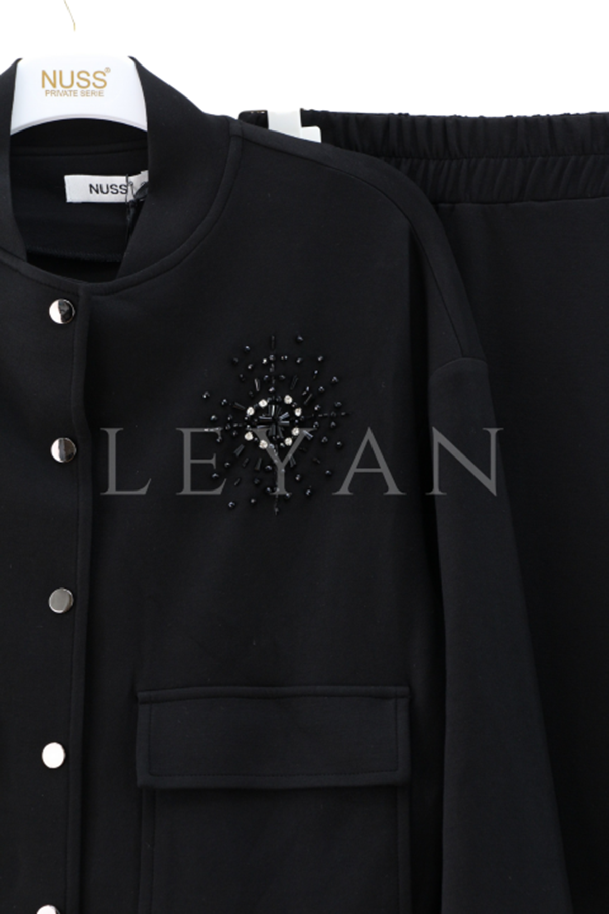 My312 Yakası Taşlı Jakarlı Takım- LYN03888 Siyah