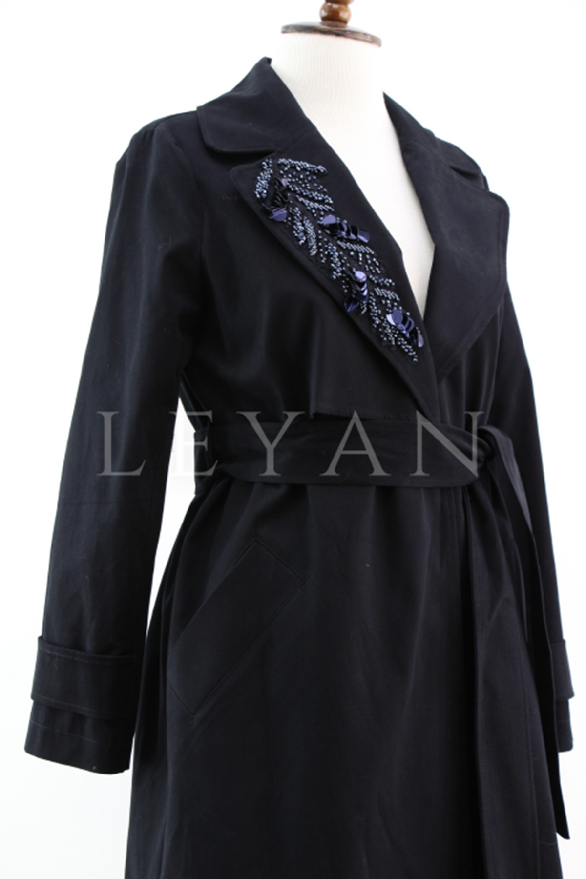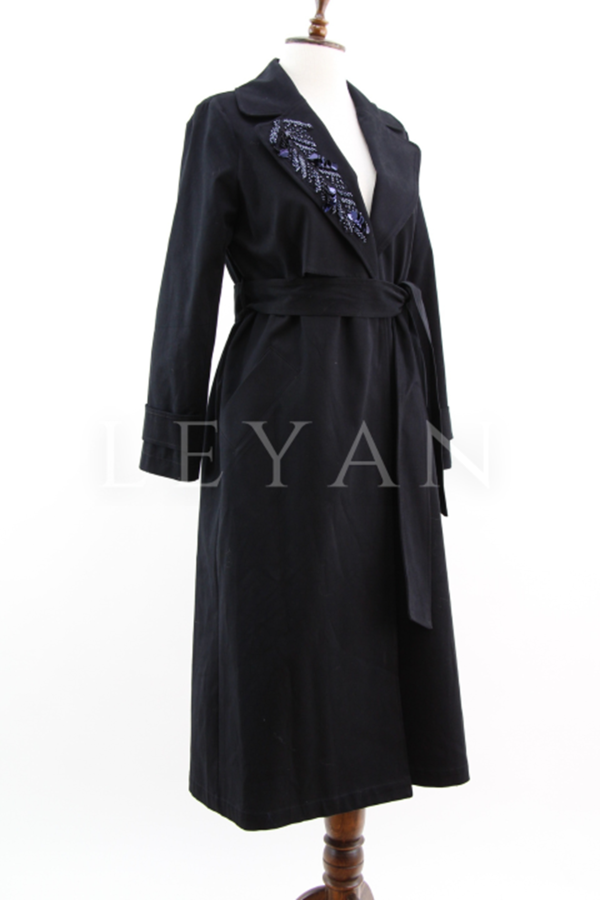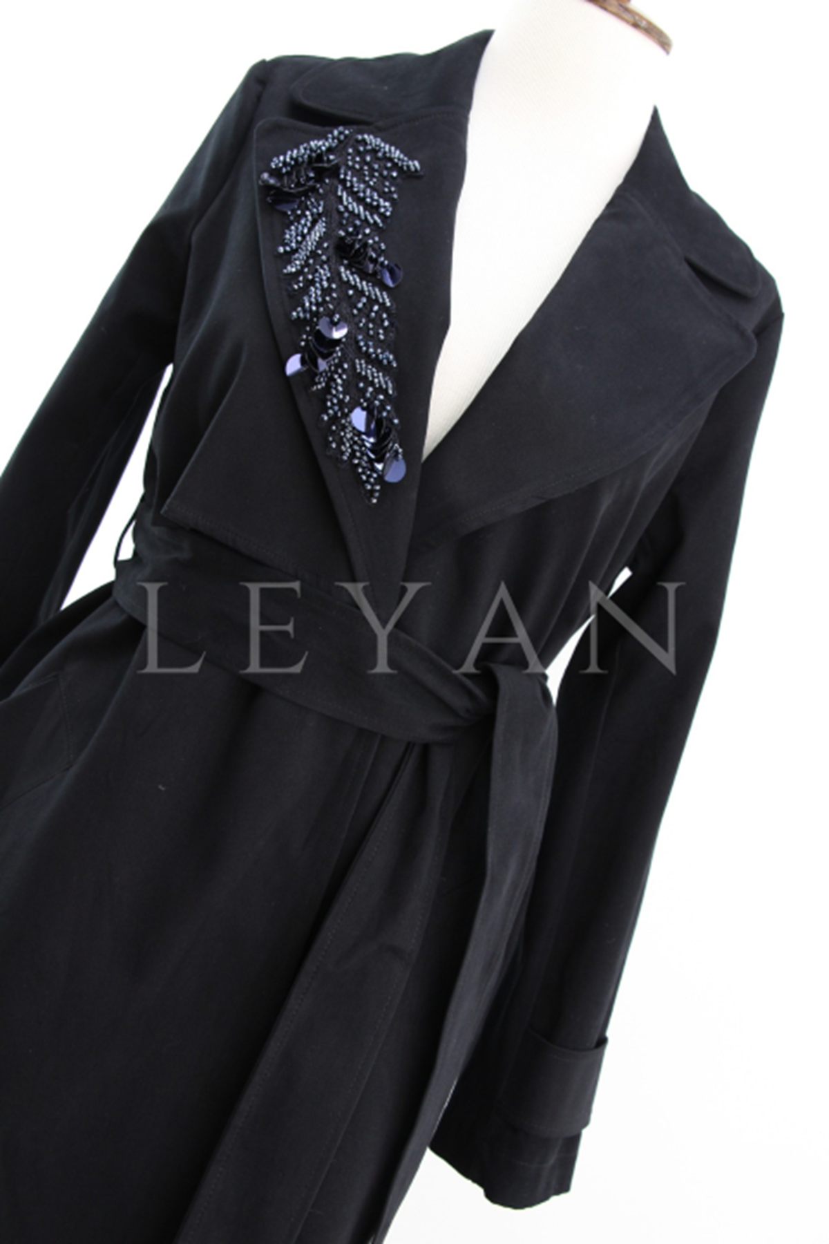 Nuss İşleme Detaylı Trench- LYN04340 Siyah