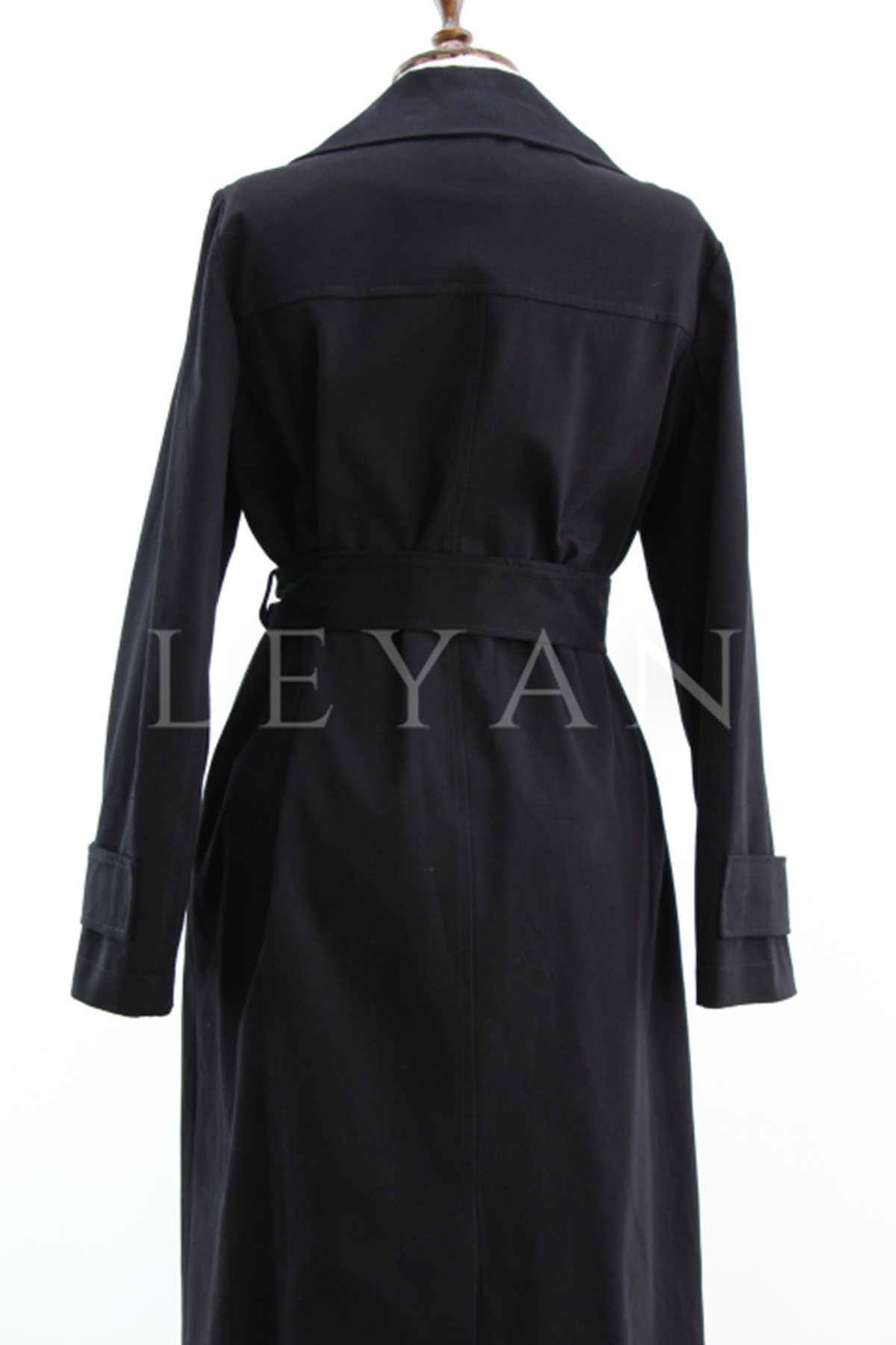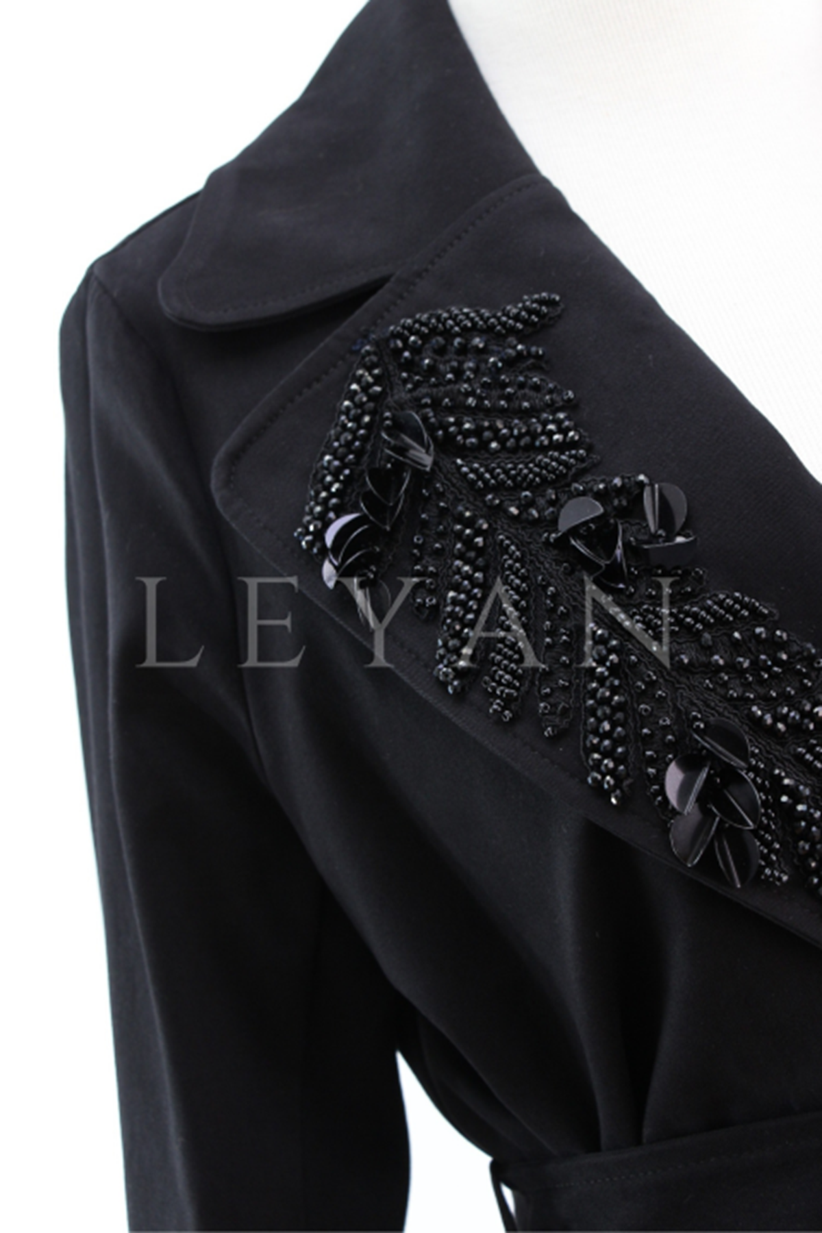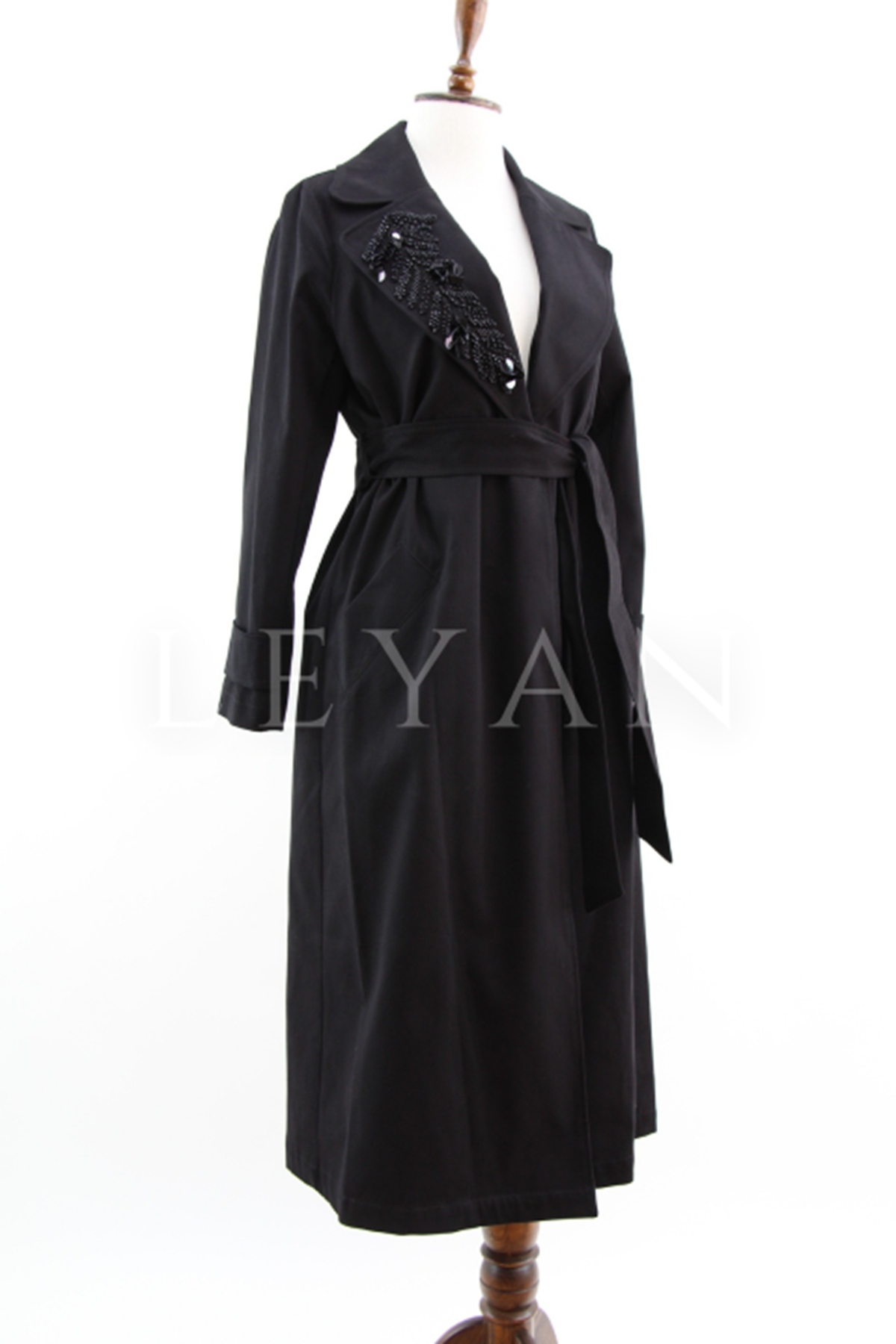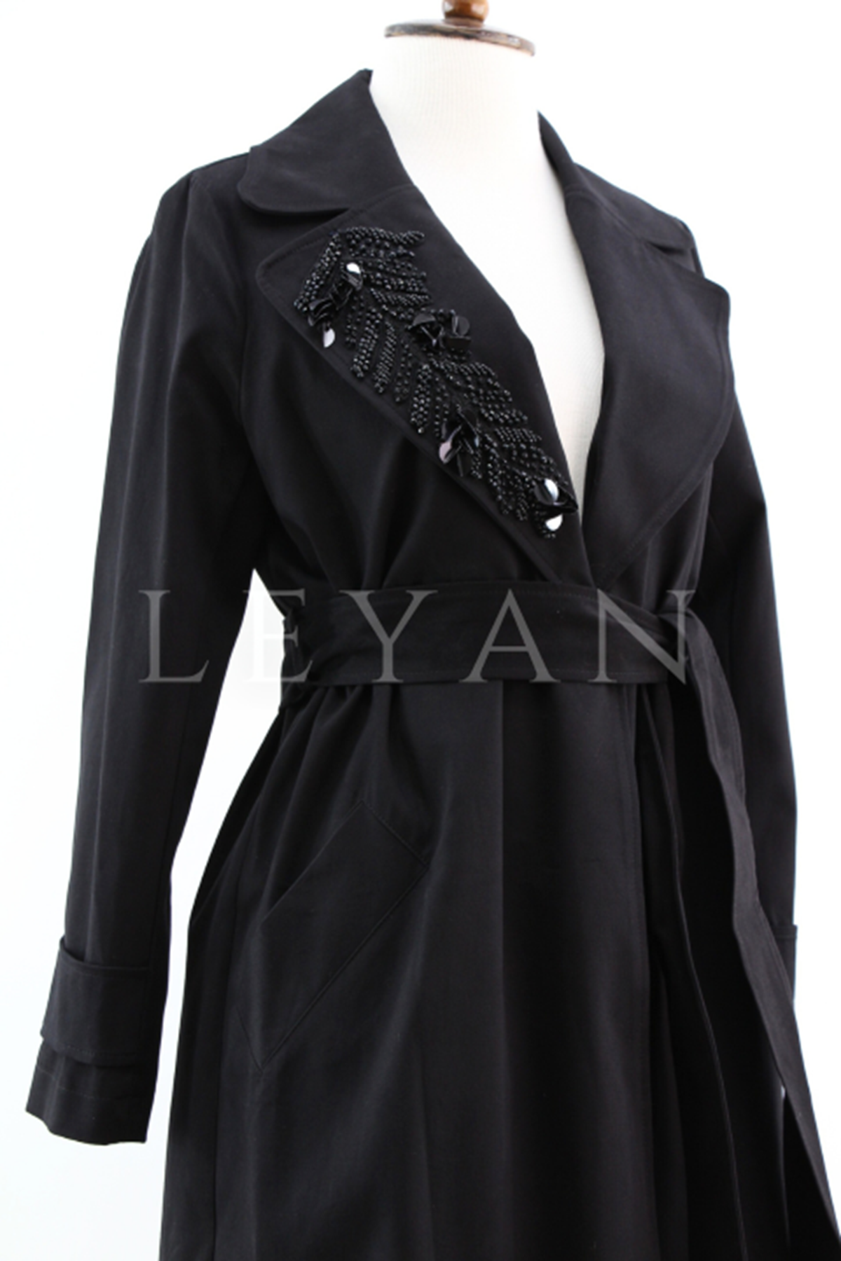 Nuss İşleme Detaylı Trench- LYN04340 Siyah