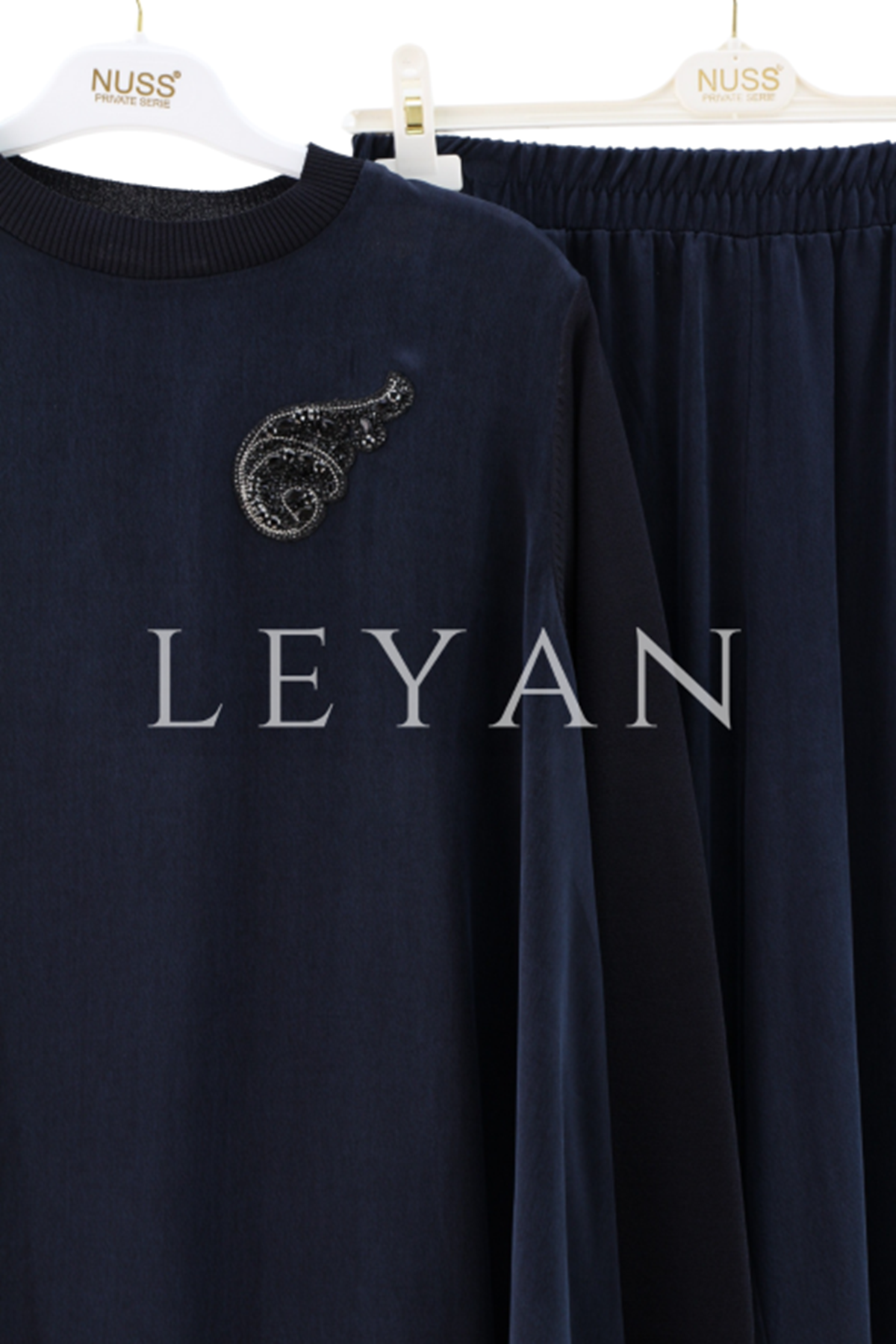 Nuss Kolları Merserize İşlemeli Takım- LYN04264 Lacivert