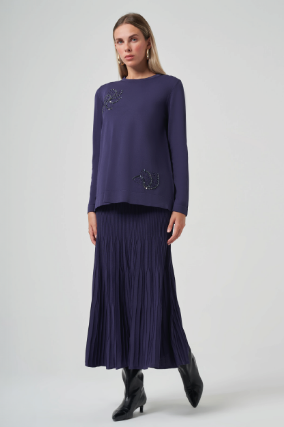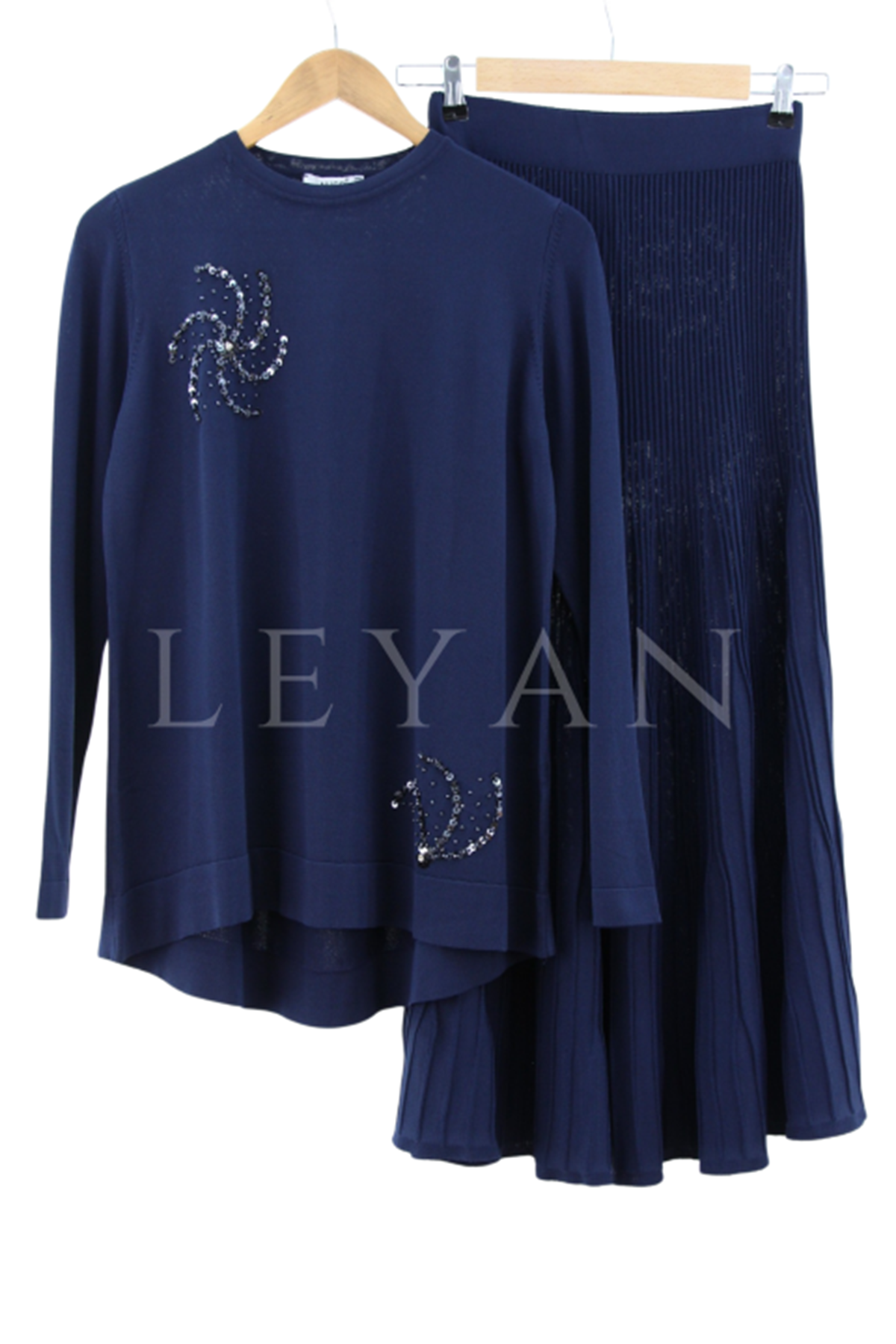 Nuss Taş İşlemeli Etekli Takım- LYN04192 Lacivert