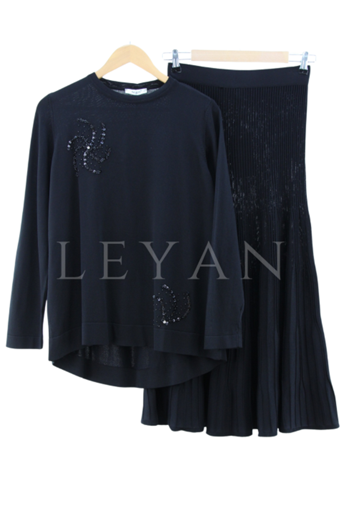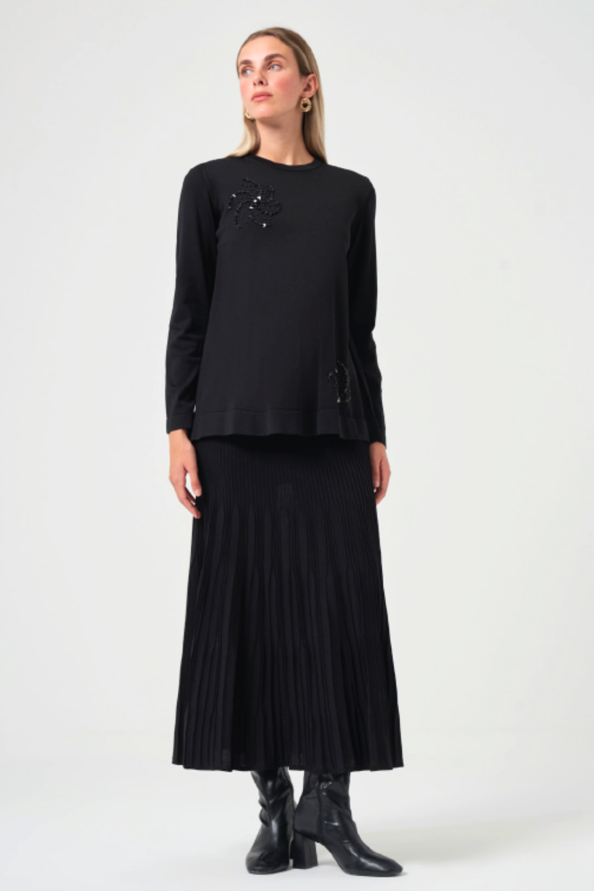 Nuss Taş İşlemeli Etekli Takım- LYN04192 Siyah