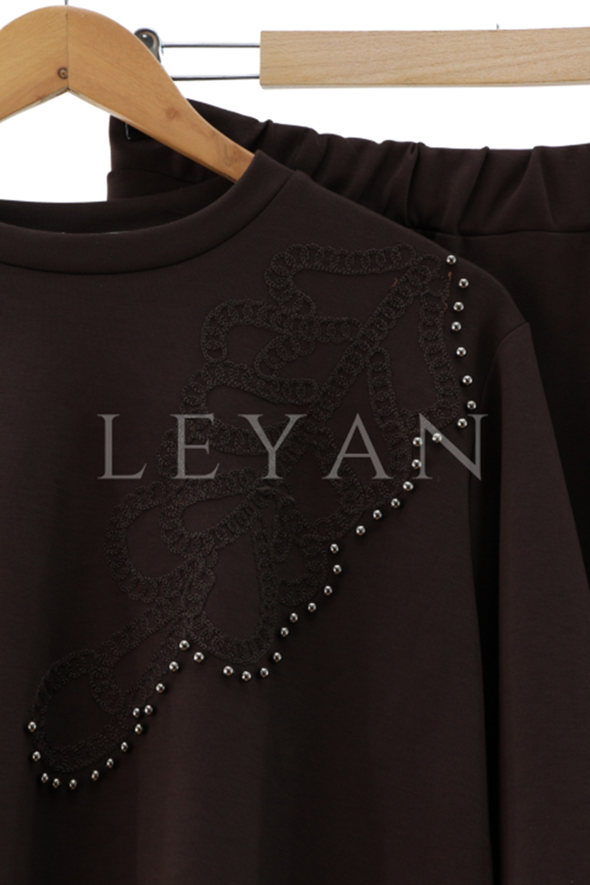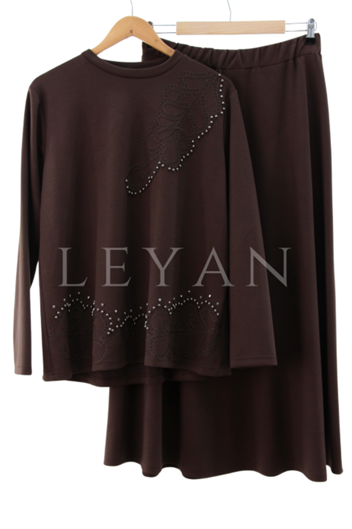 Omzu Ve Etek Ucu İşlemeli Takım- LYN04216 Kahve
