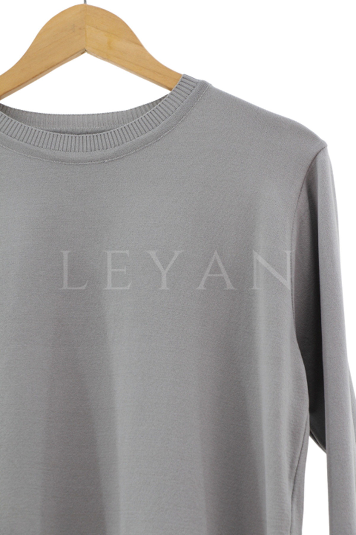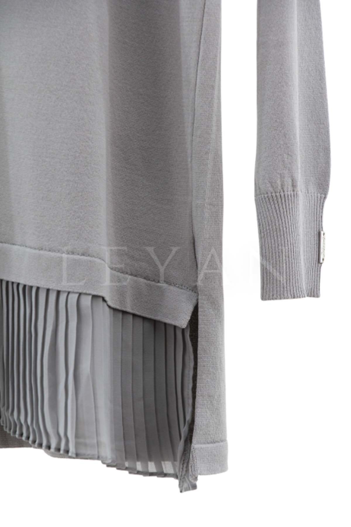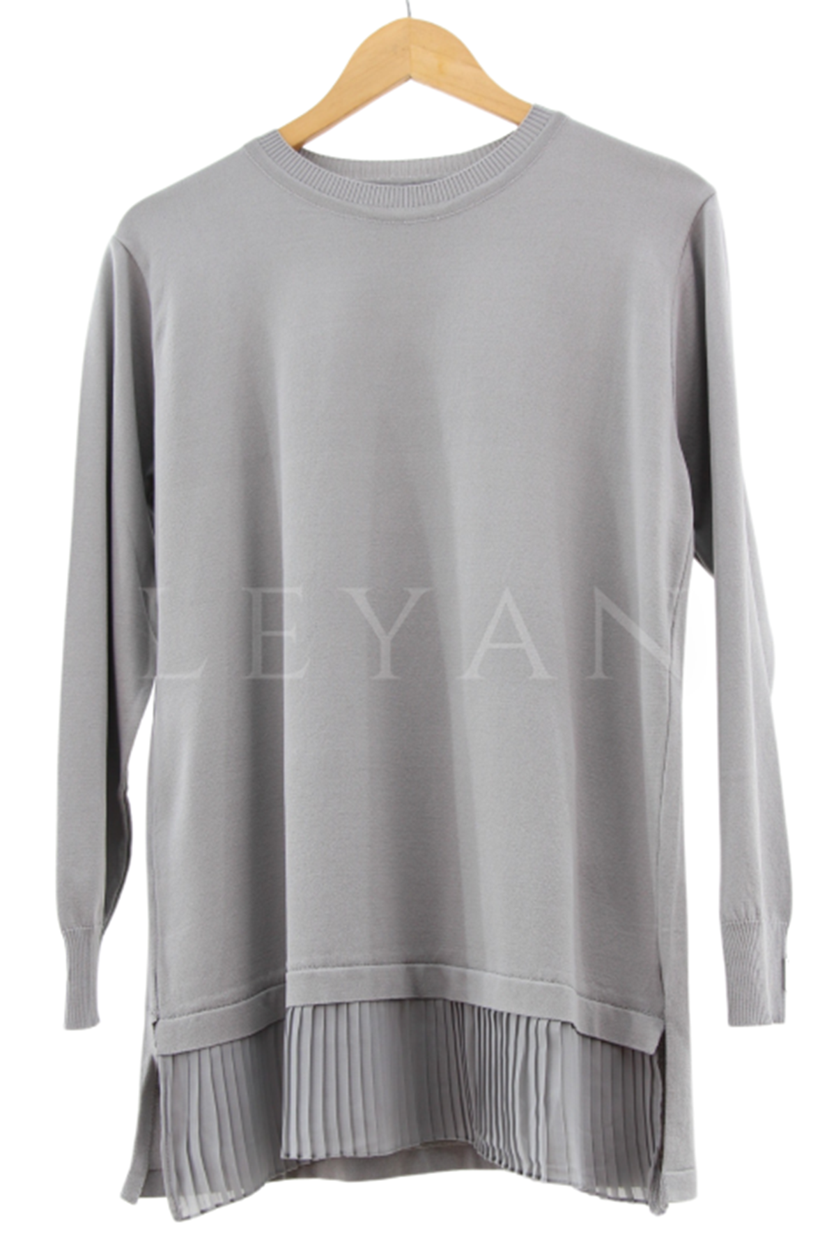 Önü Şifonlu Pilise Detaylı Merserize Triko Bluz- LYN03141 Gri