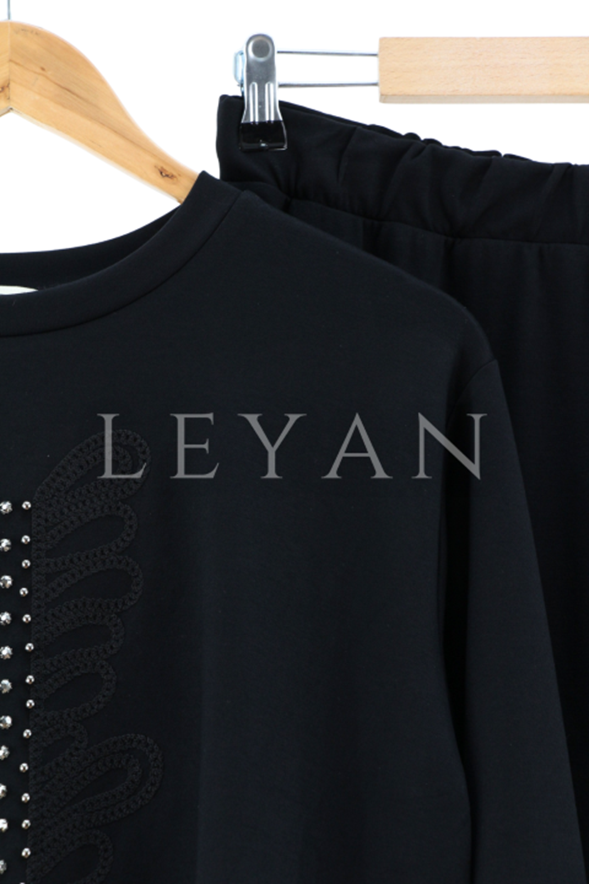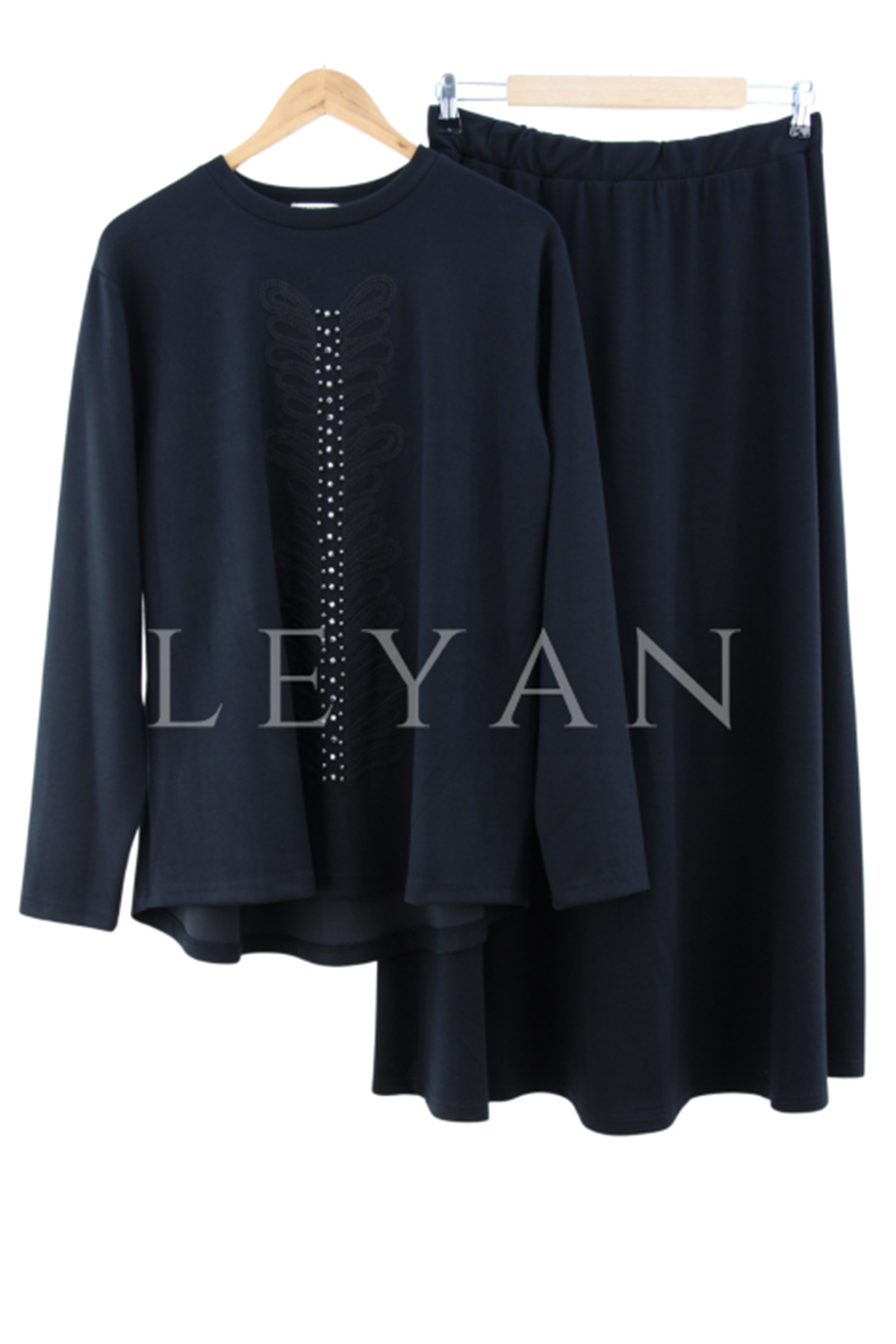 Önü Sıra Taşlı İşlemeli Takım- LYN04218 Siyah