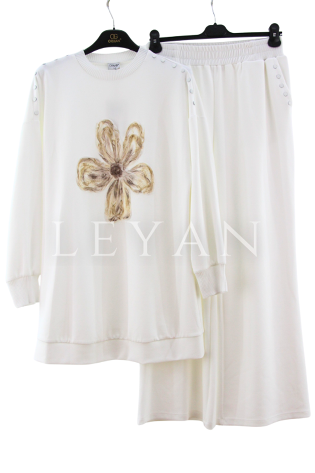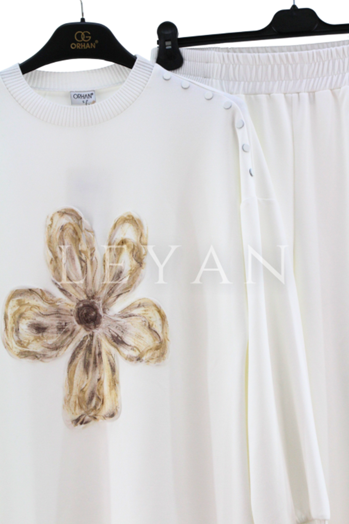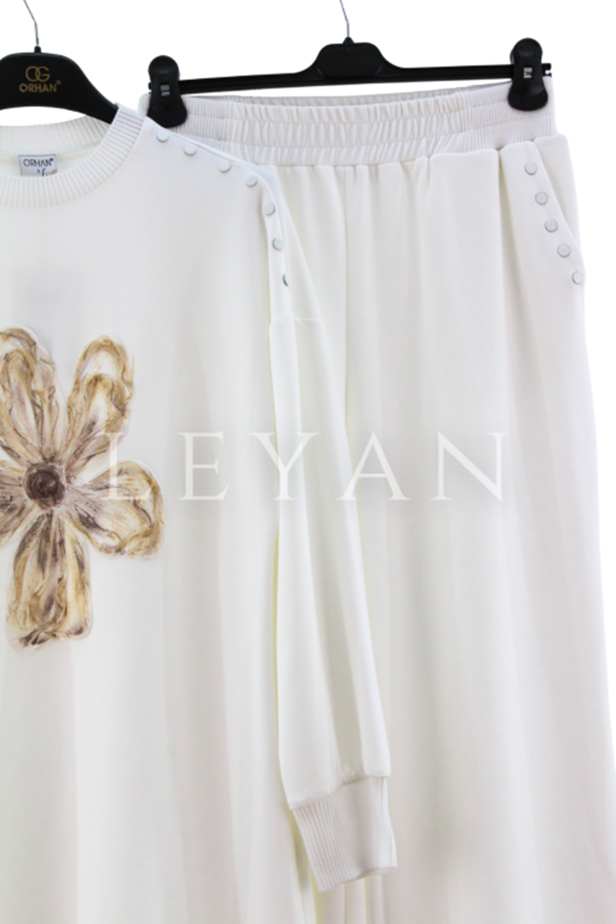 Orhan Store Çiçek Detaylı Takım- LYN04272 Ekru
