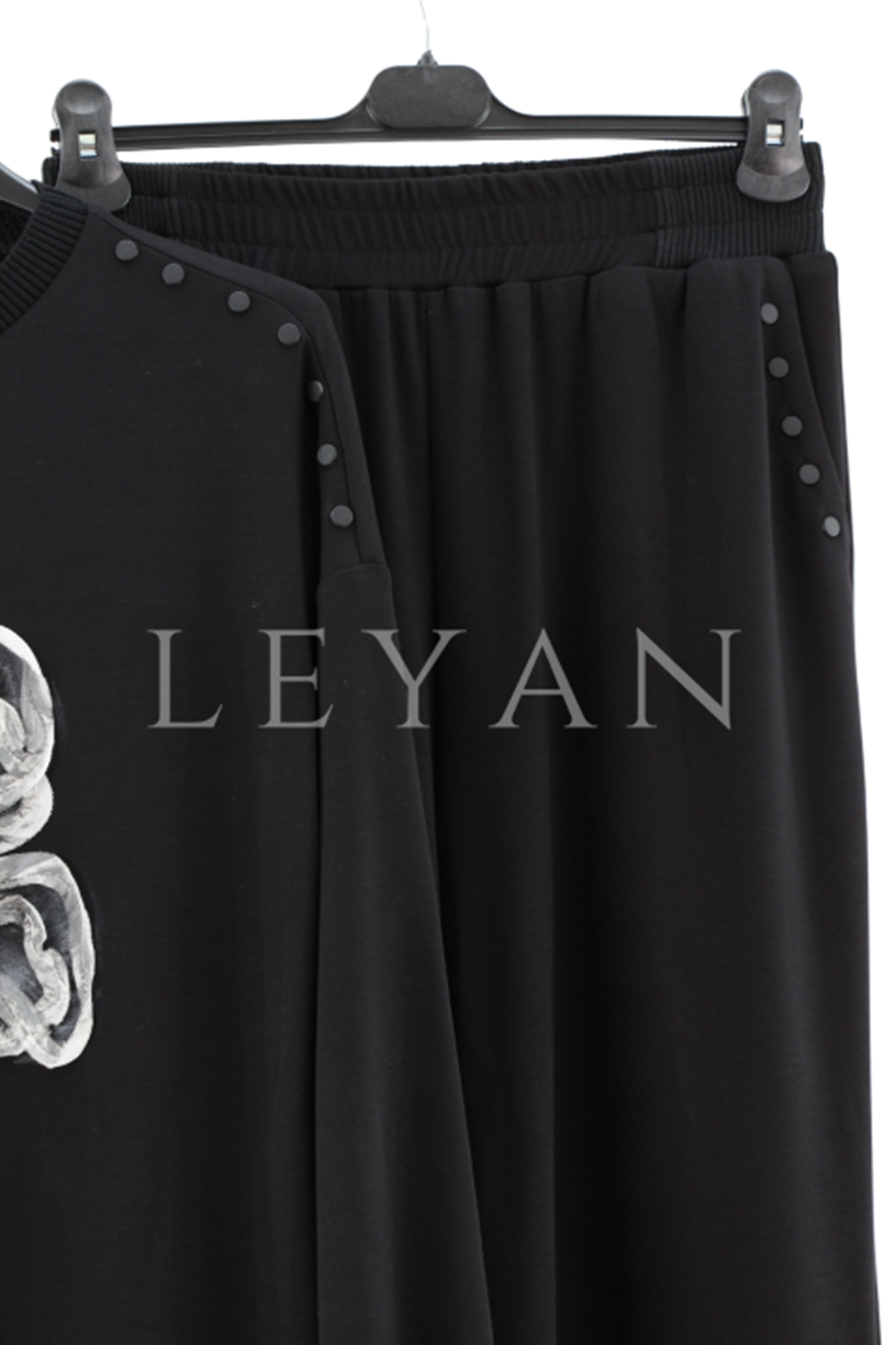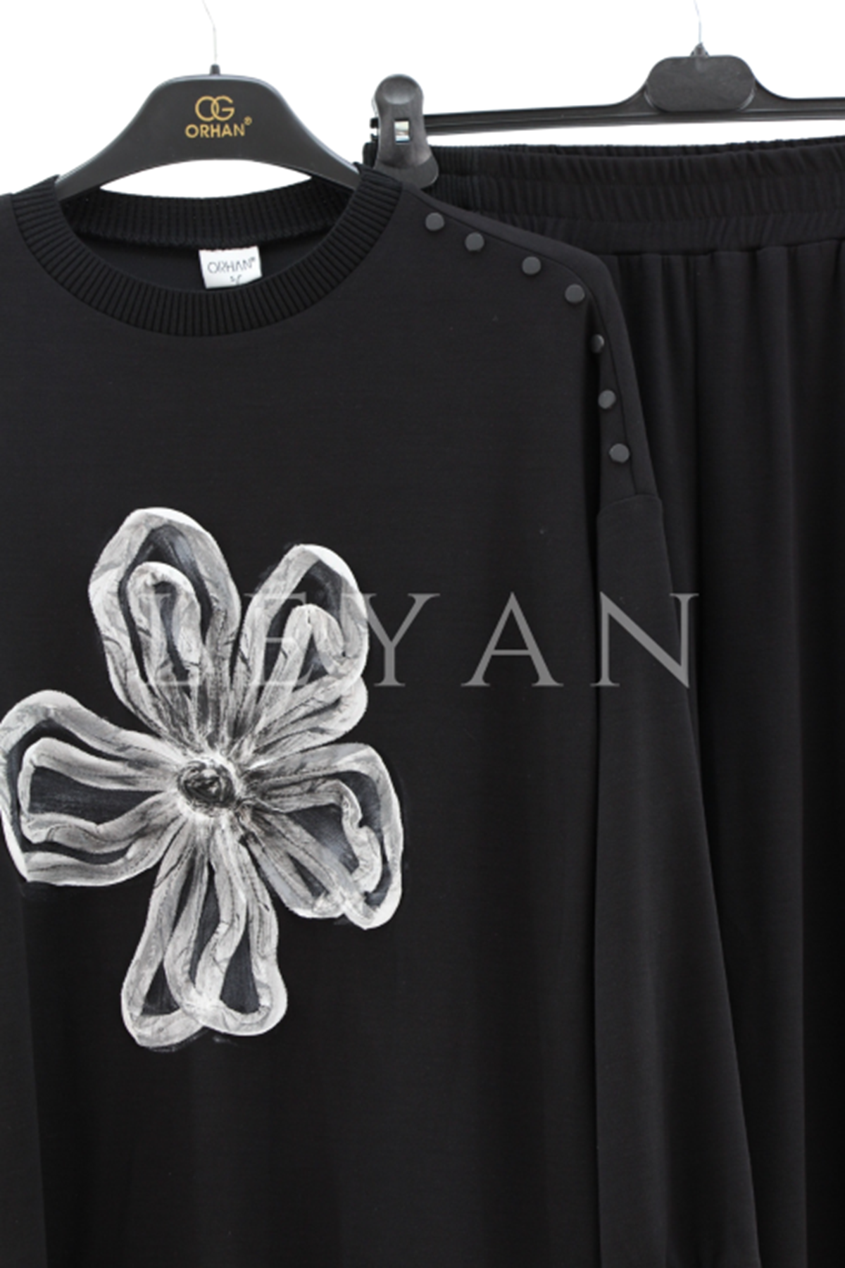 Orhan Store Çiçek Detaylı Takım- LYN04272 Siyah