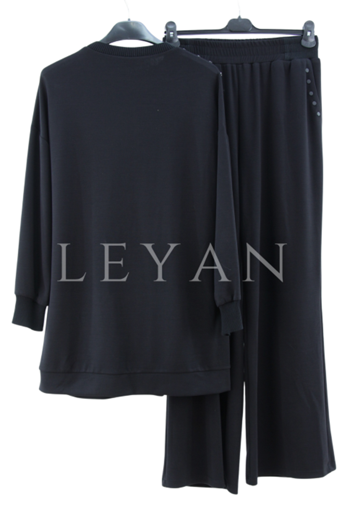 Düğmeli Pantolonlu İkili Takım- LYN01613 Siyah