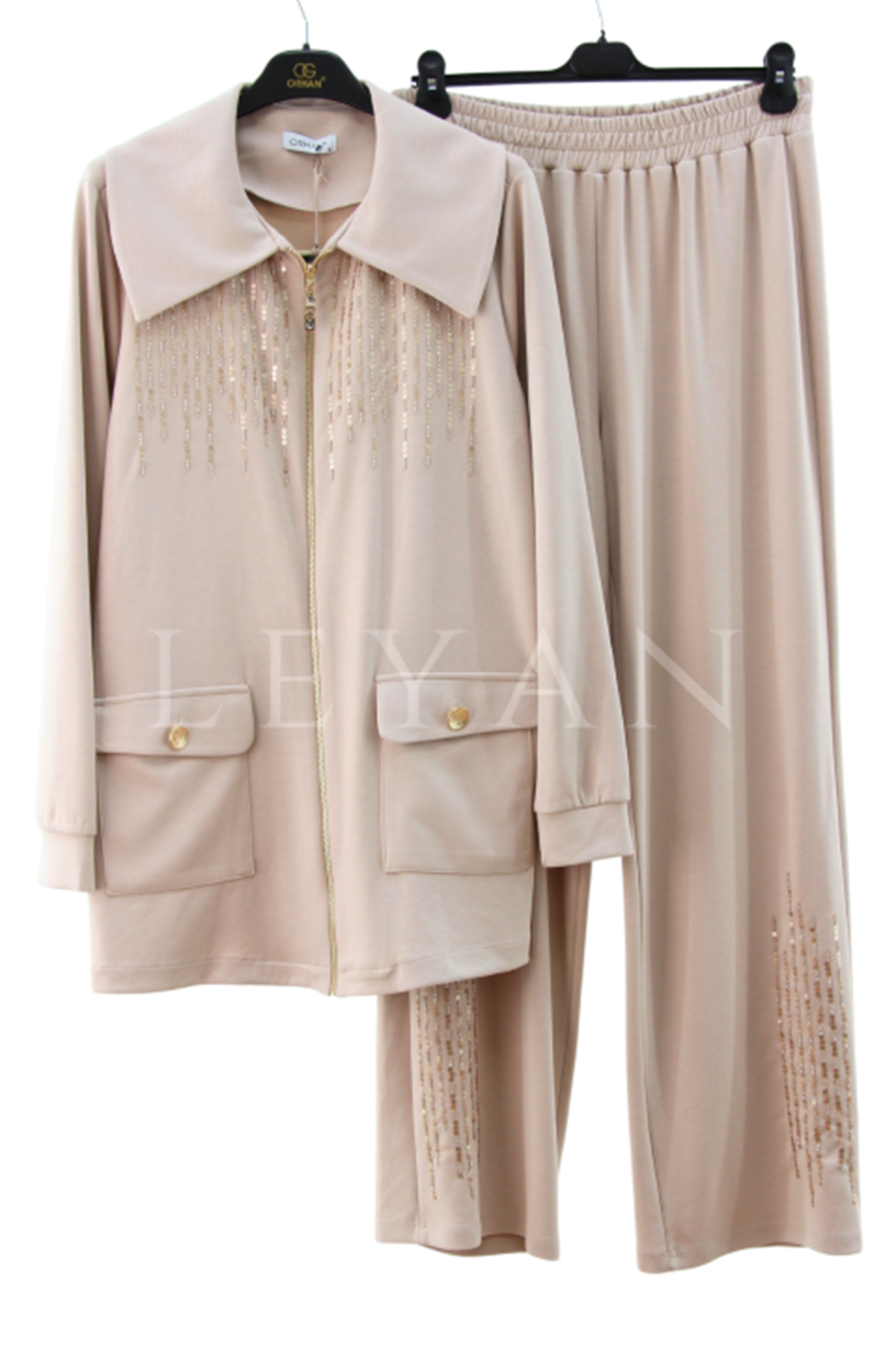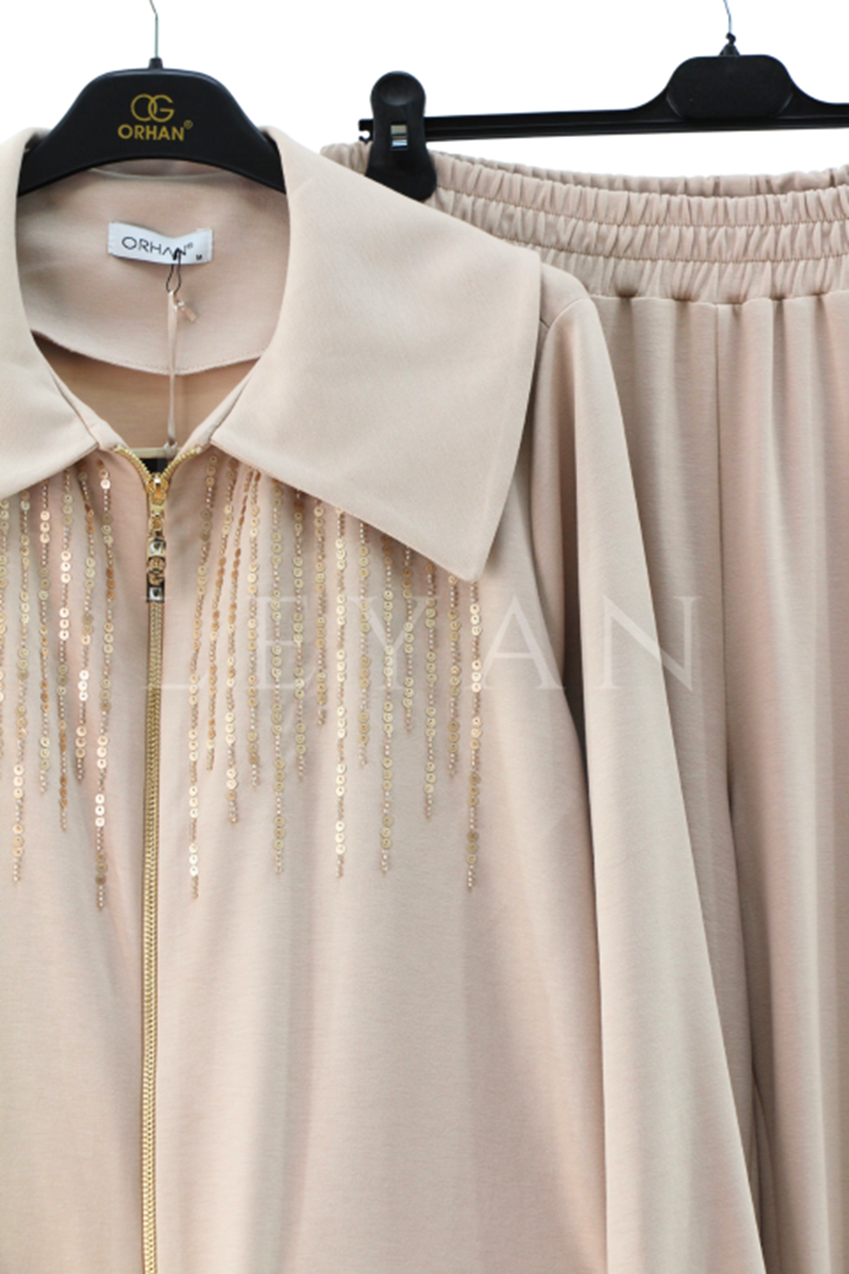 Orhan Store İşleme Detaylı Takım- LYN04258 Bej