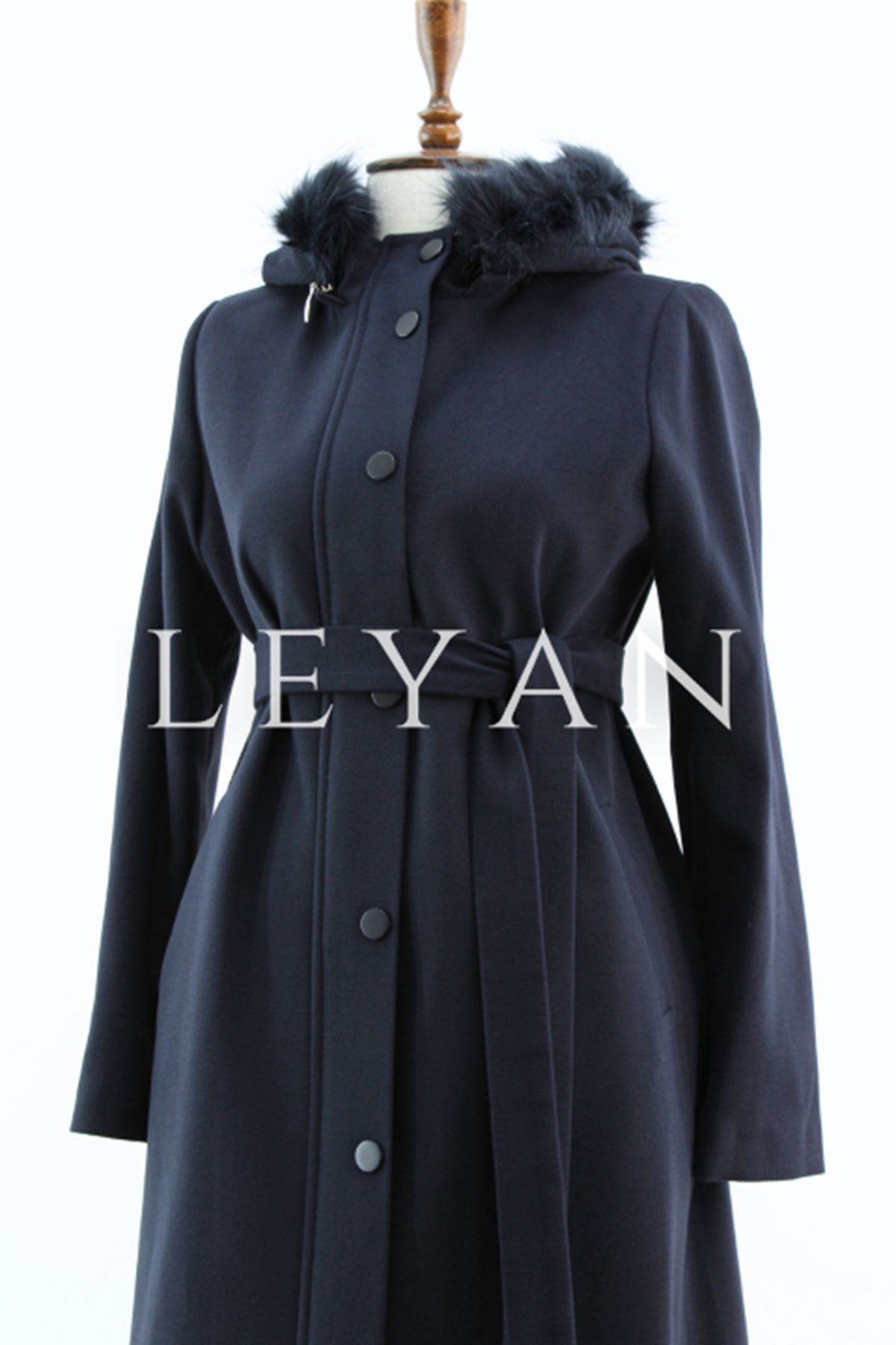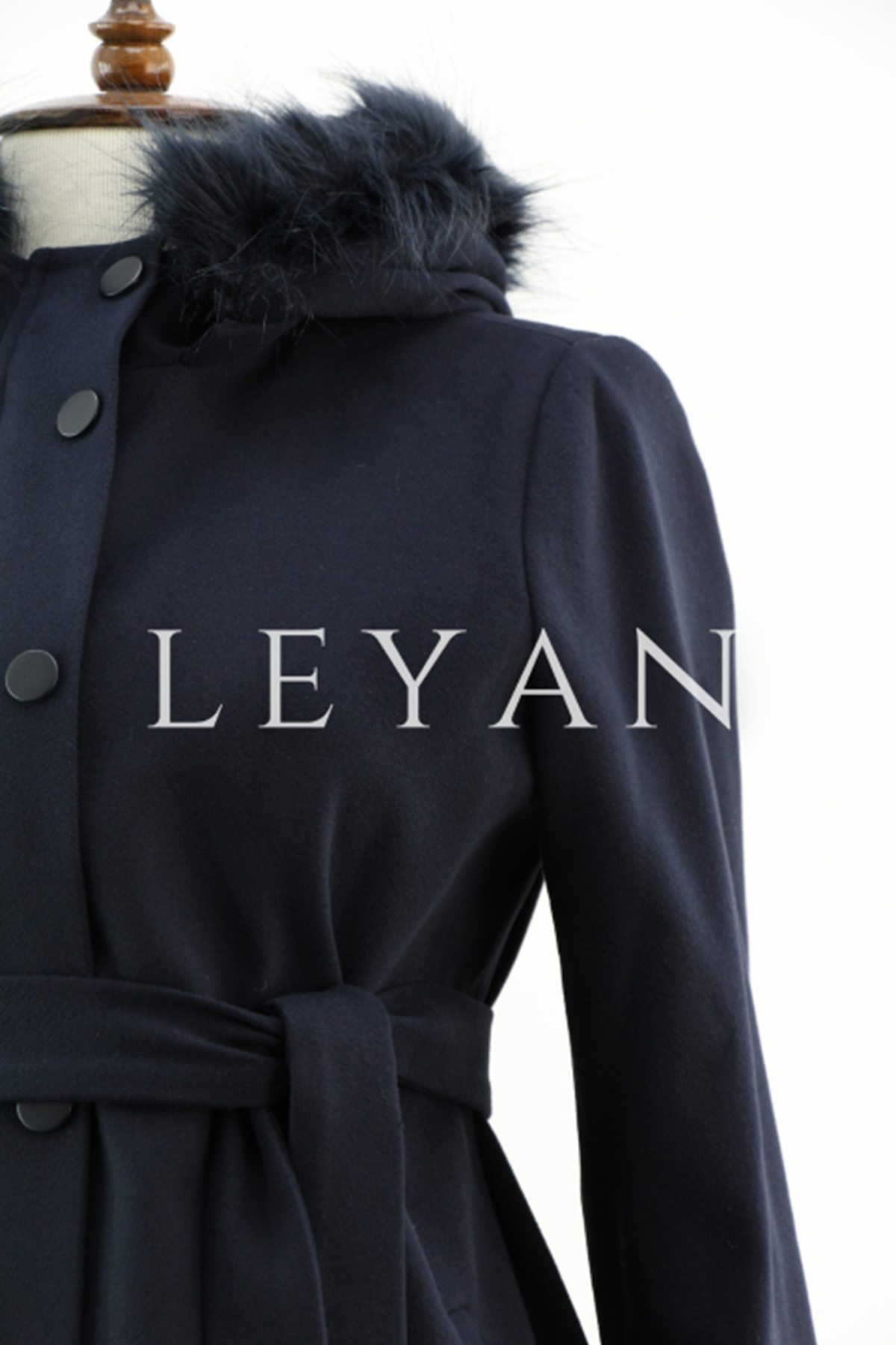 Orhan Store Kapşonu Kürklü Kaban- LYN04342 Lacivert